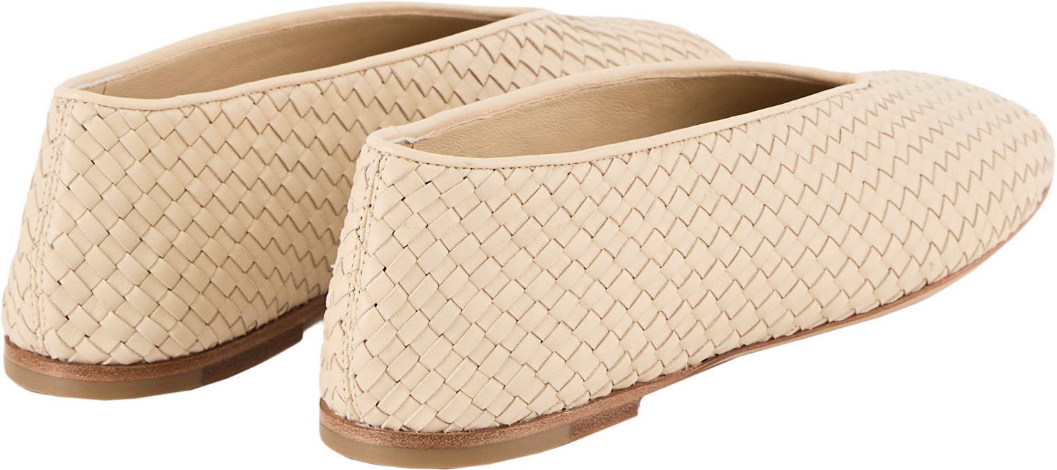 Der Ballerina 'Rosa' in Sea Salt von Bottega Veneta wurde aus feinem Intrecciato Lammleder gefertigt und besticht durch die geschmeidige Konstruktion und glatter Paspelierung. Die Optik und der Mini-Absatz vollenden dieses feminine Design.