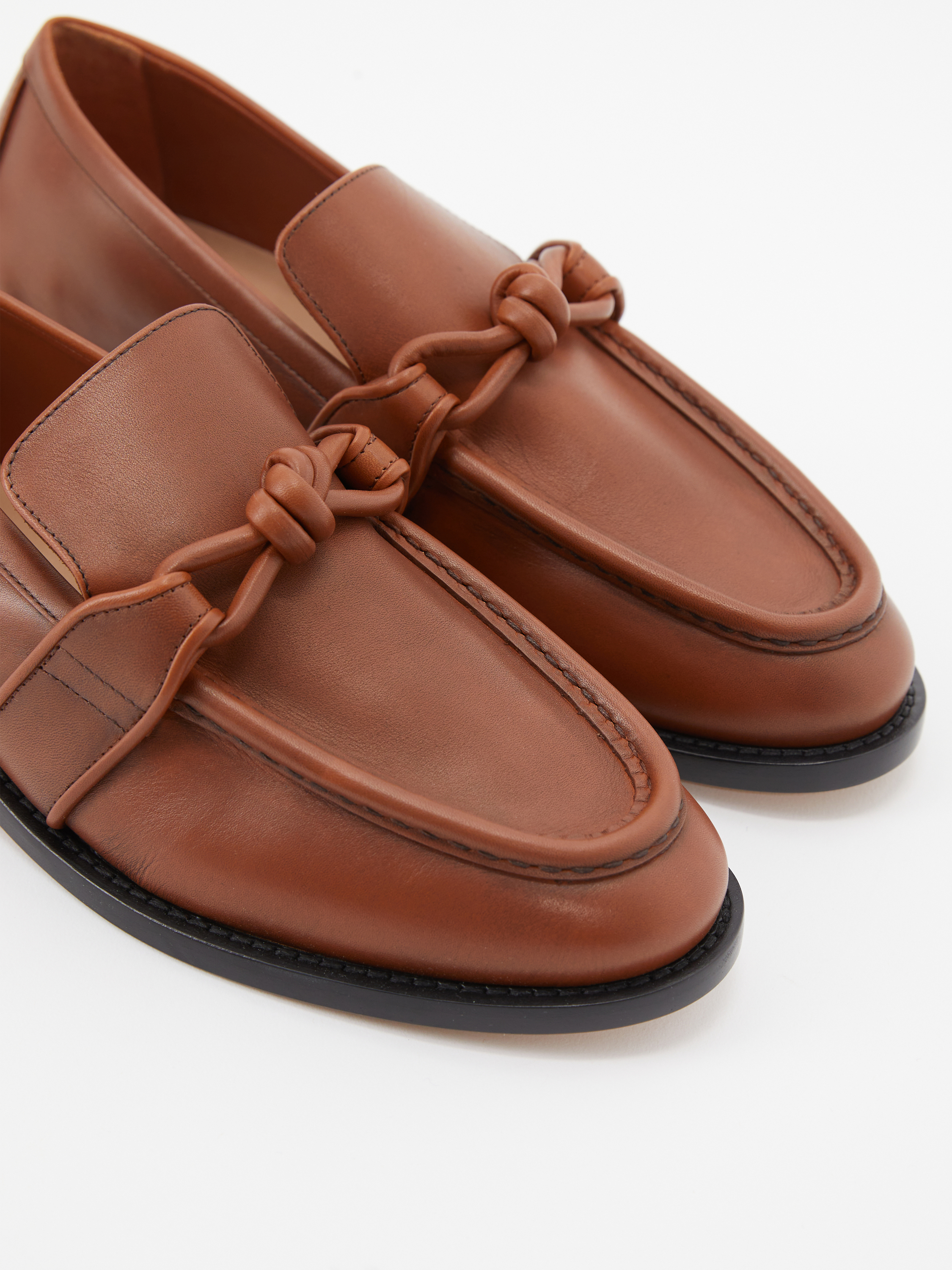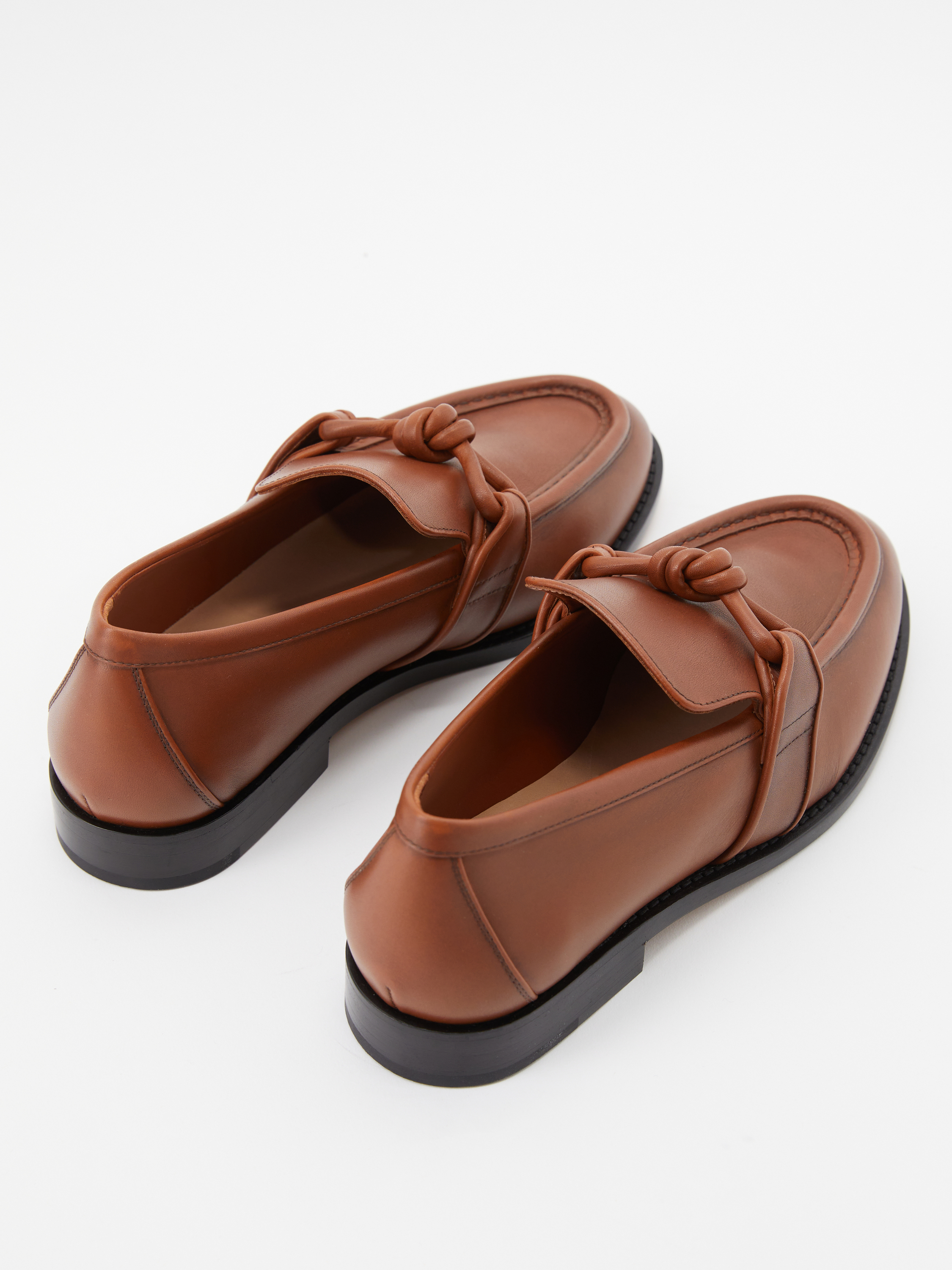 Die Loafer 'Astaire' in Braun von Bottega Veneta wurden aus Leder gefertigt und bestechen durch das klassische Design. Die runde Zehenkappe wird durch die markante Sohle ergänzt. Das Knoten-Detail vollendet dieses modische Modell.