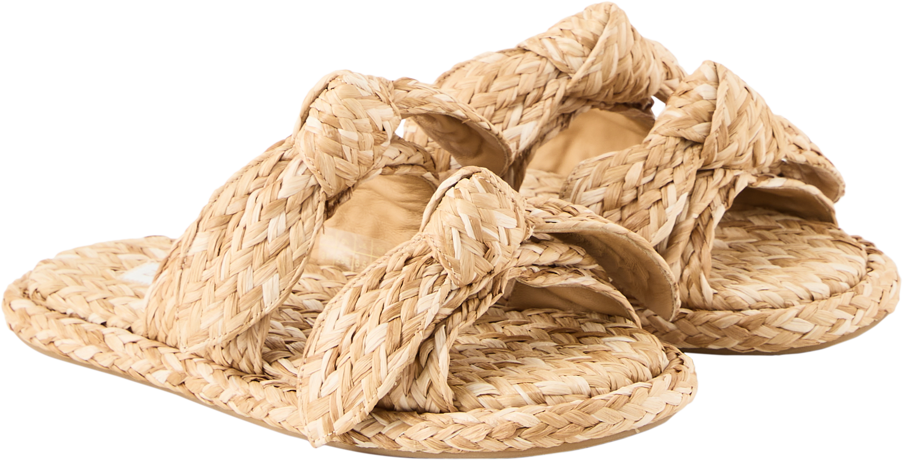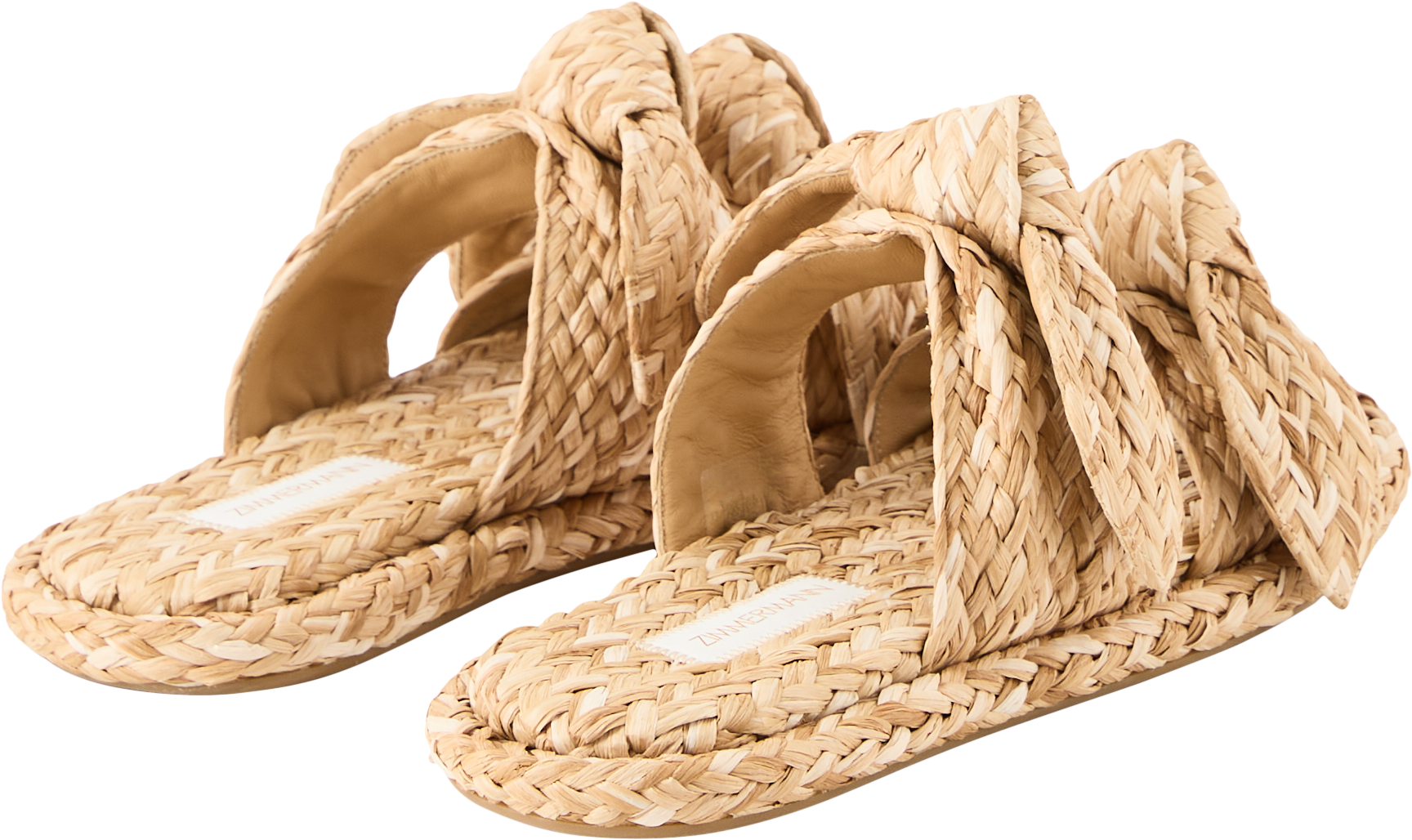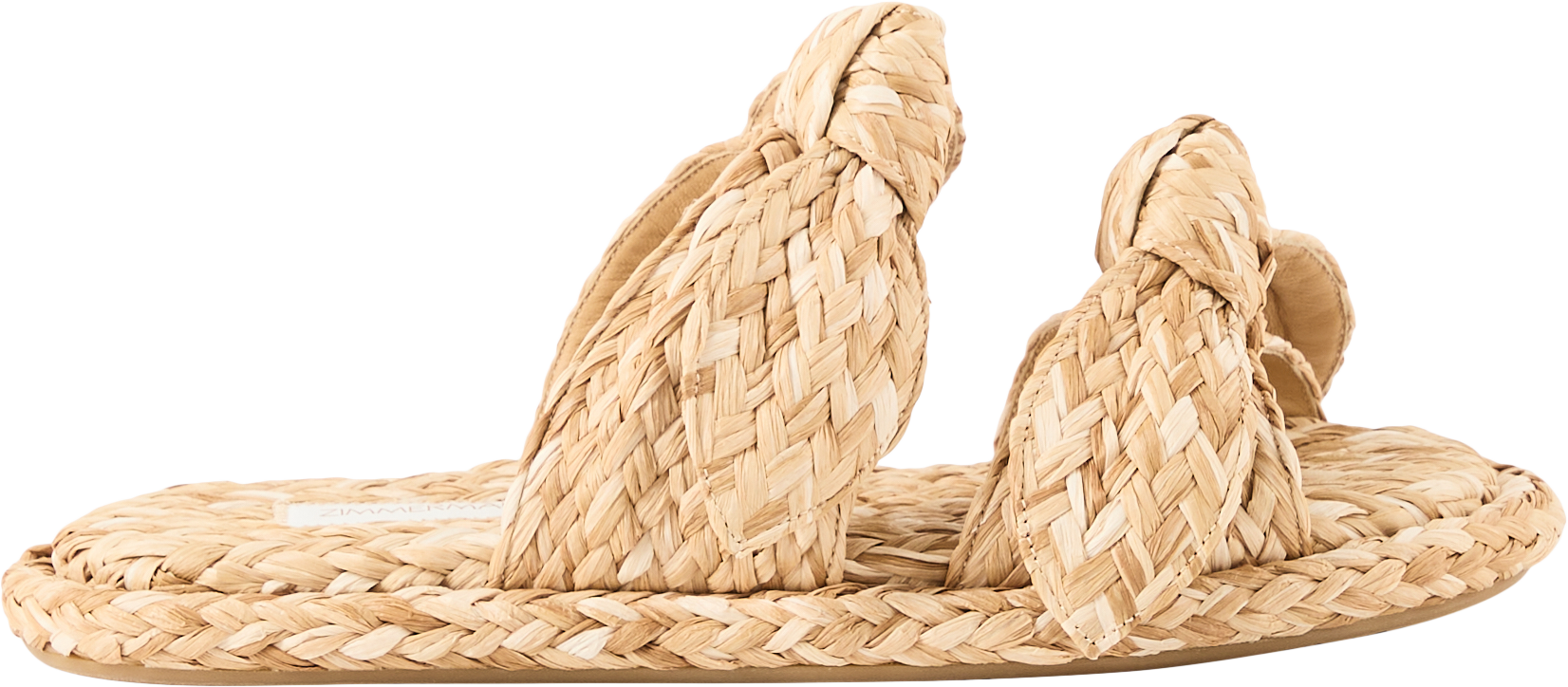Die Sandalen 'Carousel' in Beige von Zimmermann wurden aus Viscose gefertigt und bestechen durch die entspannte Silhouette. Die übergroßen Schleifen und die verschiedenen Texturen setzen besondere Akzente. Die runde Zehenpartie, die Einlegesohle in Raffia-Optik sowie die doppelten Stoffriemen im Bast-Effekt runden das Design stilvoll ab.