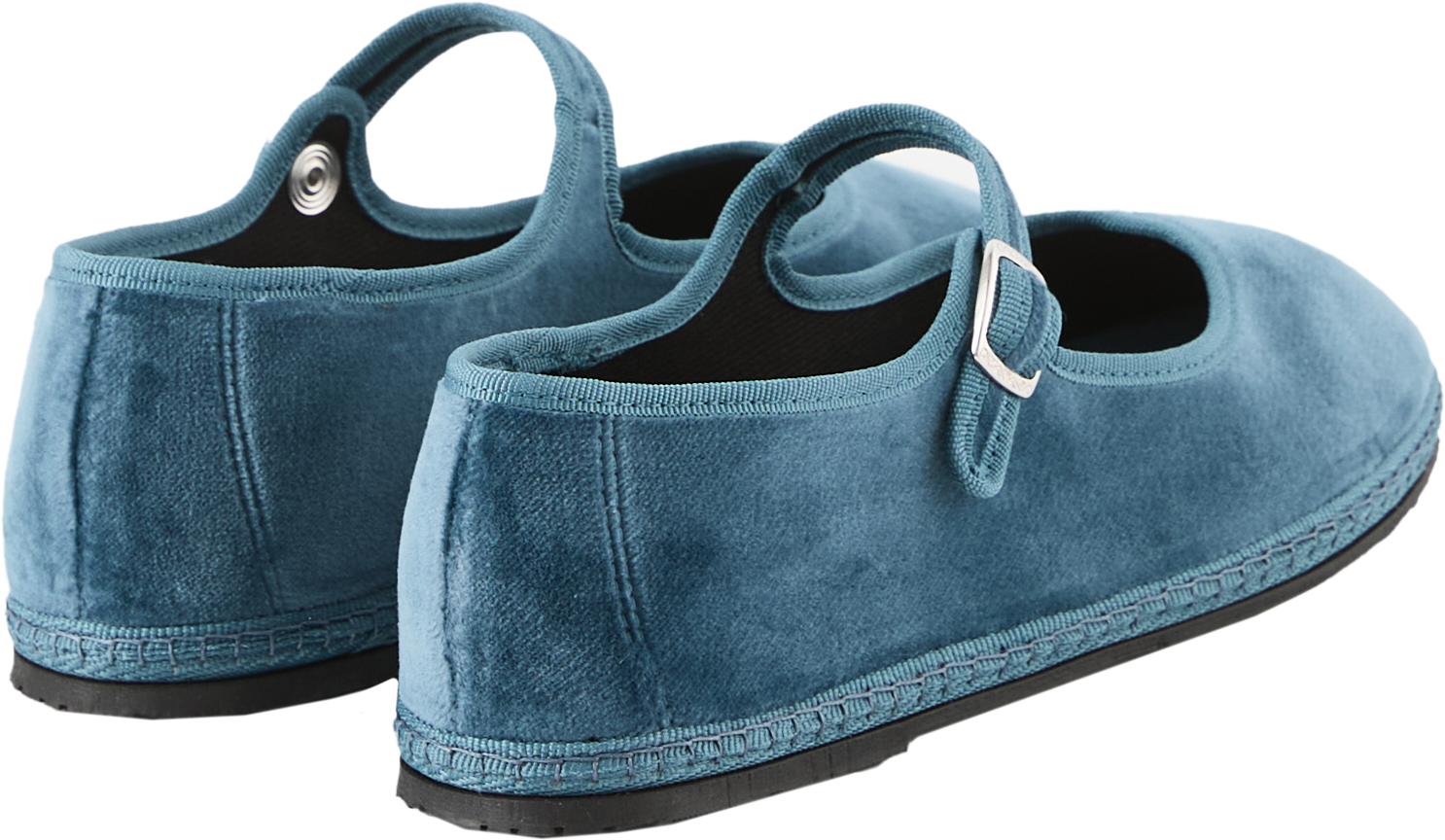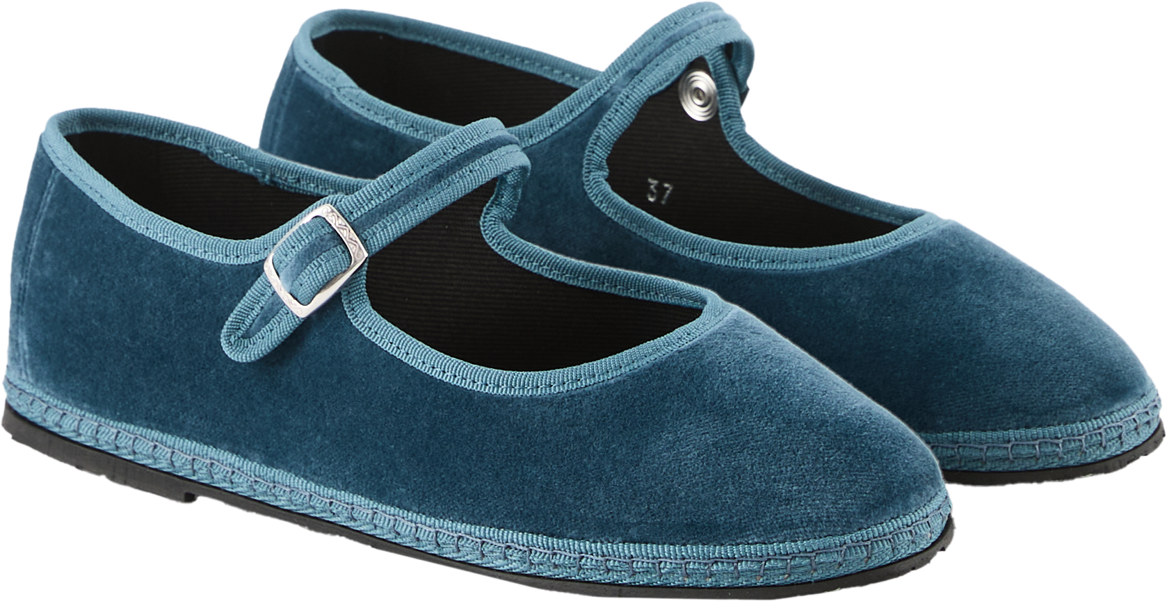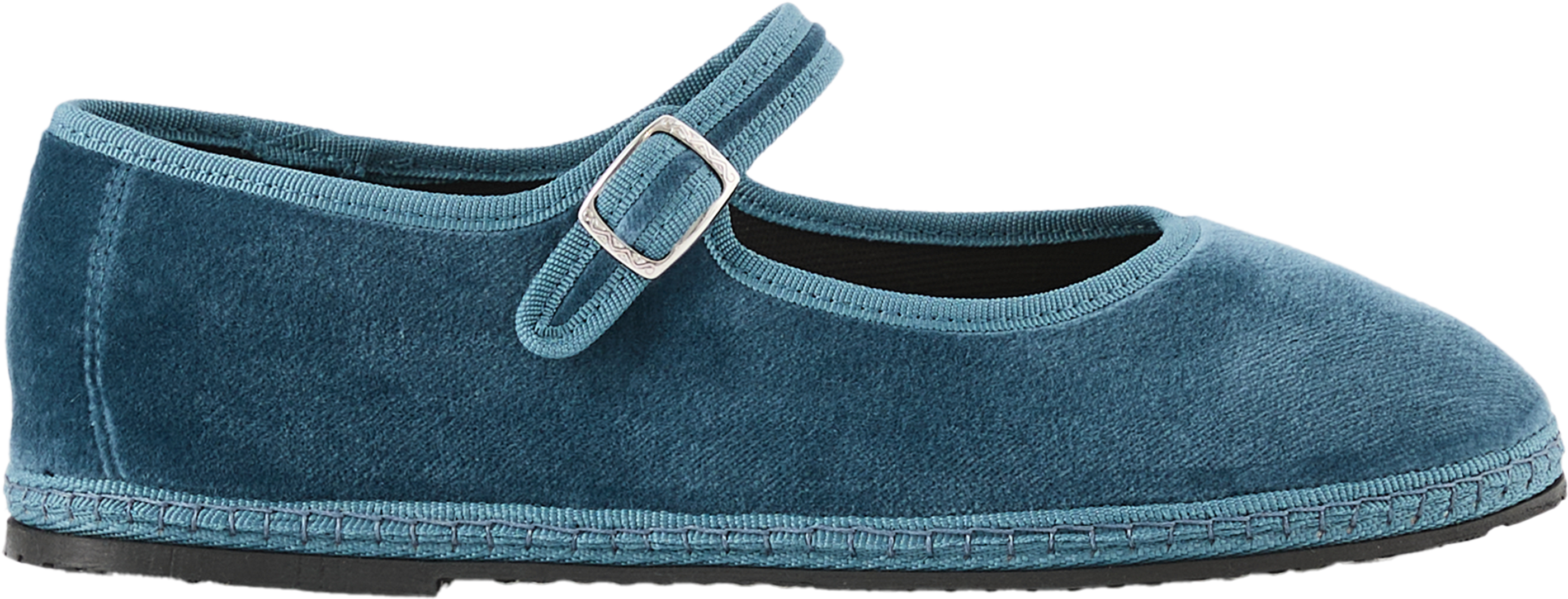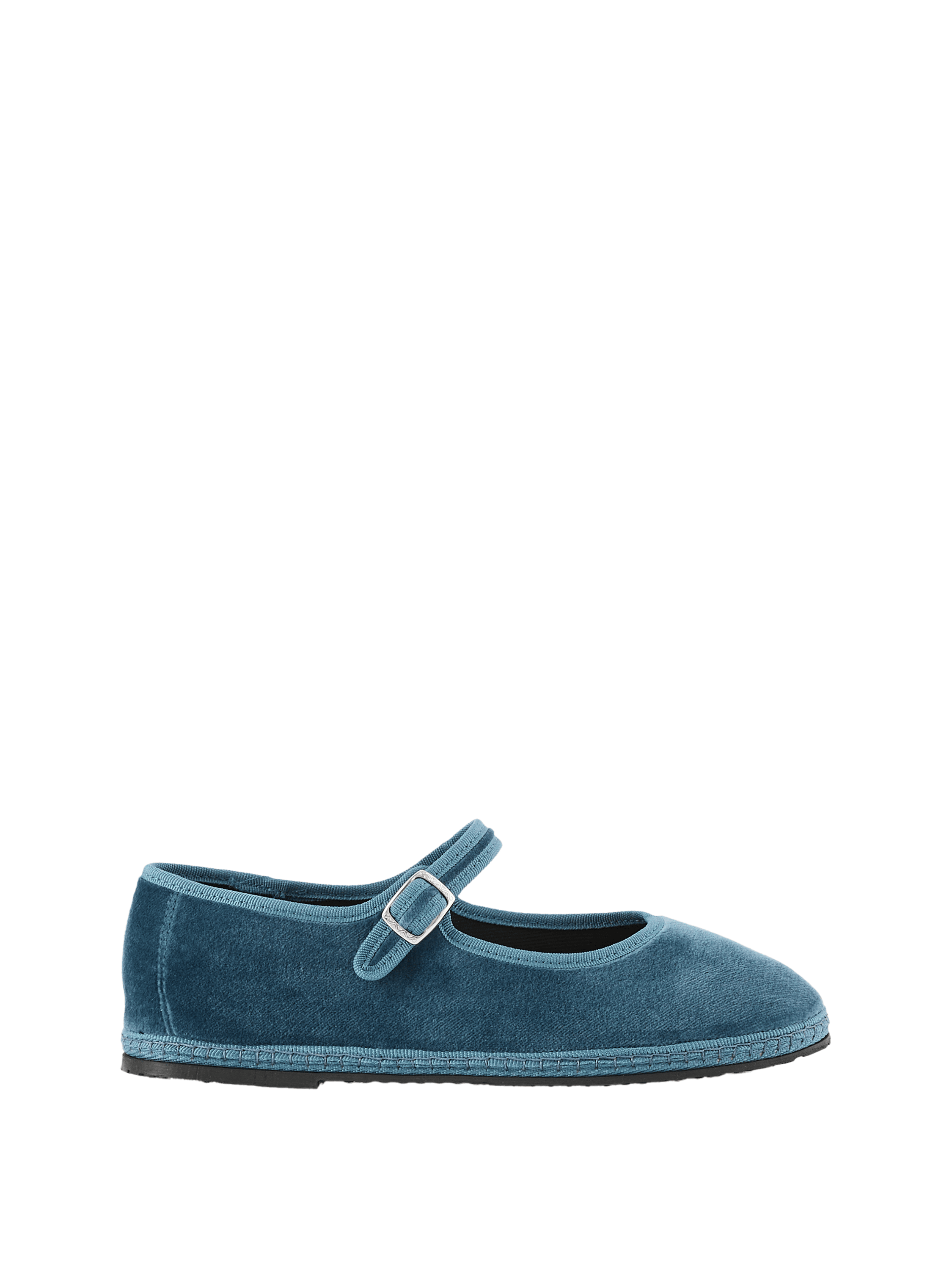 Slipper 'Mary Jane' aus Samt Azzurro Adriatico