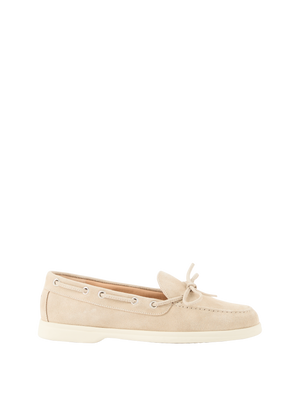 Bootsschuh aus Veloursleder mit Schleife Hellblau