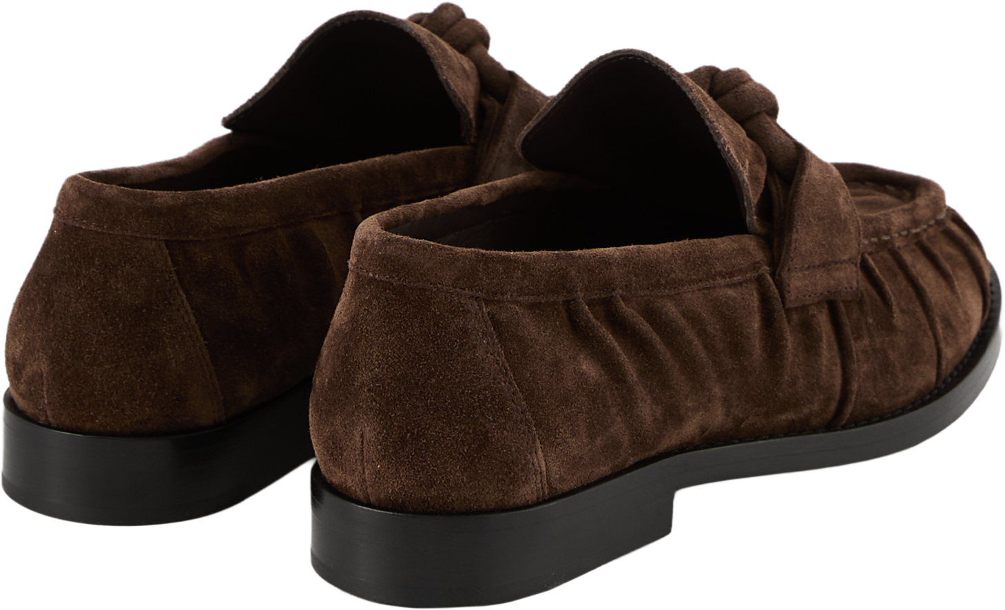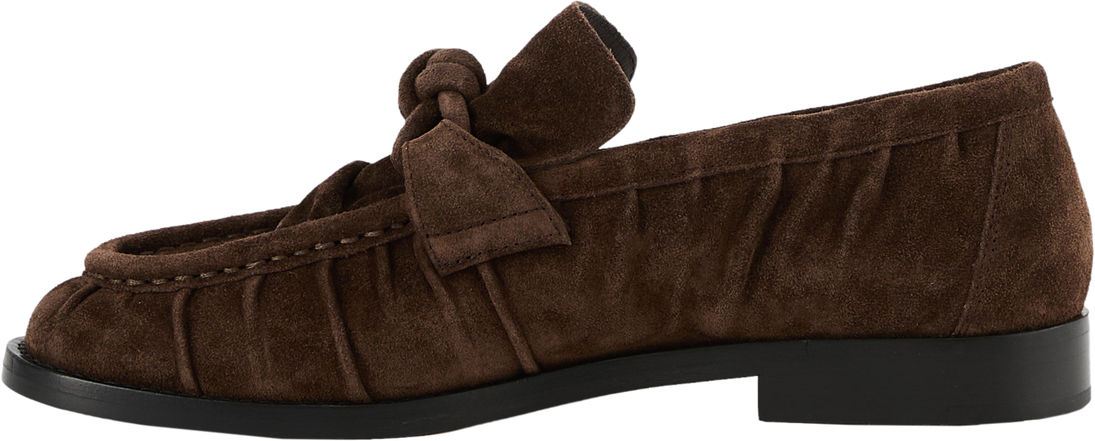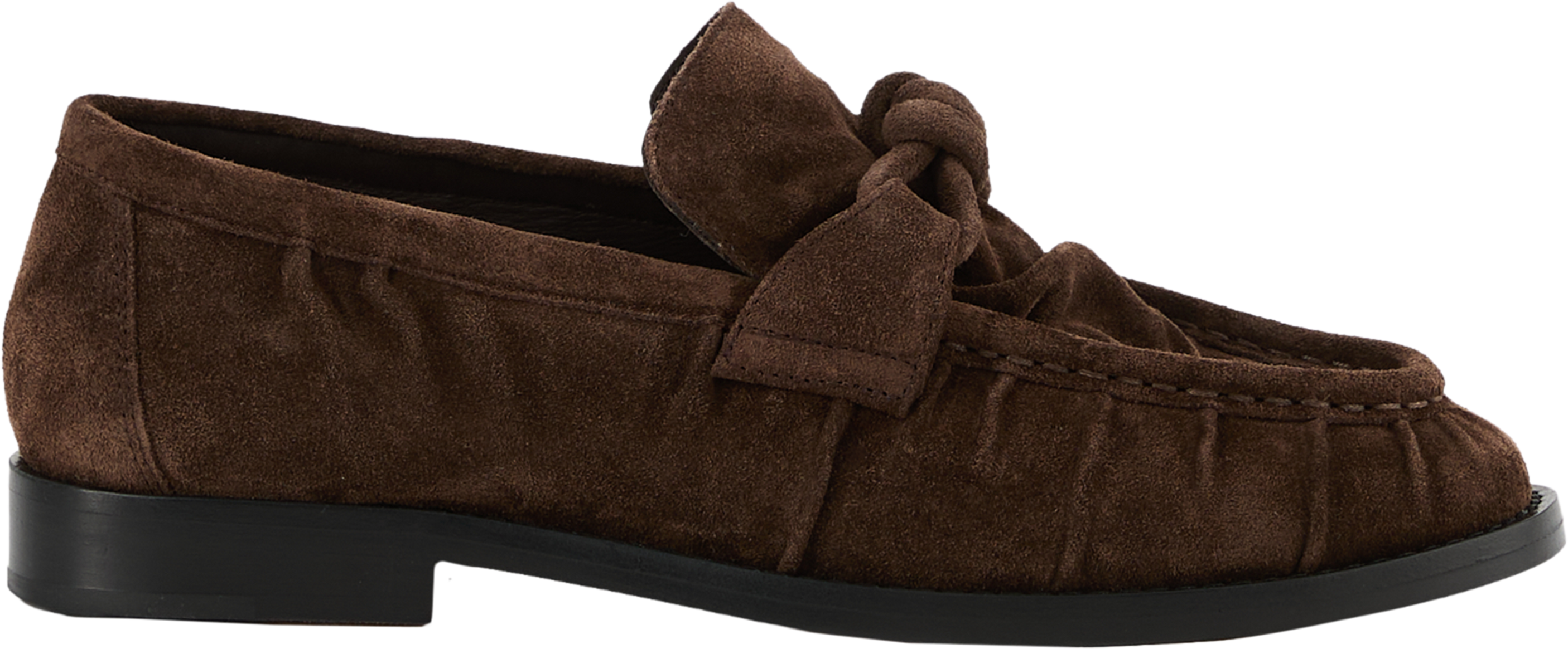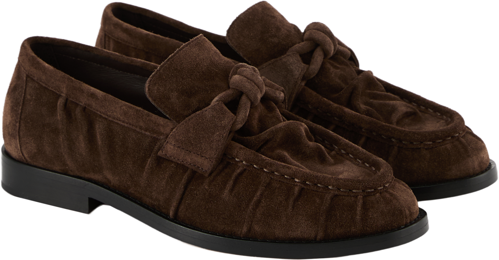 Der Loafer 'Astaire' in Fondant von Bottega Veneta wurde aus geschmeidigem Wildleder gefertigt und besticht durch die Knitteroptik. Die runde Zehenkappe wird durch die markante Sohle ergänzt. Das Knoten-Detail vollendet dieses modische Modell.