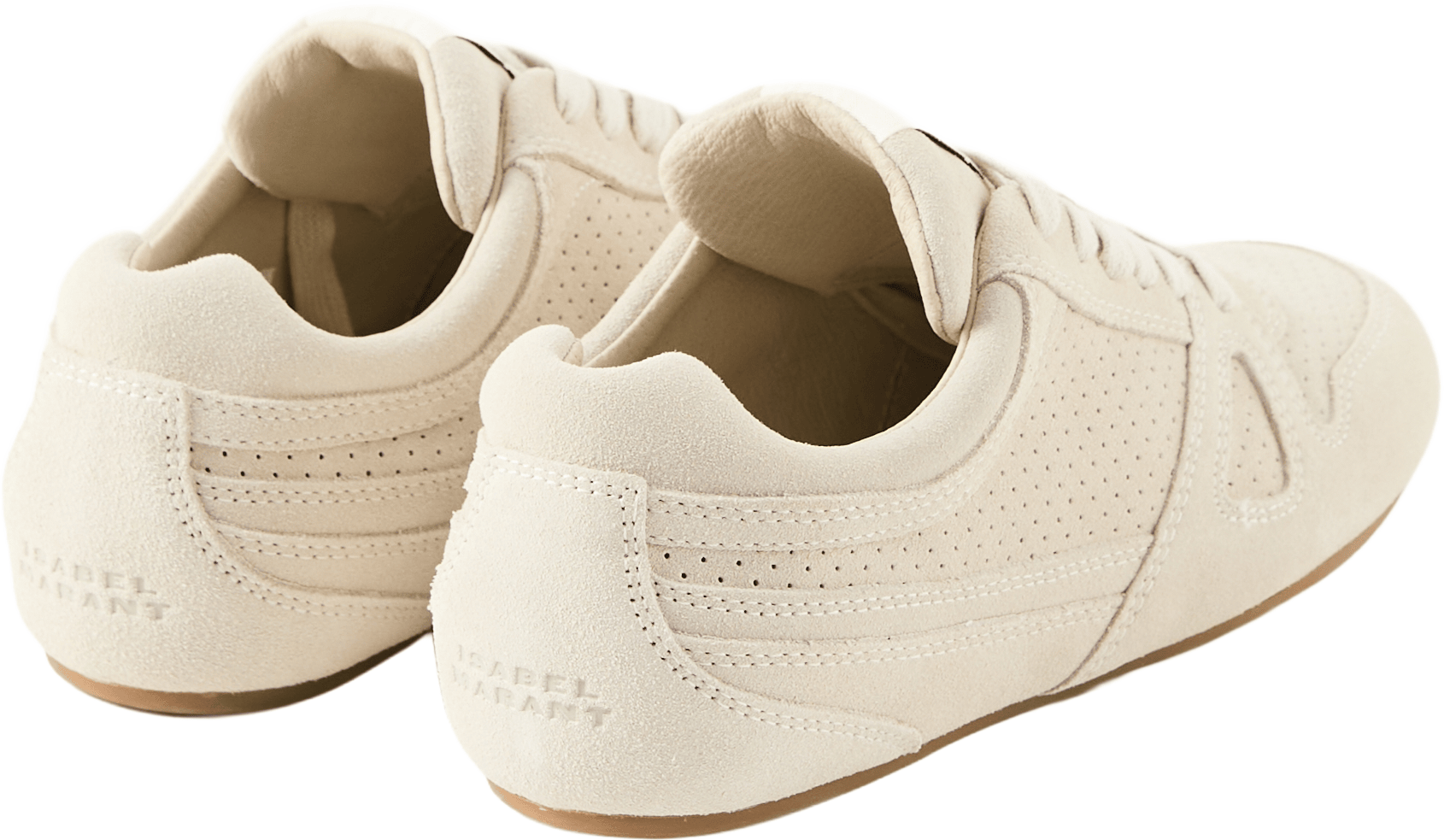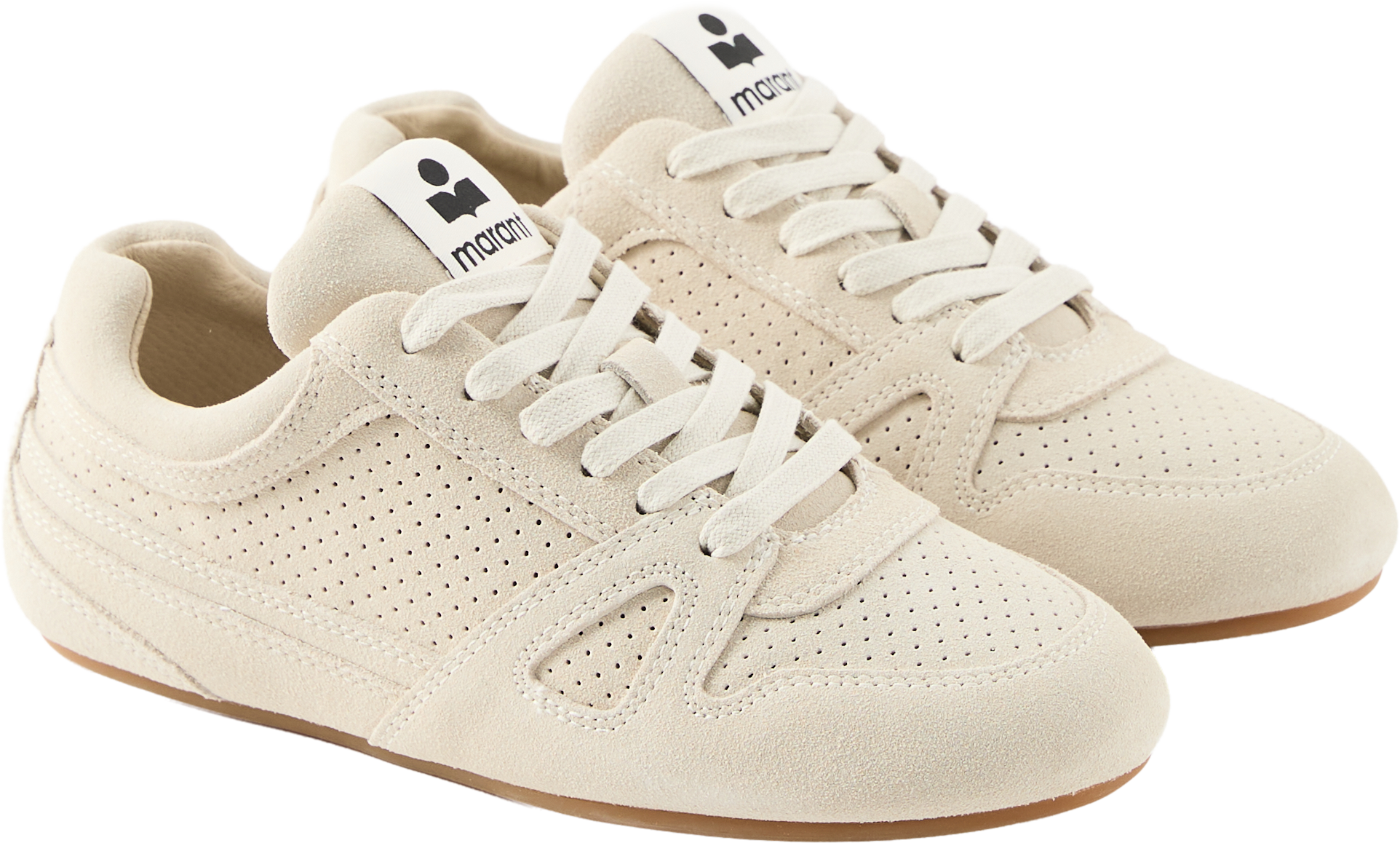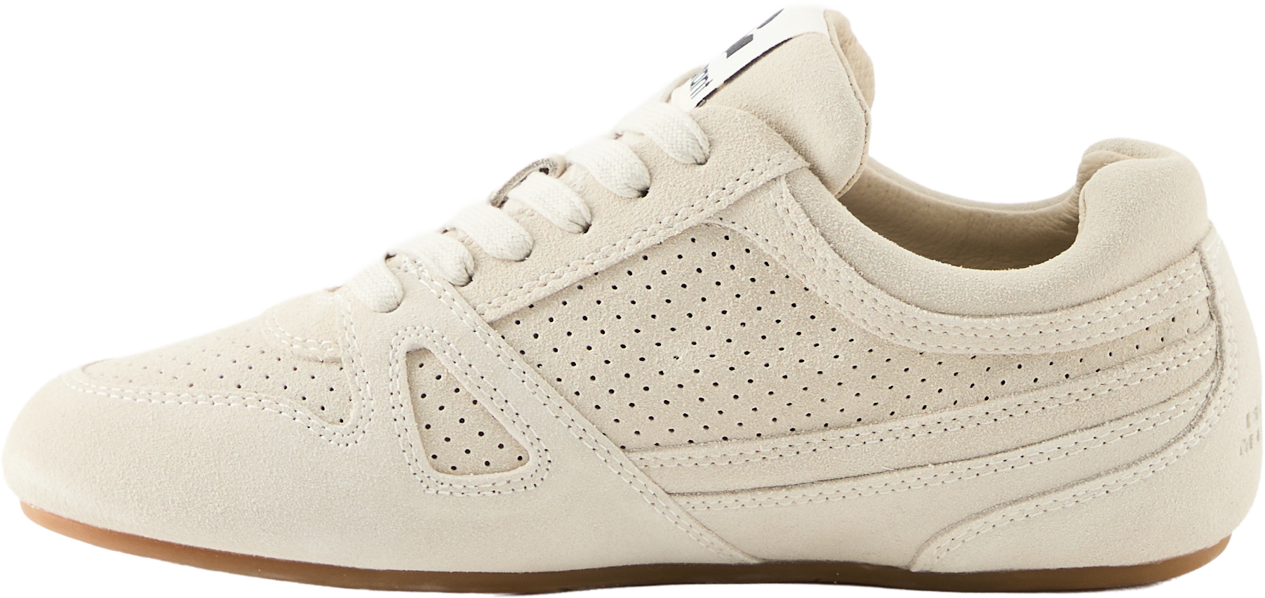 Die Sneaker 'Senny Low' in Crème von Isabel Marant wurden aus perforiertem Veloursleder gefertigt und bestechen durch den Racing-Look. Der Schnürverschluss, die runde Zehenpartie, der gepolsterte Schaftrand sowie die seitlichen Einsätze zeichnen dieses Modell aus.