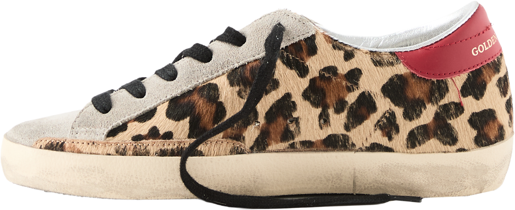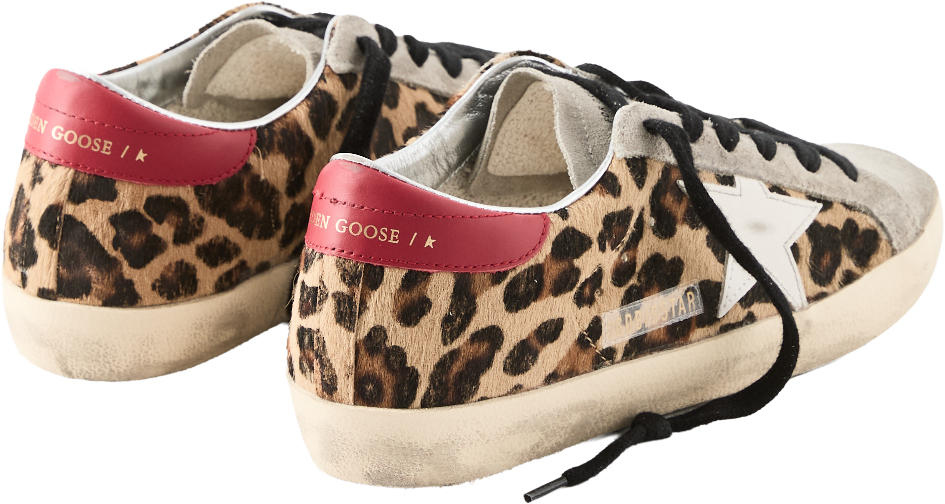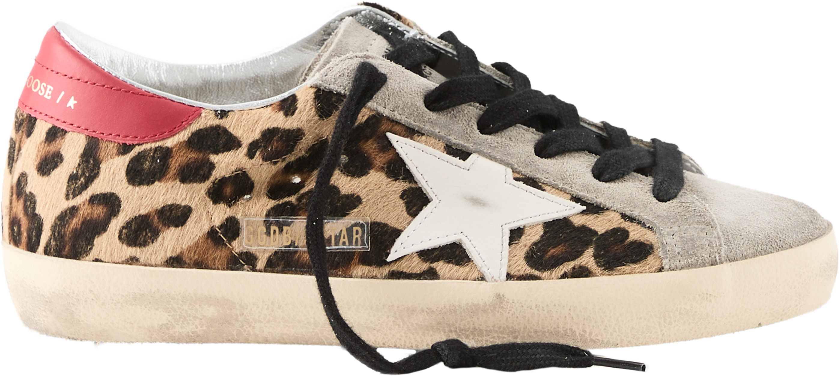 Der Sneaker 'Super-Star Leopard' in Braun von Golden Goose wurde aus Veloursleder und Ponyfell gefertigt und besticht durch den Animal-Print. Die herausnehmbare Innensohle, die Label-Details, das Multicolor-Design sowie die Used-Optik runden das Design harmonisch ab. Der gepolsterte Schaftrand sowie die leicht gepolsterte Zunge sorgen für zusätzlichen Komfort.