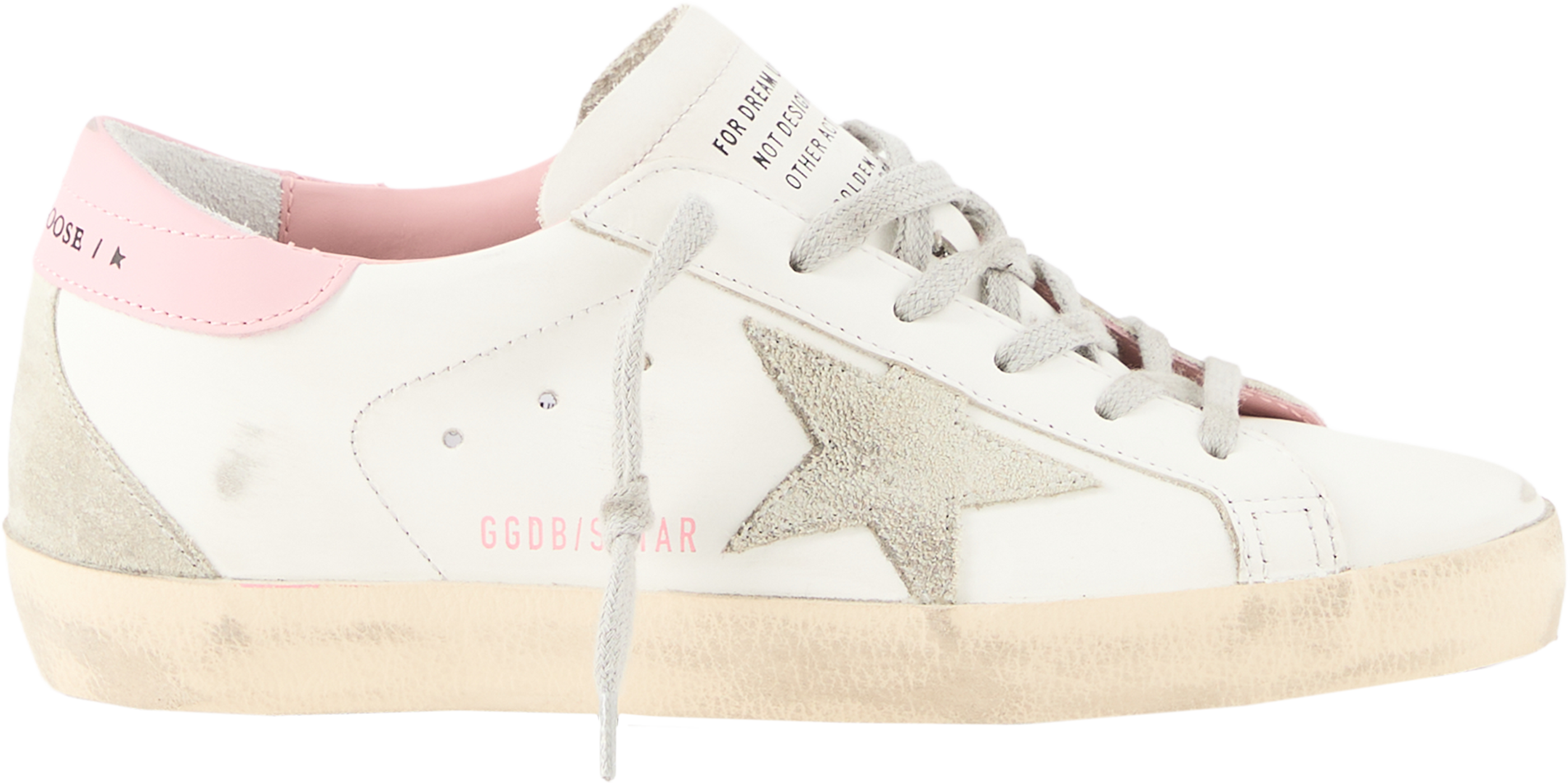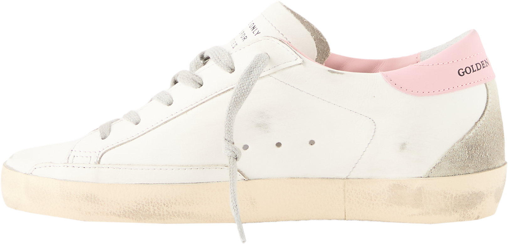 Der Sneaker 'Super-Star' in Weiß von GOLDEN GOOSE wurde aus Kalbsleder gefertigt und besticht durch den Used-Effekt. Der gepolsterte Schaftrand, die herausnehmbare Sohle, die kontrastierende Schnürsenkel sowie die Sternapplikation an der Seite runden das Design ab.