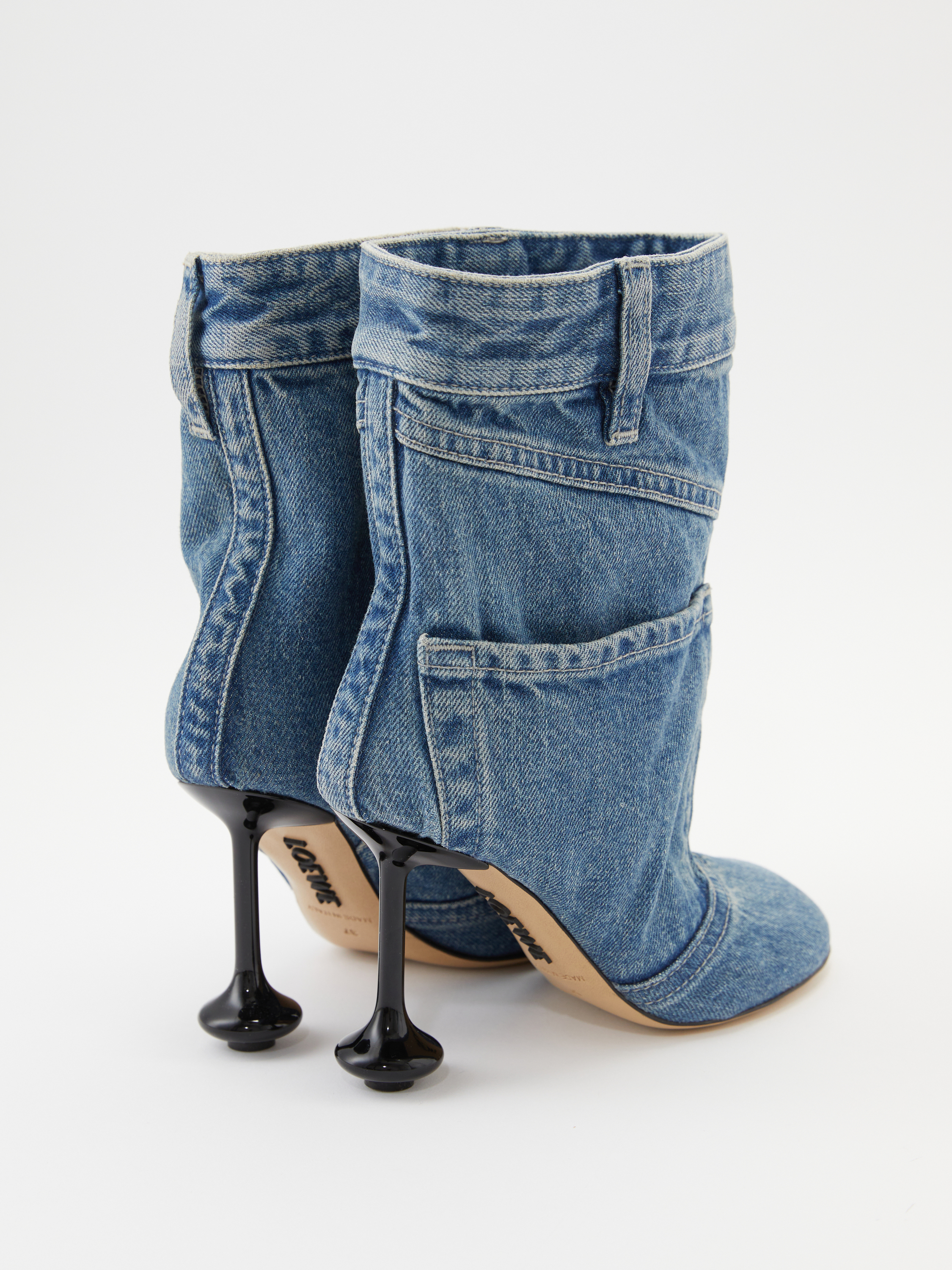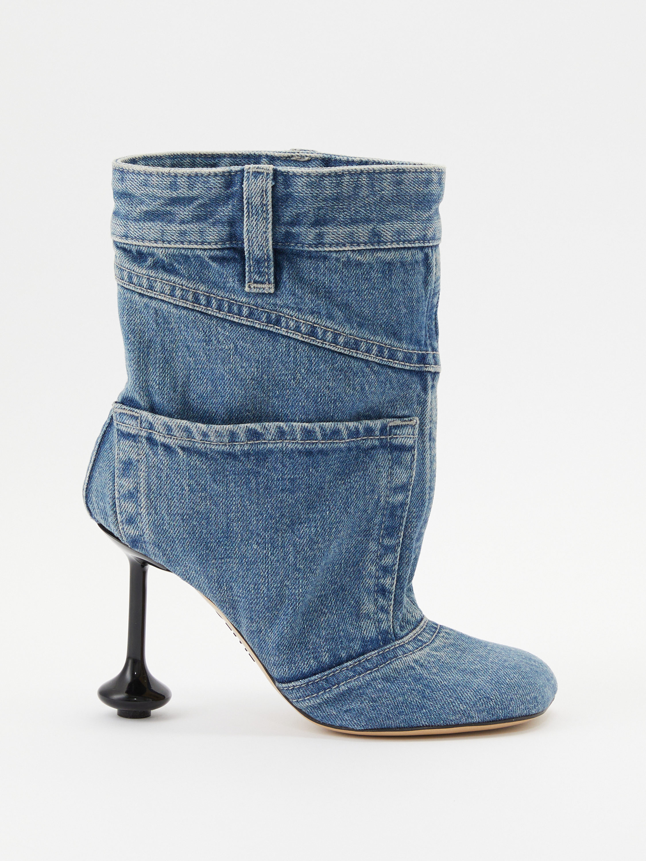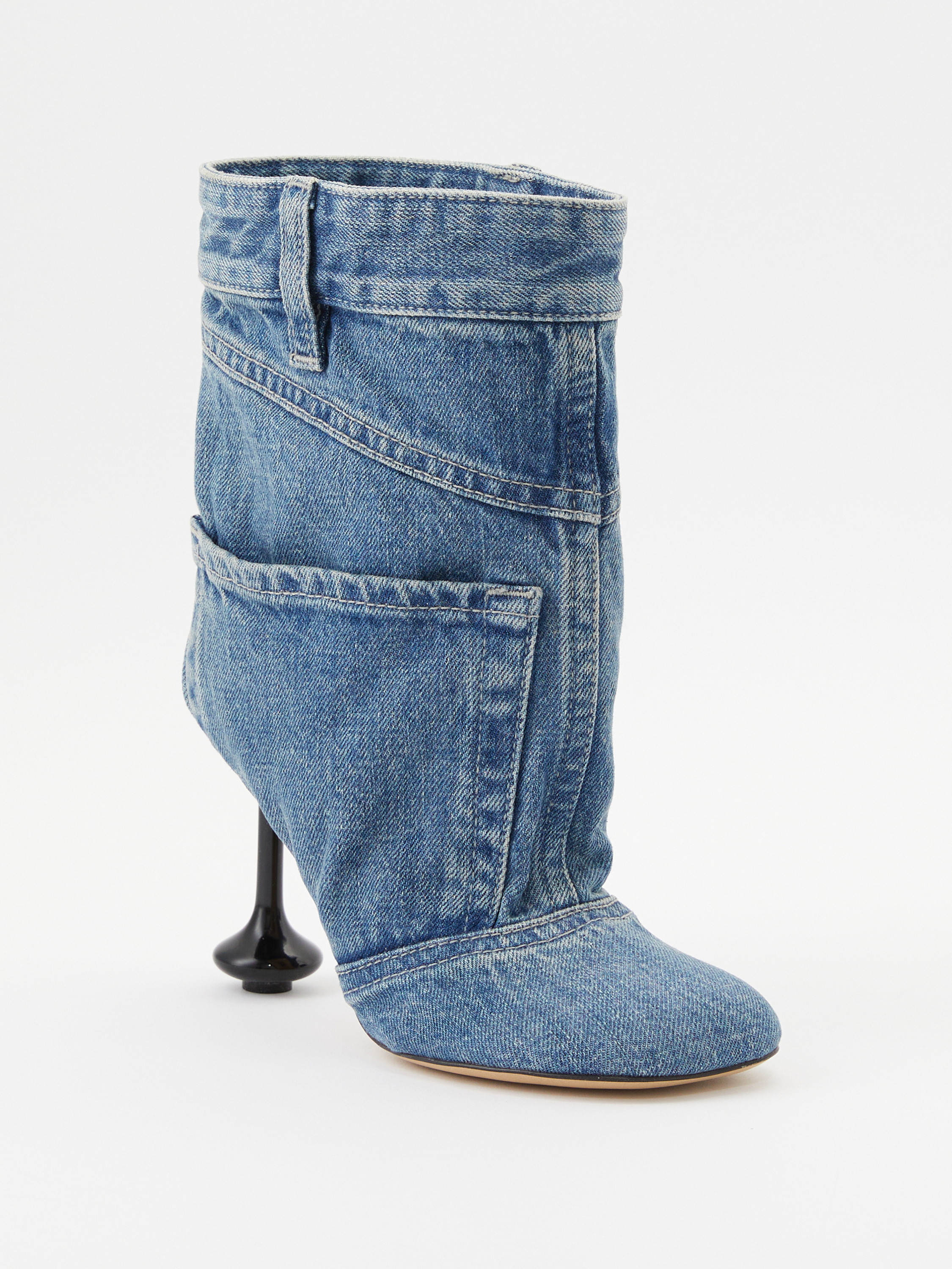 Die Stiefeletten 'Toy Panta Boot 90' in Blau von LOEWE wurden aus Denim gefertigt und bestechen durch den voluminösen Schaft. Die runde Zehenpartie und der originelle Absatz zeichnen dieses Modell aus.
