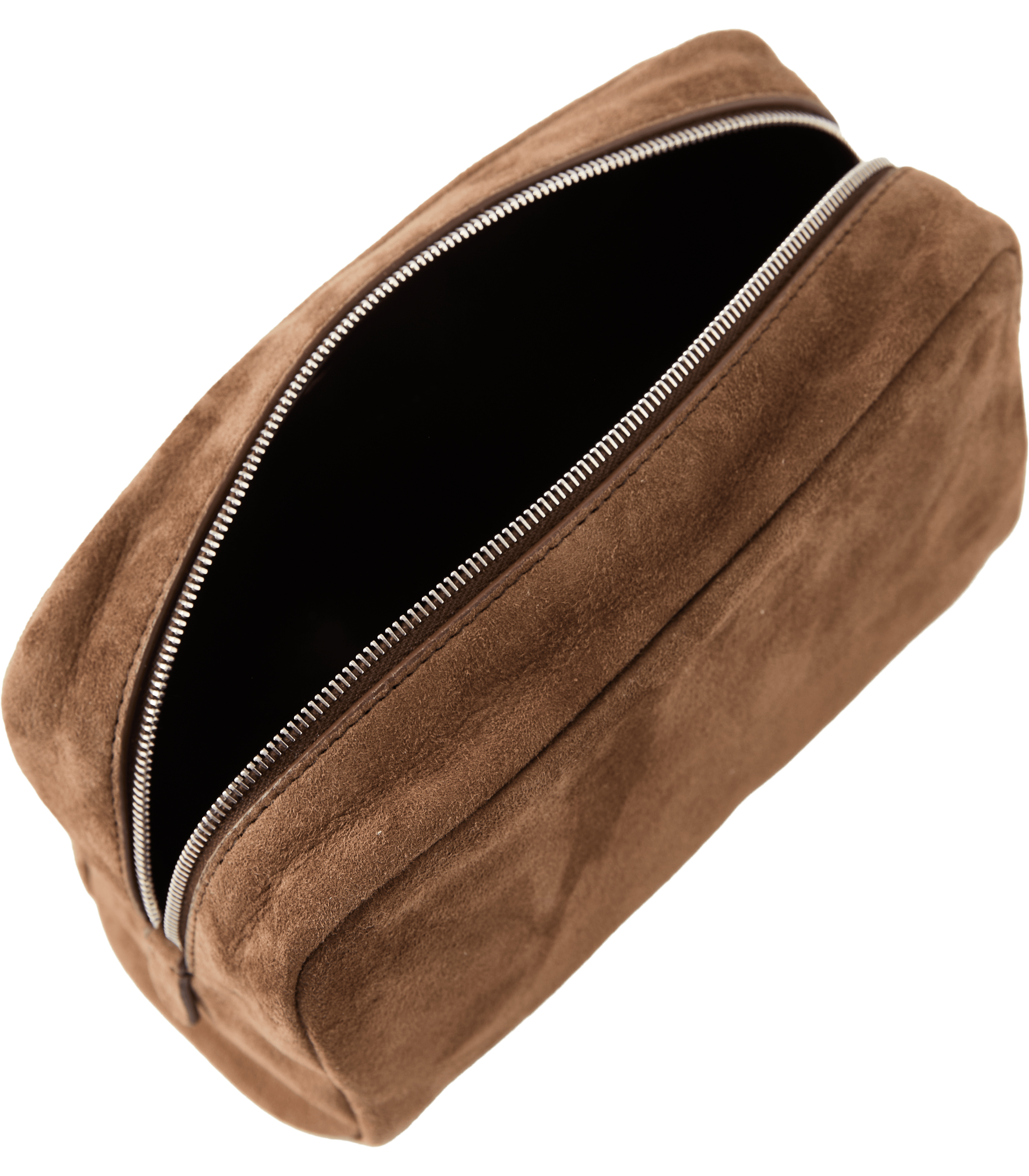 Die Clutch 'Astra' in Braun von The Row wurde aus weichem, mattem Kalbsveloursleder gefertigt und besticht durch die vielseitige, kompakte Form. Die umgeschlagenen Kanten, das geprägte Logo und der doppelte Reißverschluss prägen das Design. Die minimalistische Verarbeitung lässt die natürlich glatte Oberfläche unberührt und verleiht dem Leder so eine geschmeidige Haptik sowie eine edle Textur.