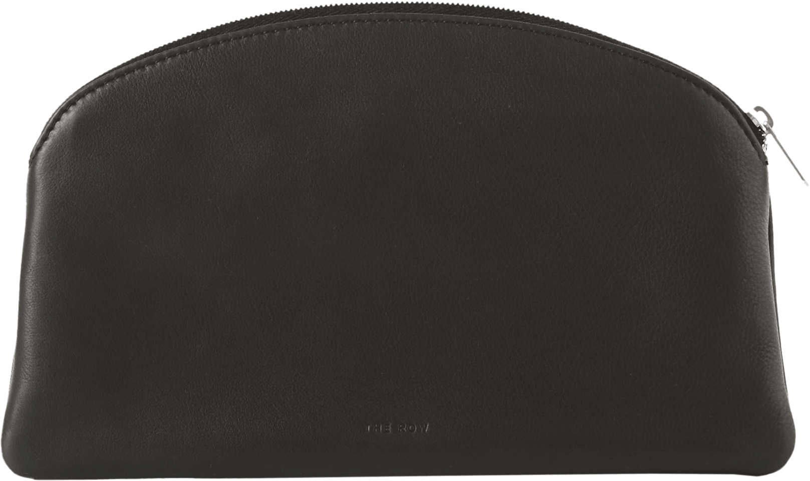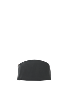 Die Clutch 'Round Compact' in Schwarz von The Row wurde aus glattem Nappaleder gefertigt und besticht durch ein zeitloses Design. Die silberne Hardware, der Reißverschluss und das dezente Logo auf der Vorderseite runden das Modell stilvoll ab.