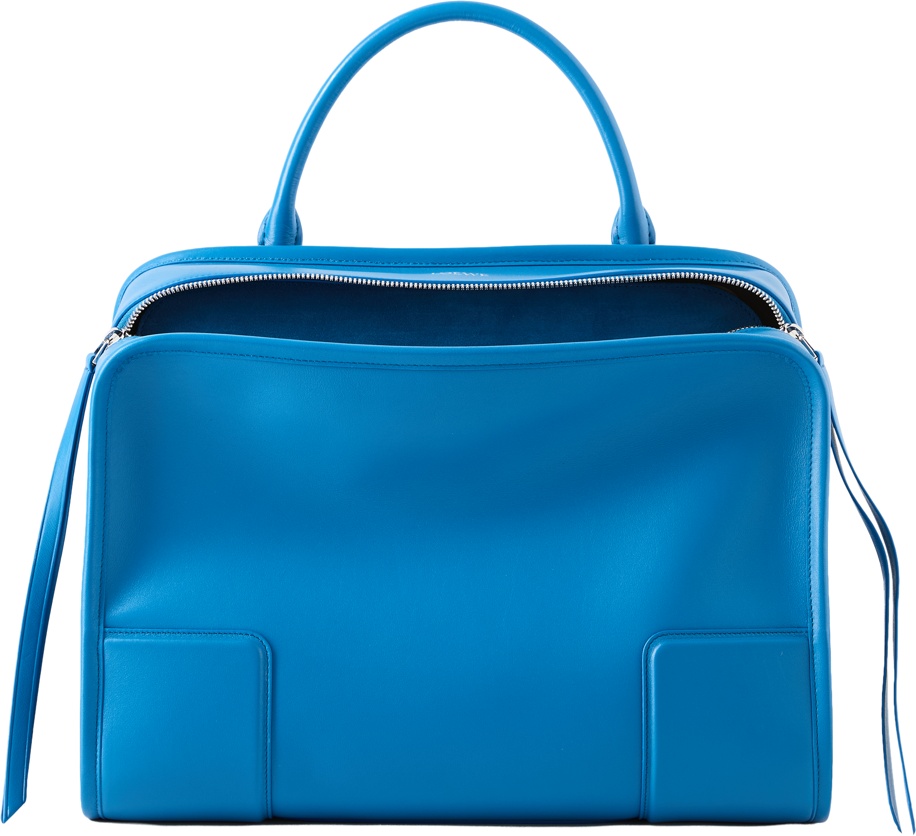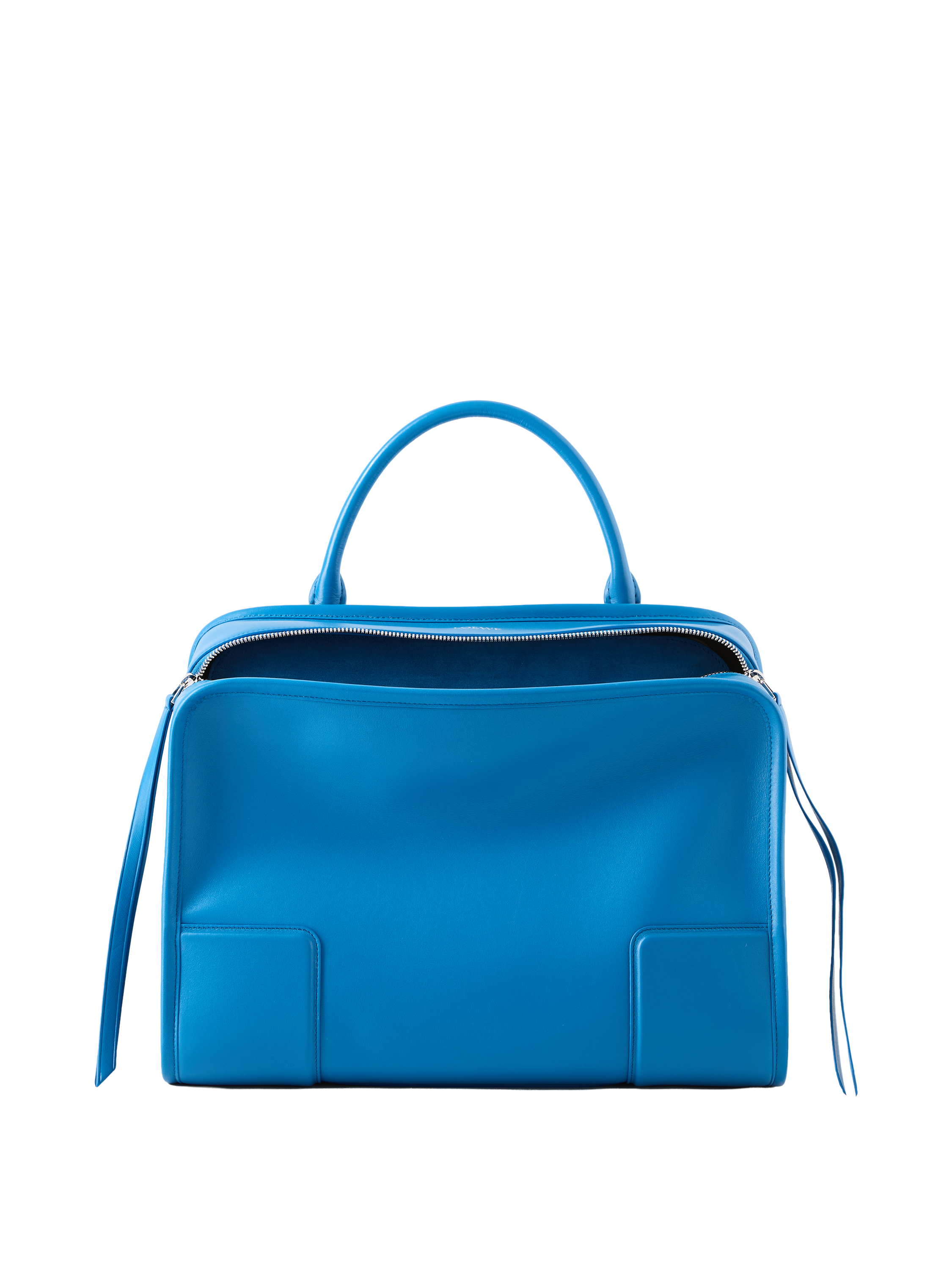 Die Handtasche 'Amazona 180 Large' in Royal Azur von LOEWE wurde aus weichem Kalbsleder gefertigt und besticht durch die elegante Bowlingtaschen-Silhouette mit einem einzelnen Toron-Griff. Zwei Innenfächer mit Magnetverschluss sorgen für eine praktische Aufteilung, während silberfarbene Hardware edle Akzente setzen. Dank des Griffs sowie des abnehmbaren und verstellbaren Riemens lässt sich das Modell vielseitig in der Hand, über der Schulter oder als Crossbody tragen. Zudem ist die Tasche so konzipiert, dass sie offen getragen werden kann.