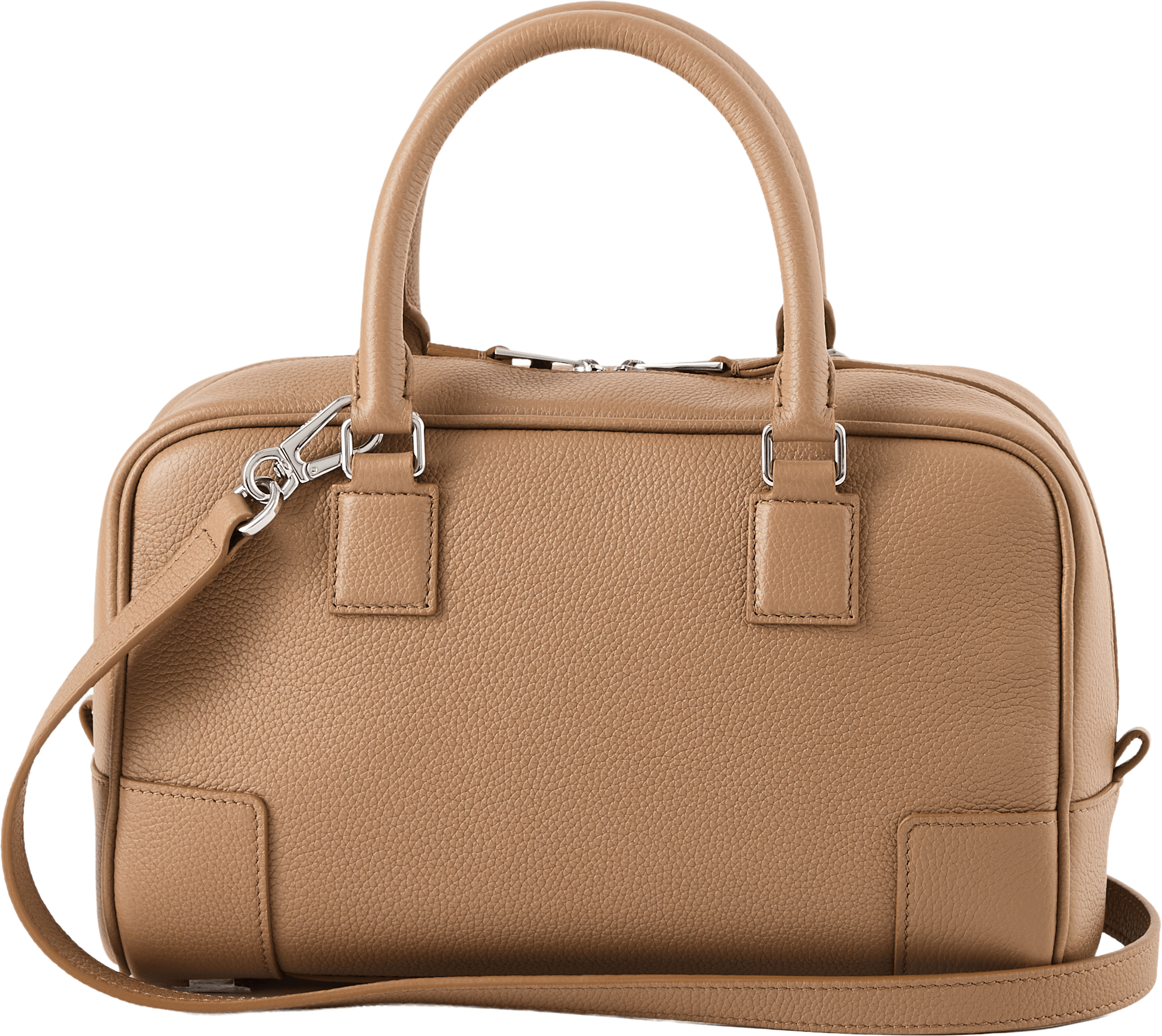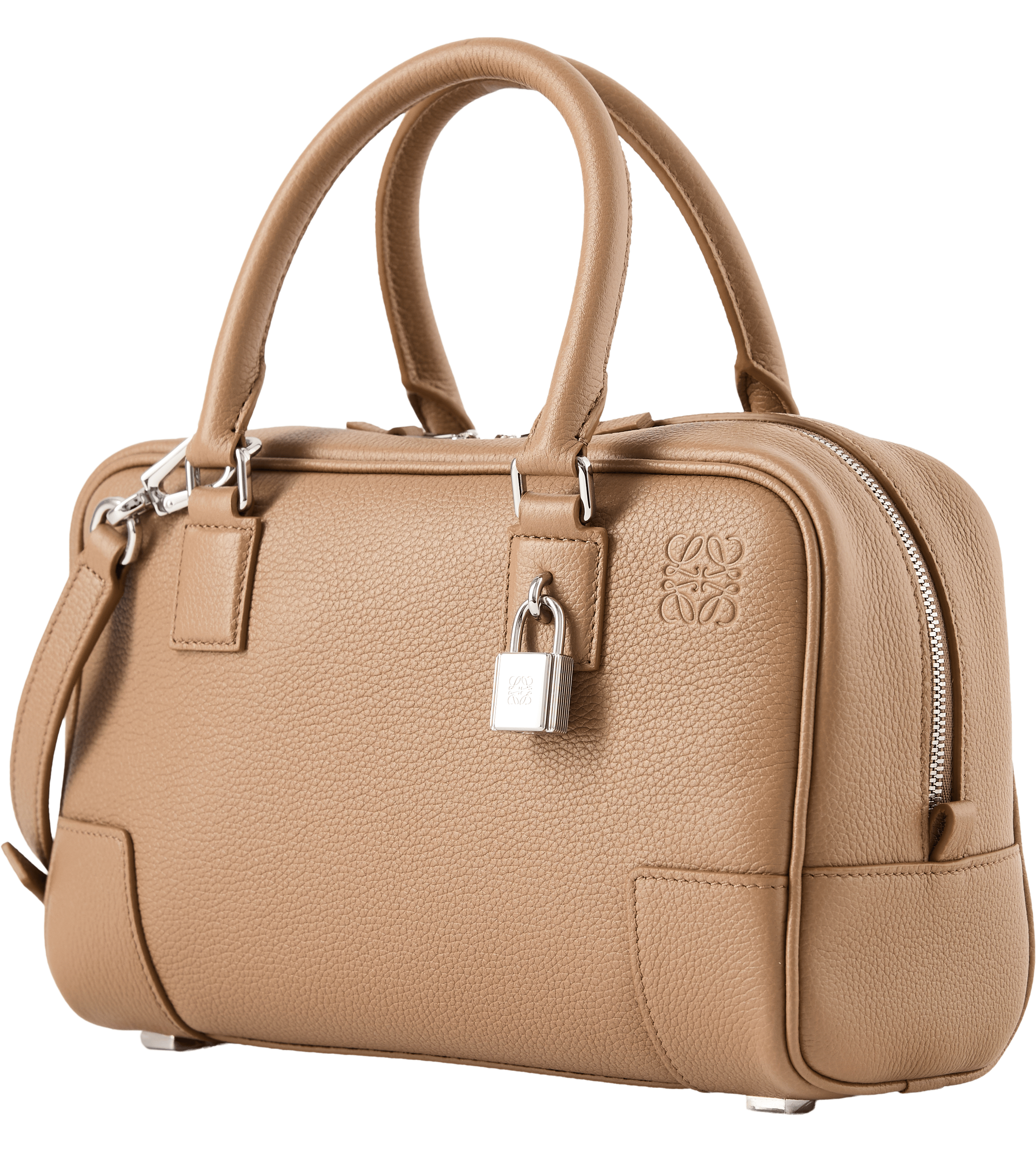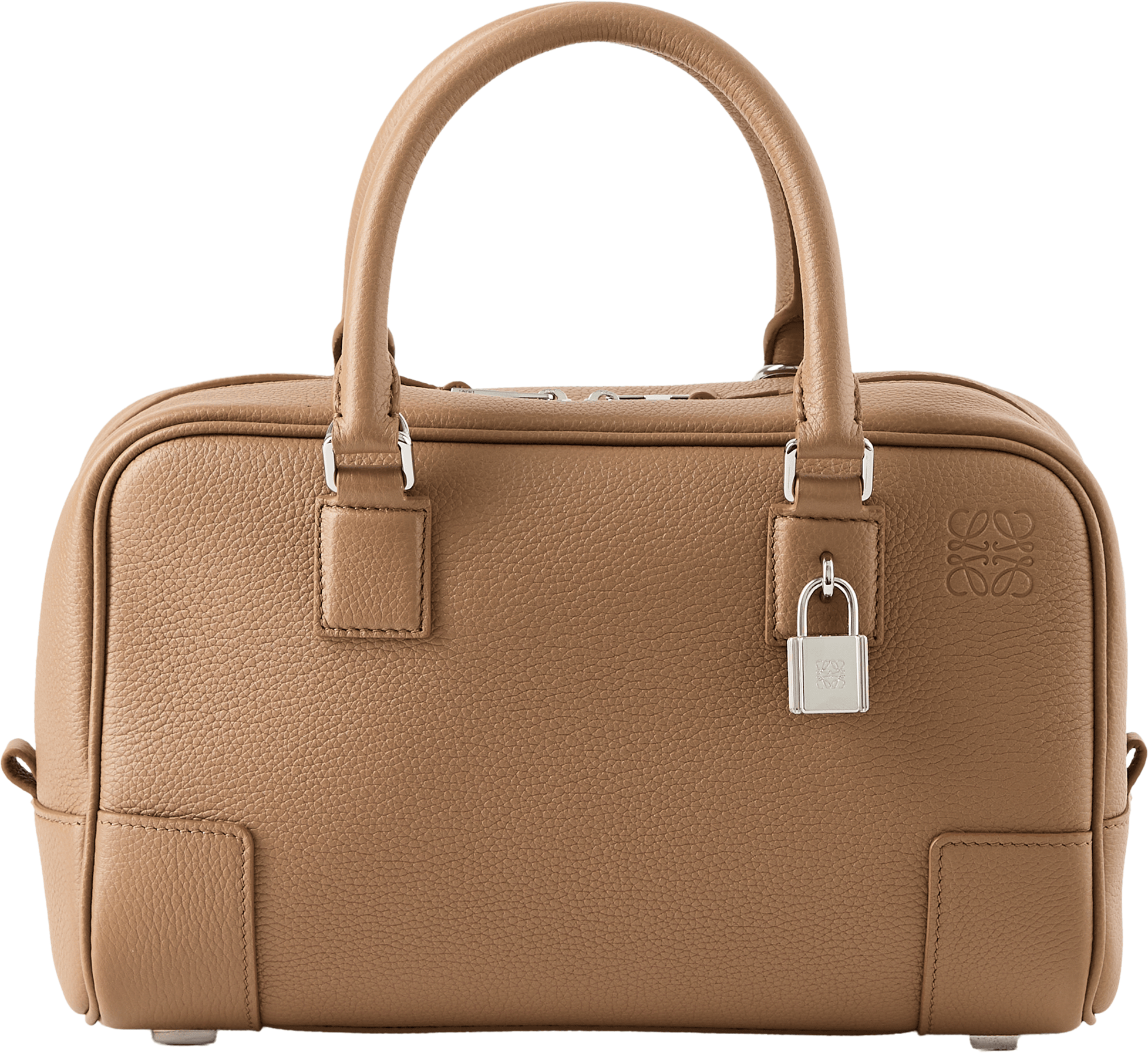 Die Handtasche 'Amazona 23' in Mocha von LOEWE wurde aus weichem Kalbsleder gefertigt und besticht durch die quadratische Form. Die frontale Anagramm-Prägung und das charakteristische Vorhängeschloss setzen elegante Akzente und bilden einen stilvollen Blickfang. Funktional wird das Design durch die Tragehenkel abgerundet, die sich bei Bedarf durch abnehmbare Schulterriemen erweitern lassen.