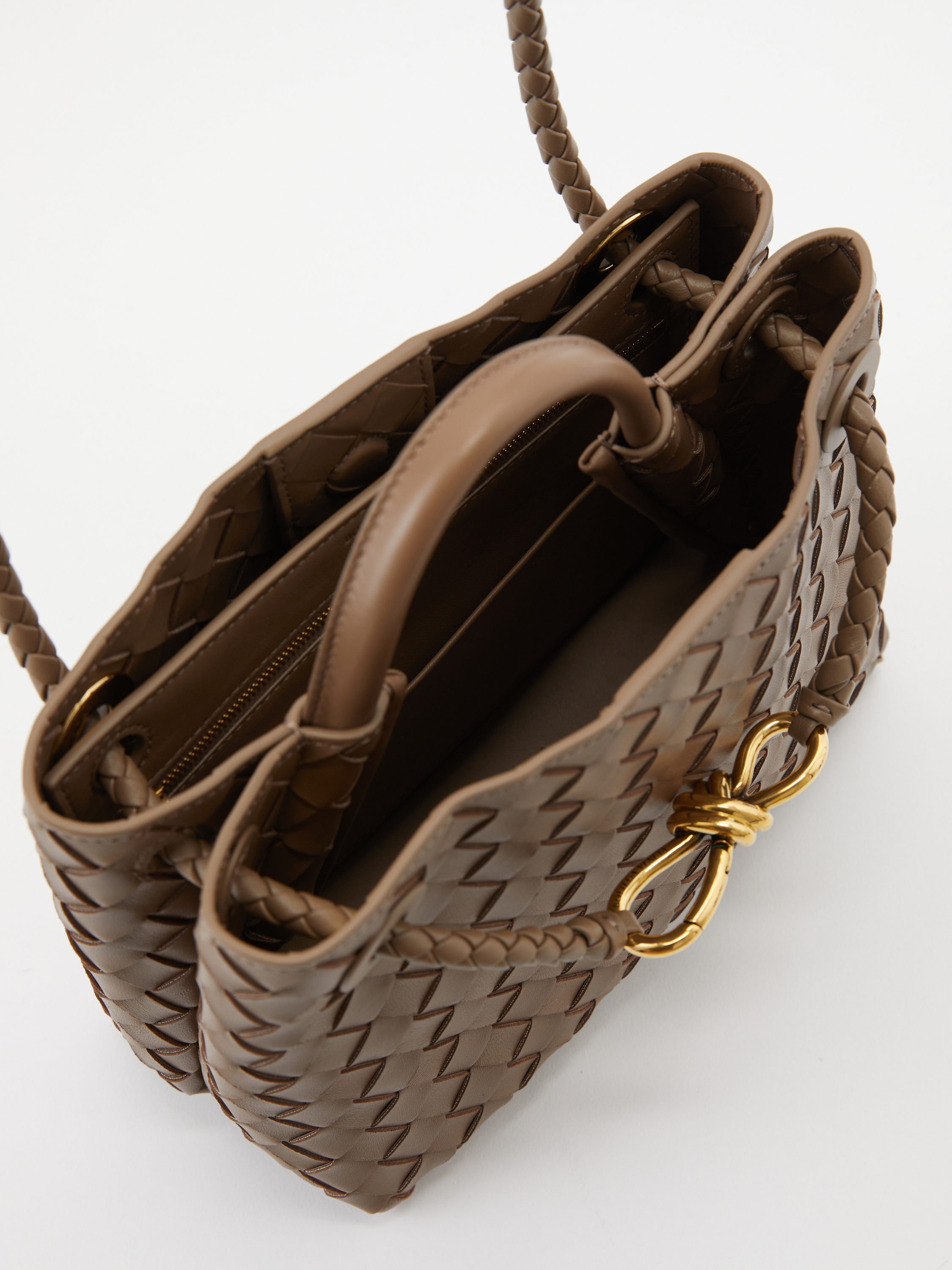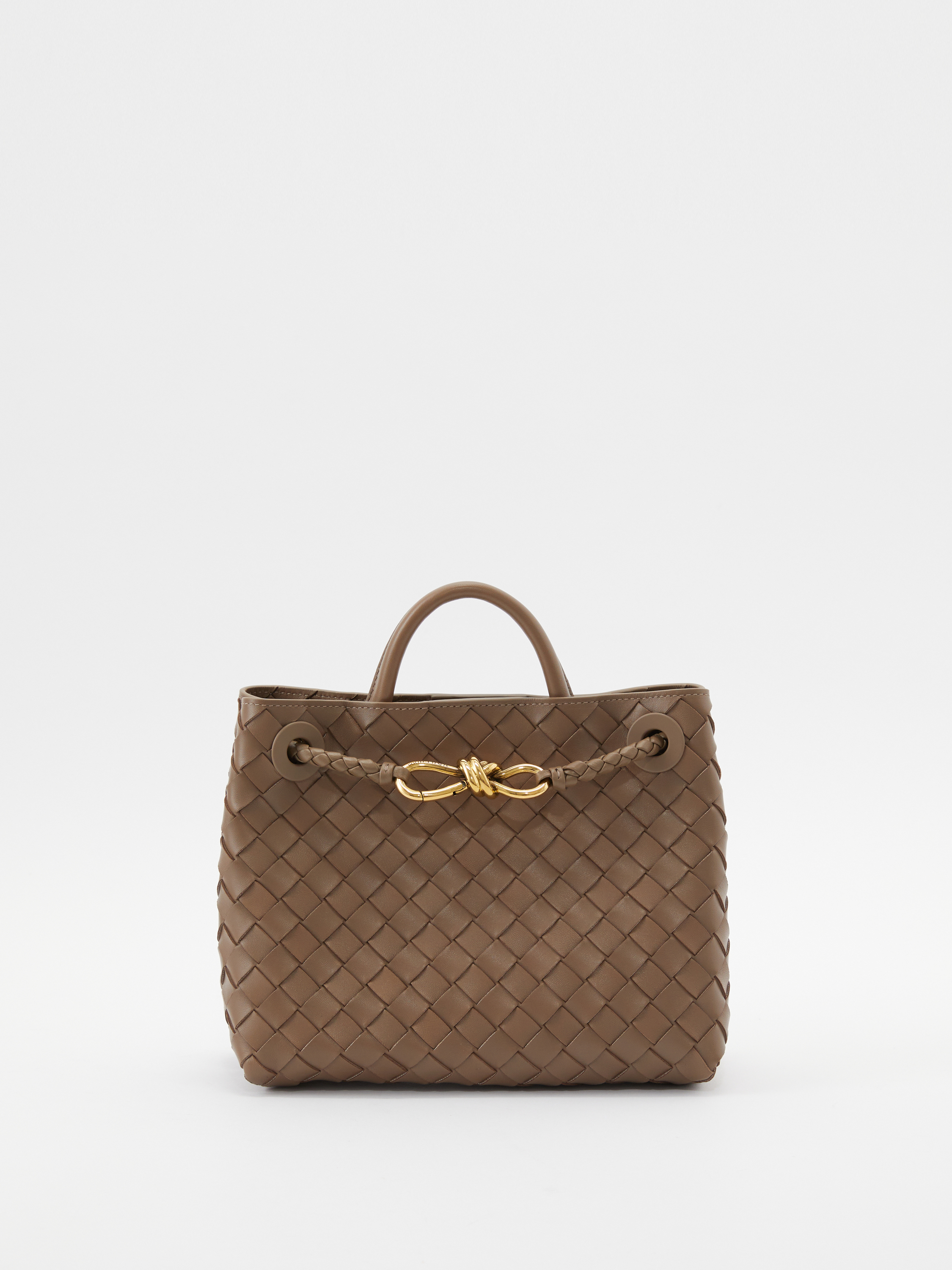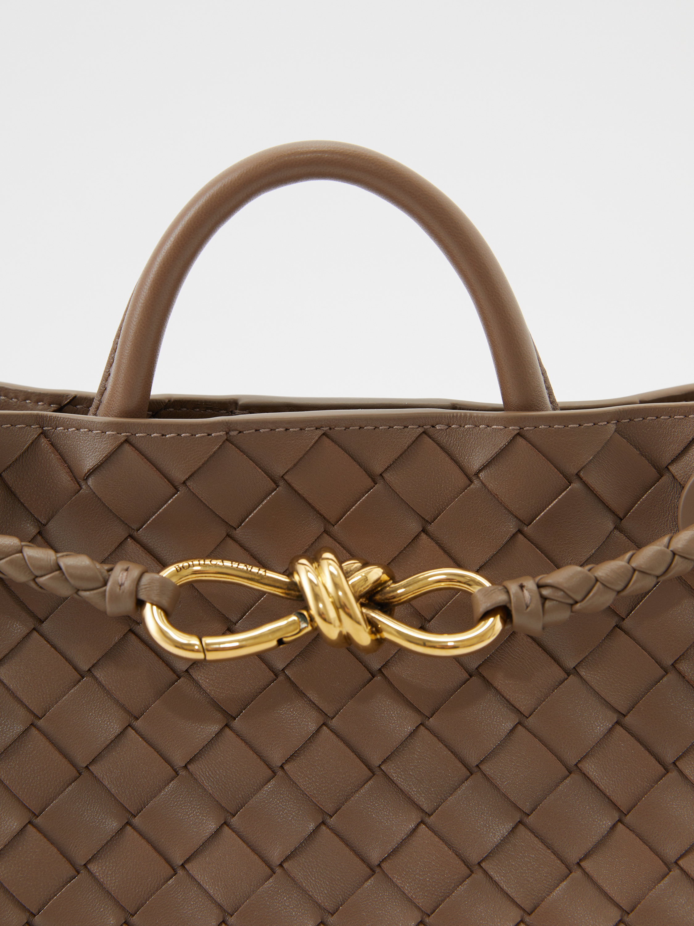 Die Handtasche 'Andiamo Small' in Pinecone wurde aus hochwertigem Kalbsleder gefertigt. Das Design besticht durch den gleitenden Crossbody-Riemen und durch das charakteristische Knotendetail.
