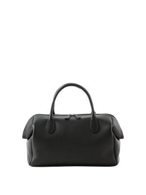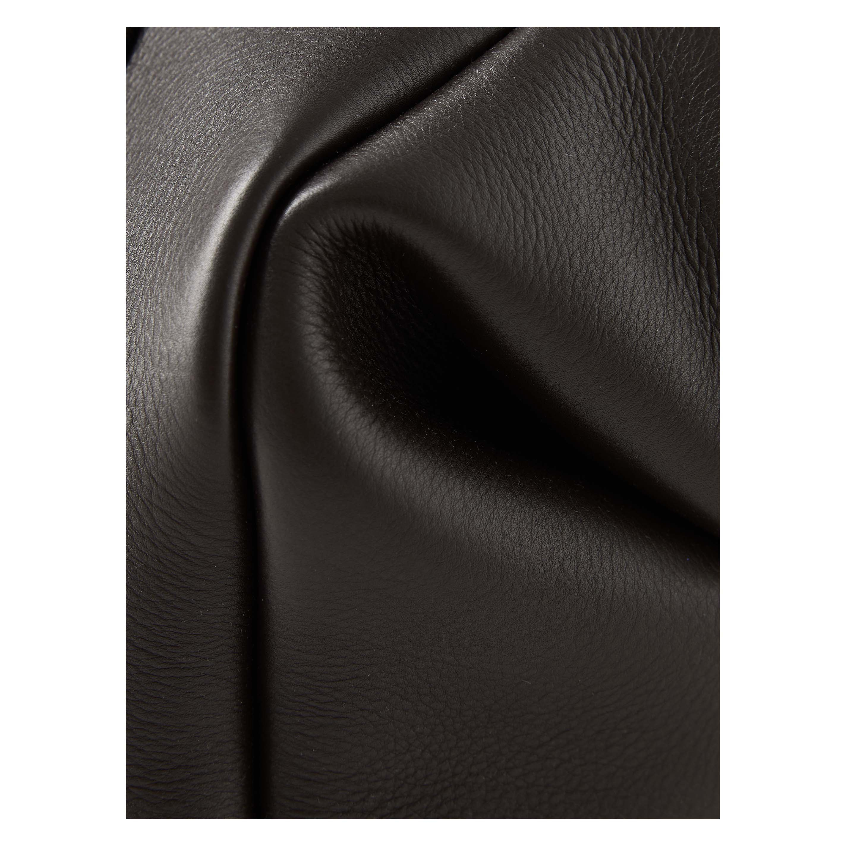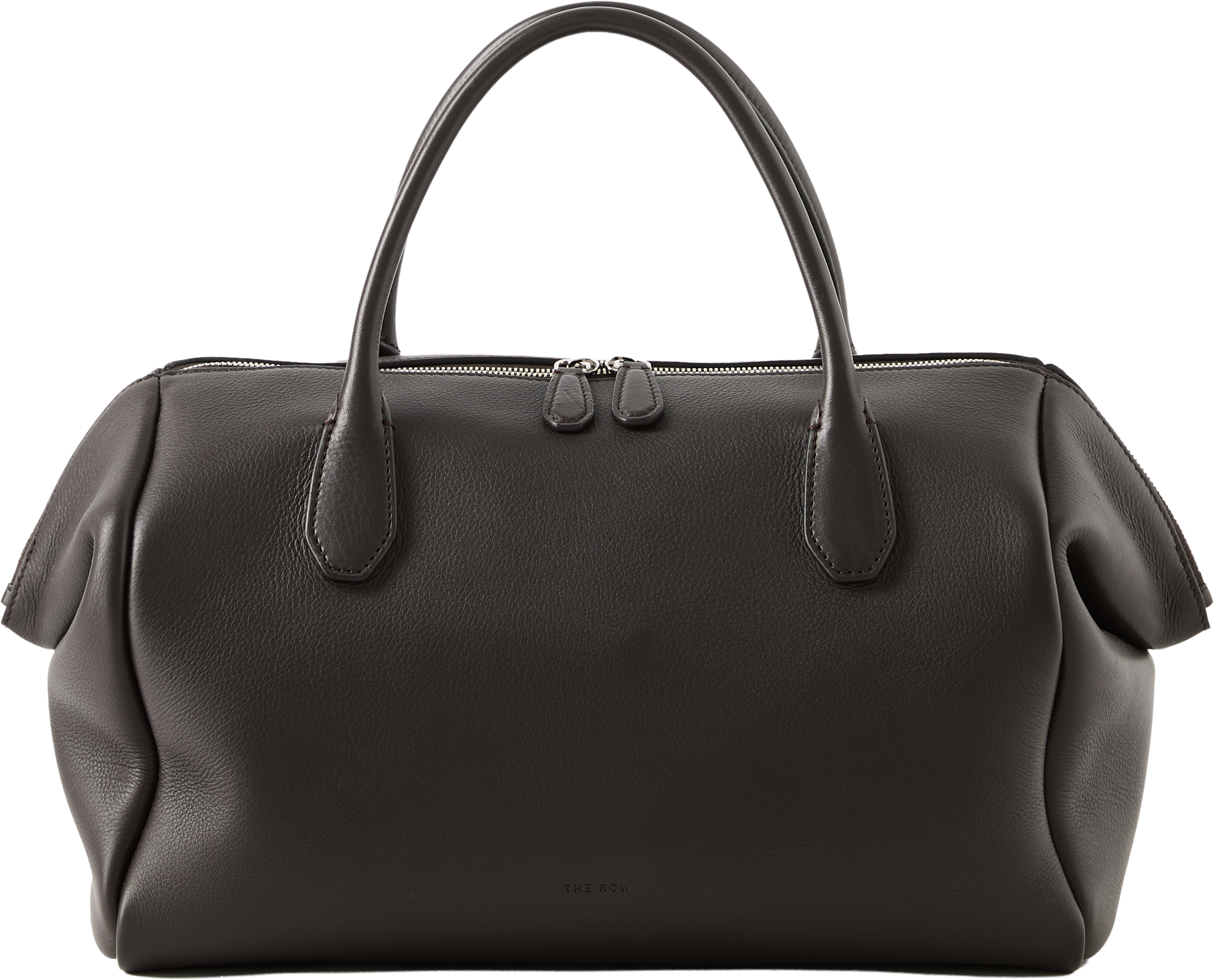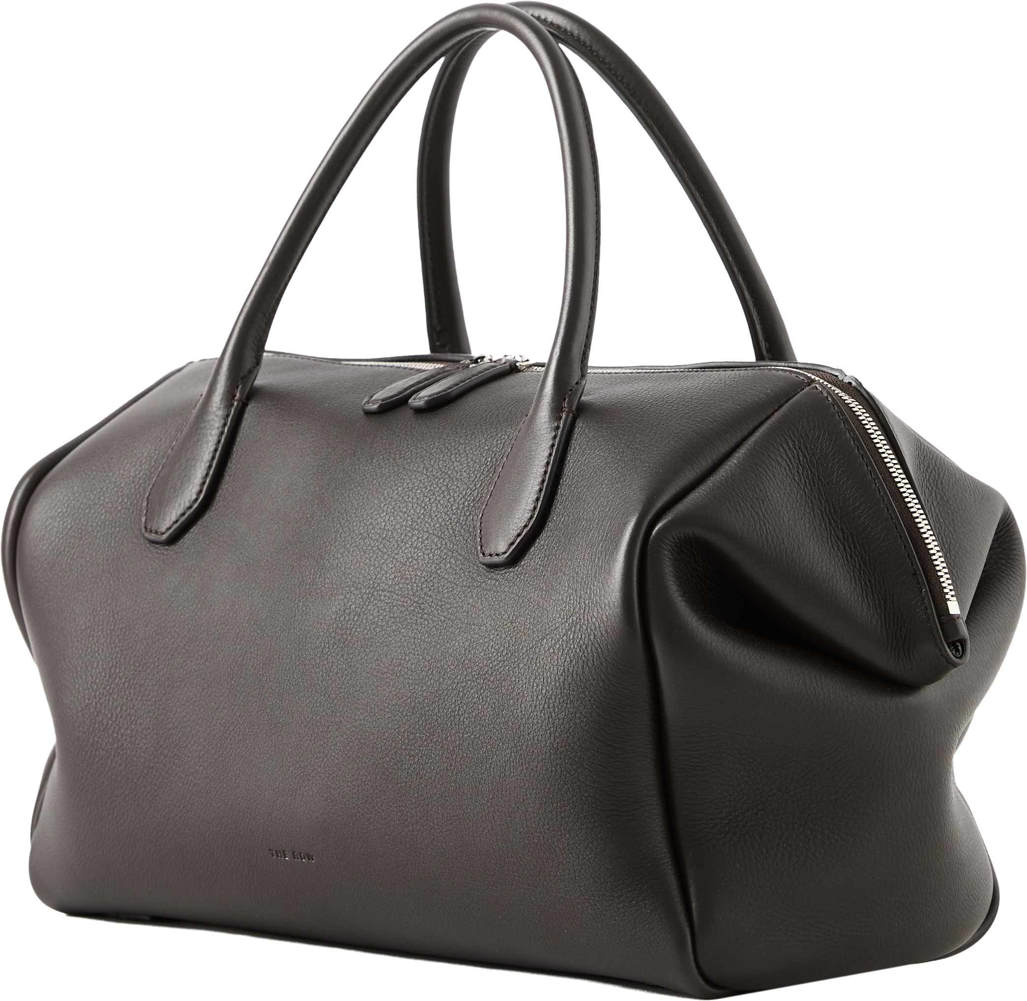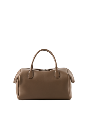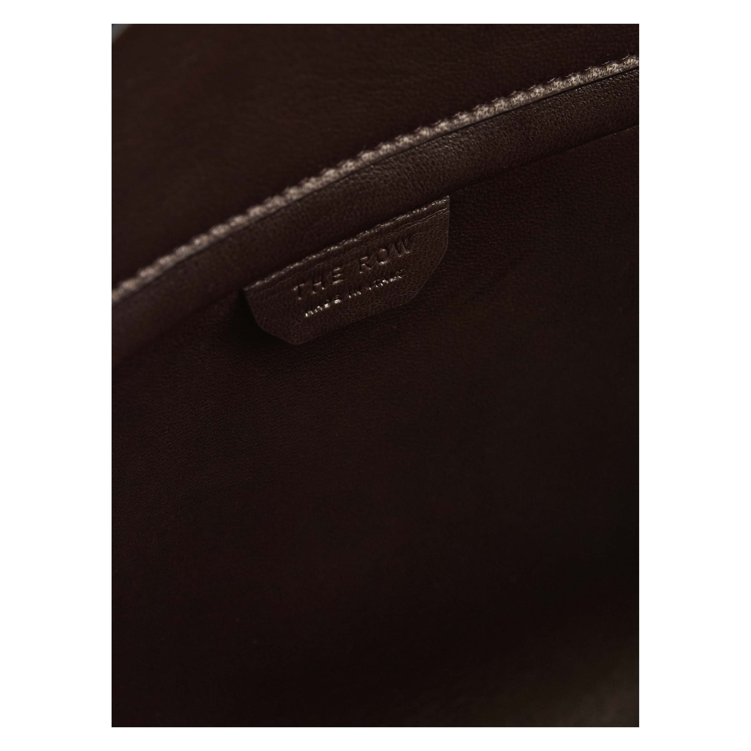 Die Handtasche 'Faye' in Dunkelbraun von The Row wurde aus fein genarbtem Kalbsleder gefertigt und besticht durch die Bowlingtaschenform. Die umgeschlagenen Kanten, die röhrenförmigen Tragegriffe sowie der flache Boden verleihen dem Modell charakteristisch Details. Das Leder zeichnet sich durch seine butterweiche Haptik und den dezenten Glanz aus und sorgt so für ein edles Finish.