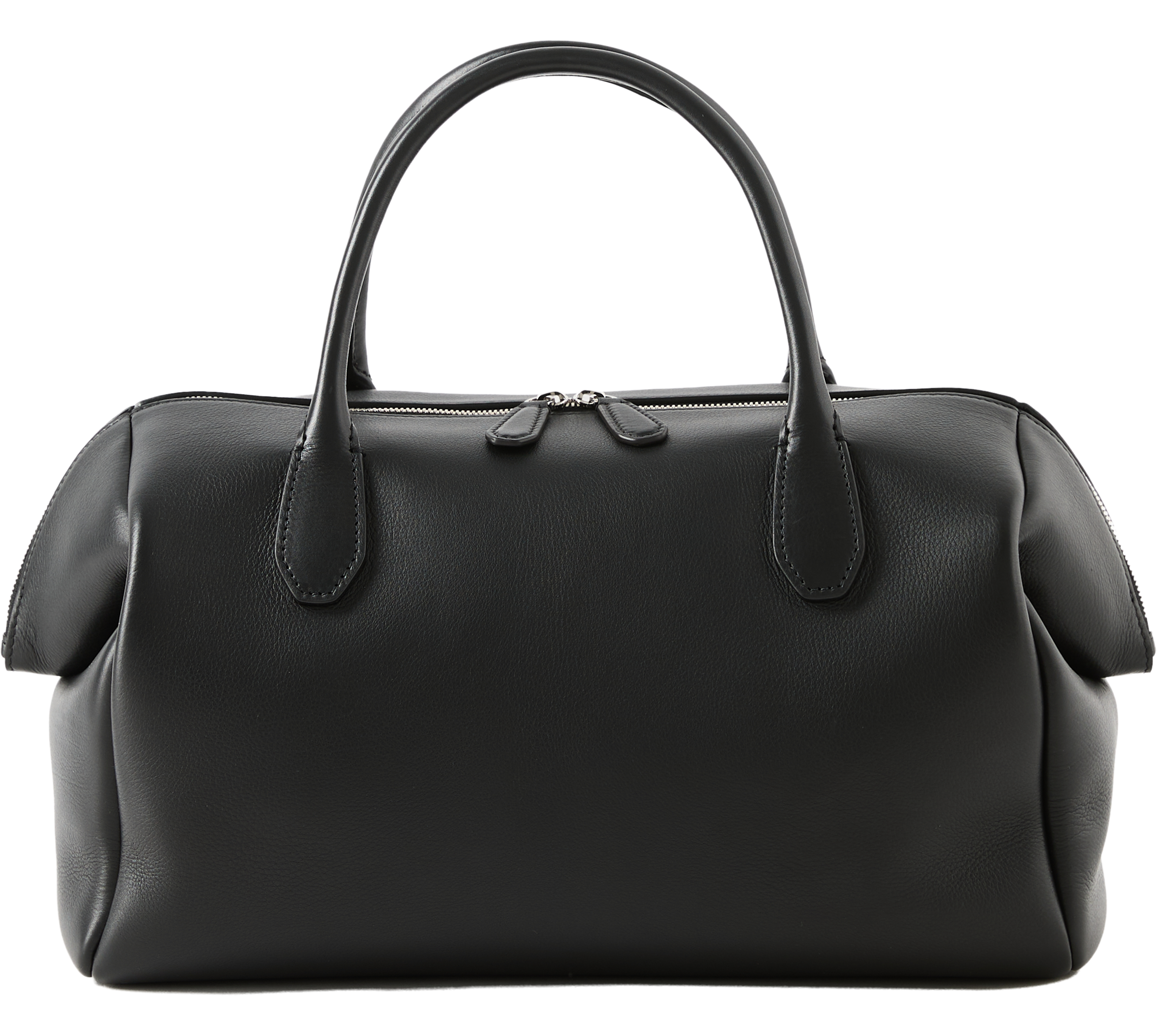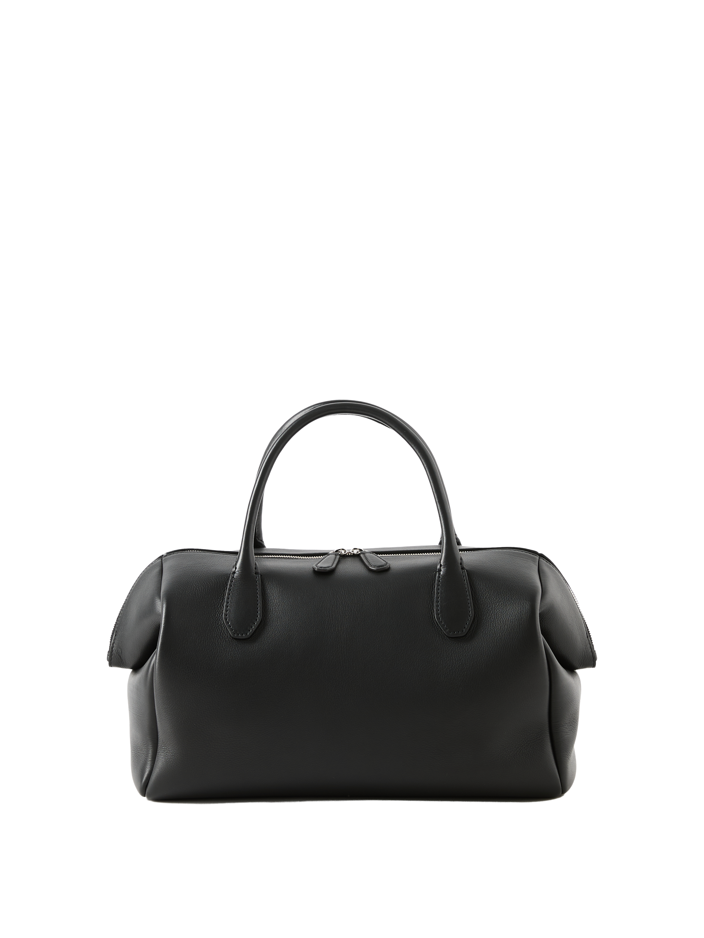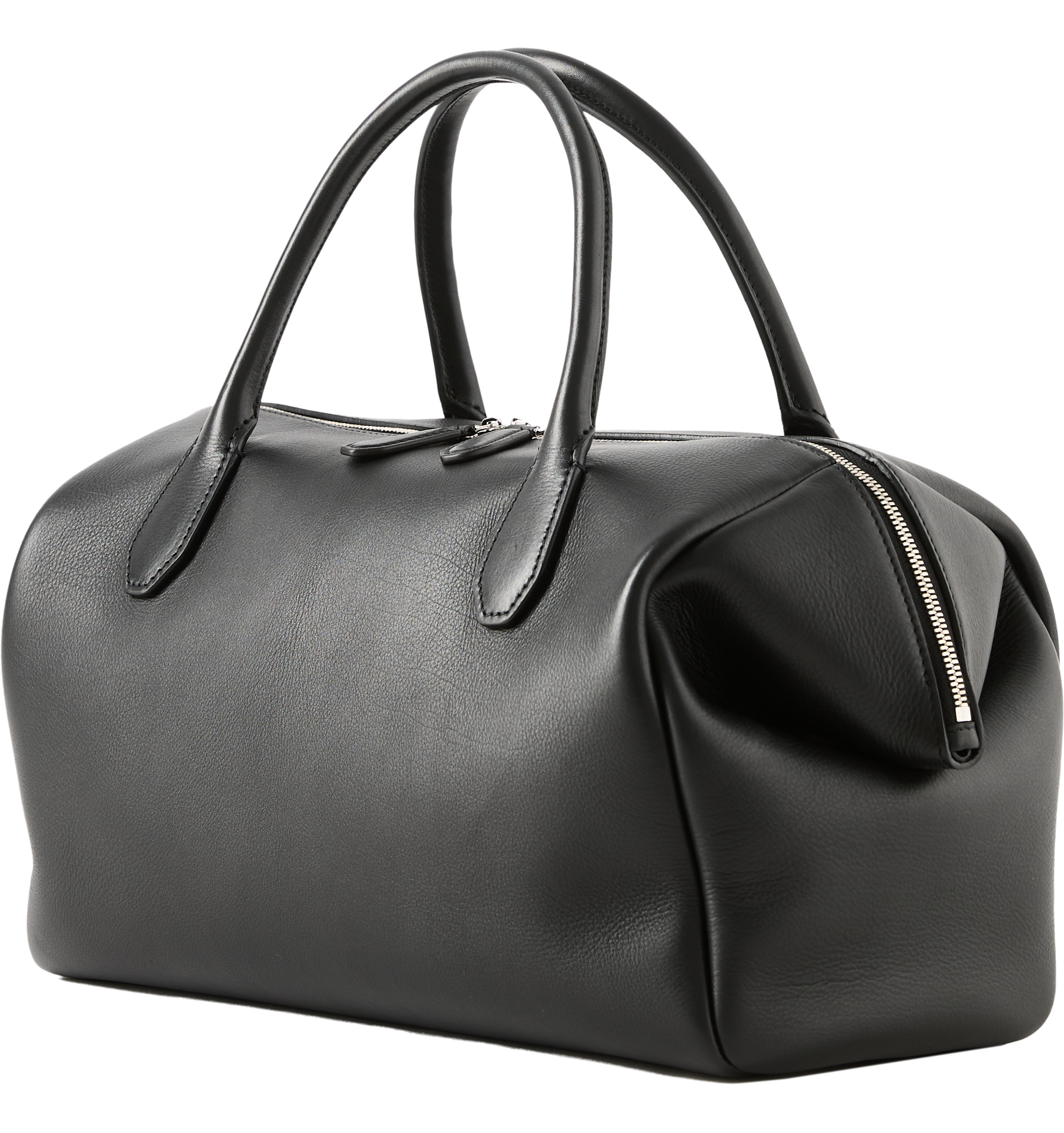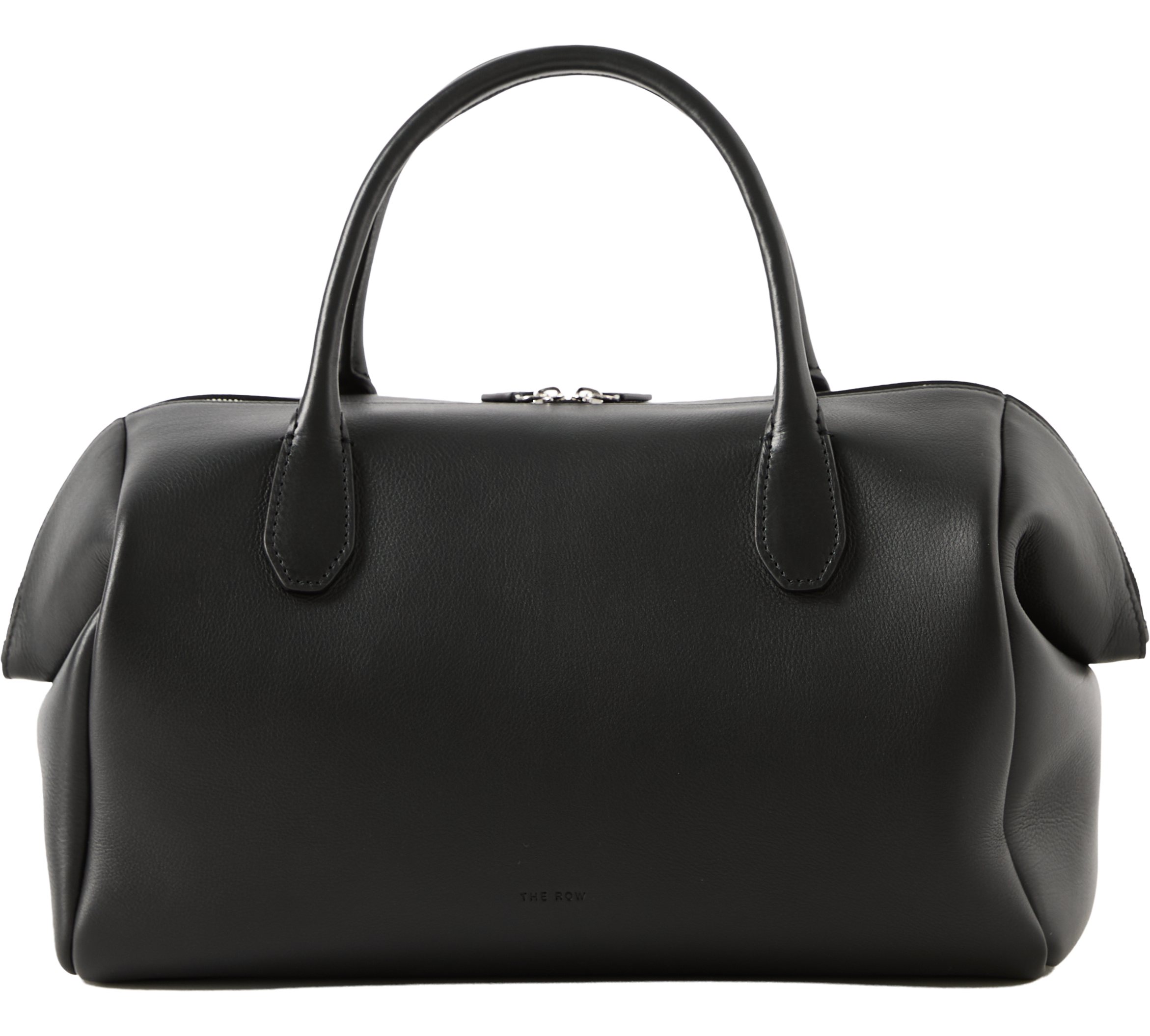 Die Handtasche 'Faye' in Schwarz von The Row wurde aus fein genarbtem Kalbsleder gefertigt und besticht durch die Bowlingtaschenform. Die umgeschlagenen Kanten, die röhrenförmigen Tragegriffe sowie der flache Boden verleihen dem Modell charakteristisch Details. Das Leder zeichnet sich durch seine butterweiche Haptik und den dezenten Glanz aus und sorgt so für ein edles Finish.