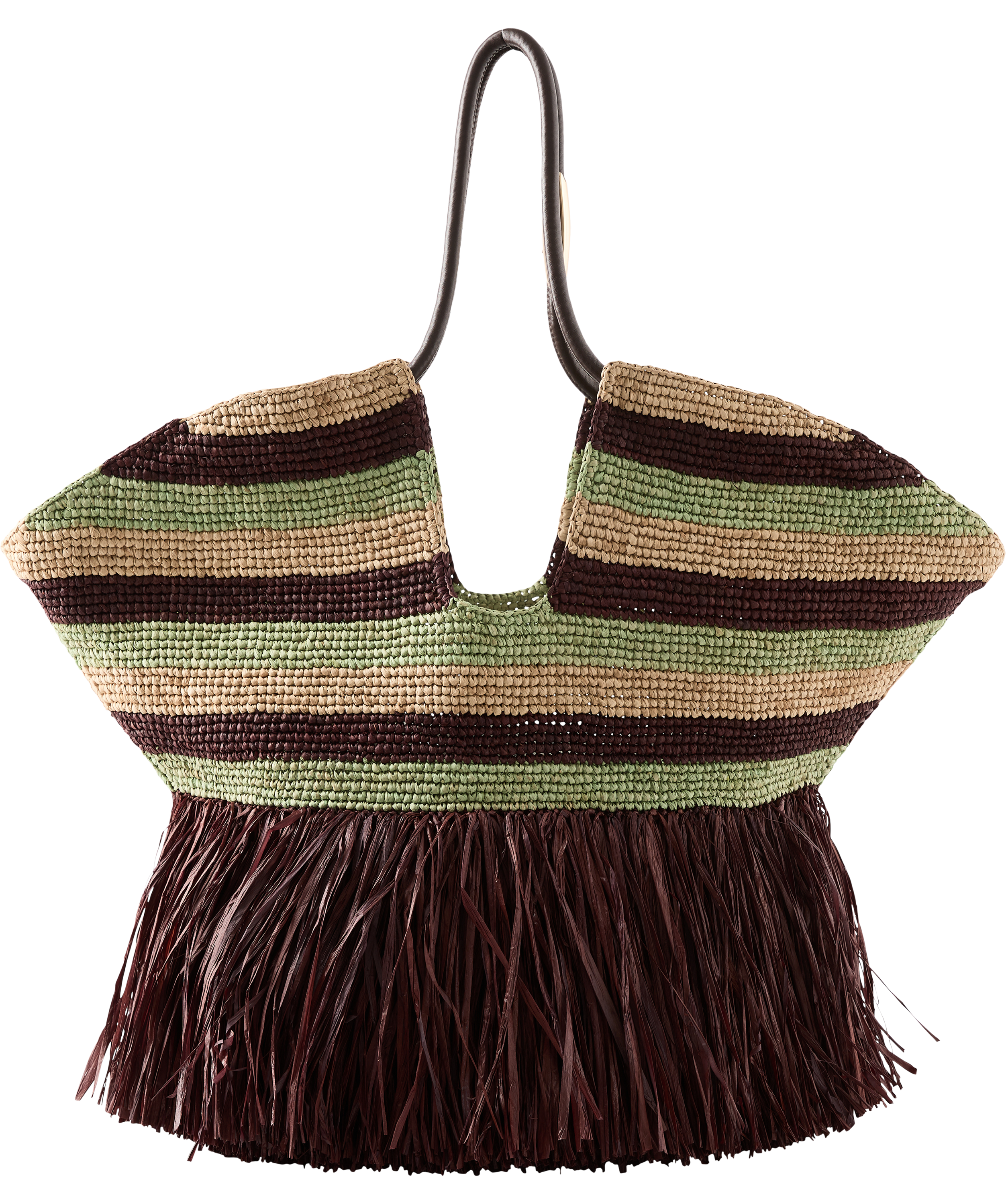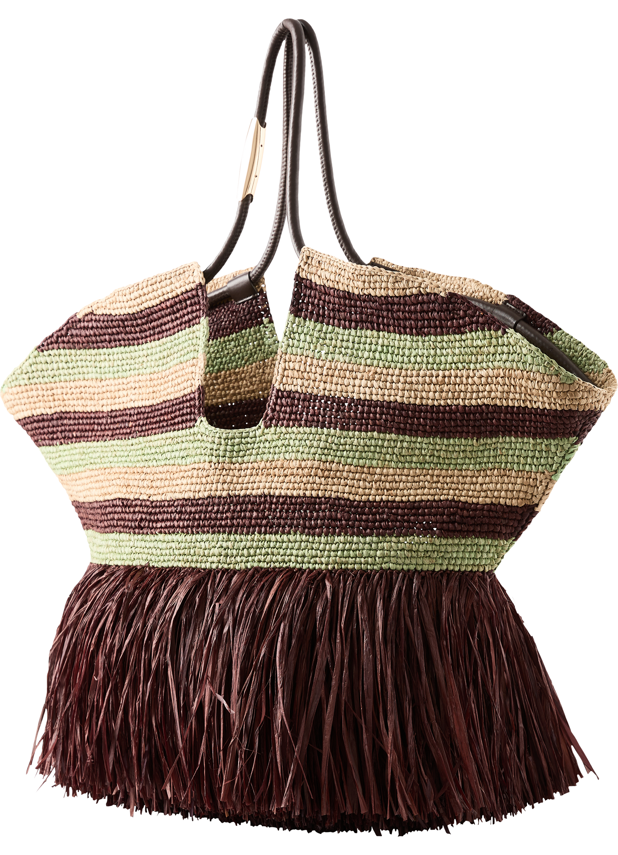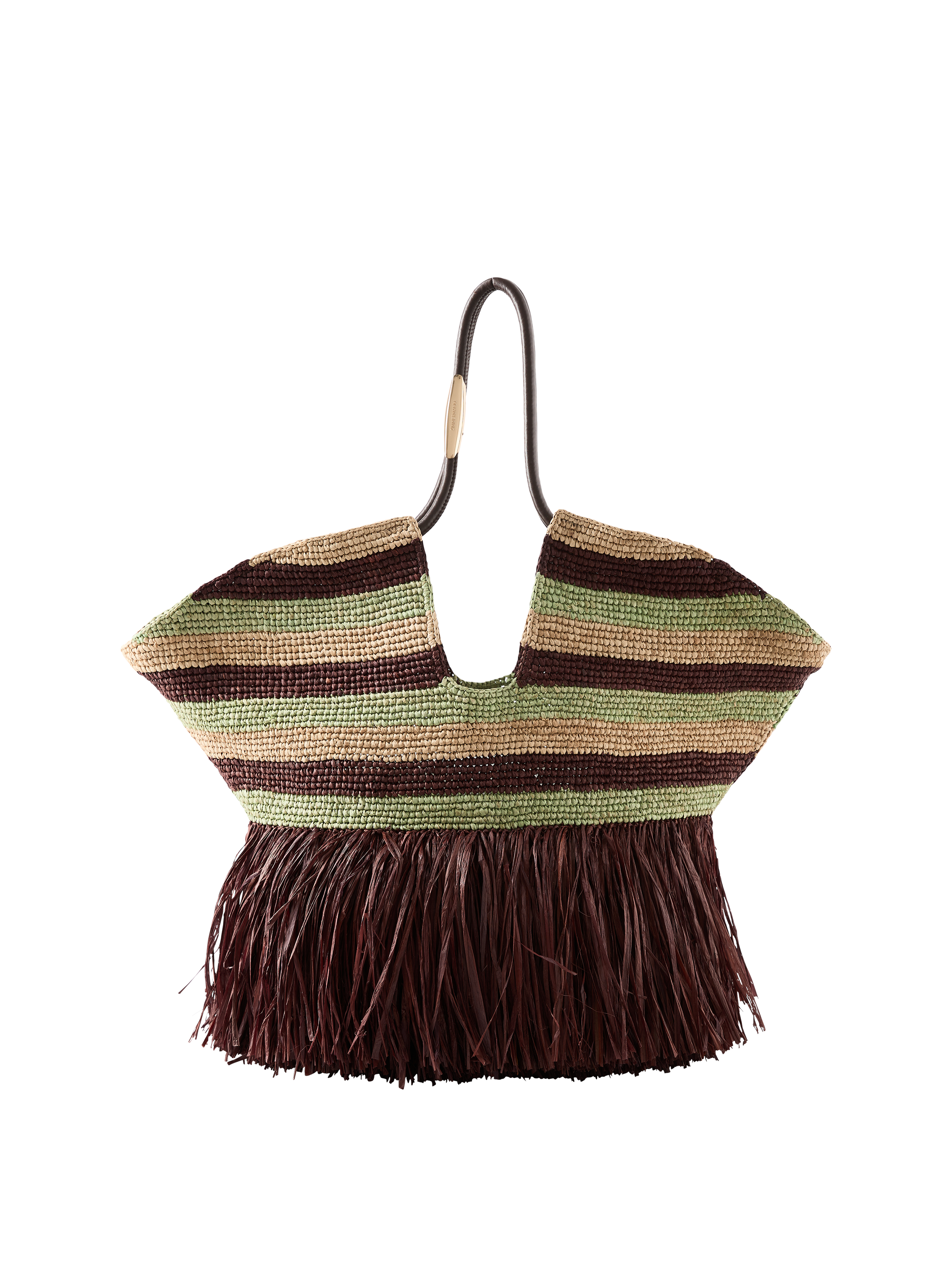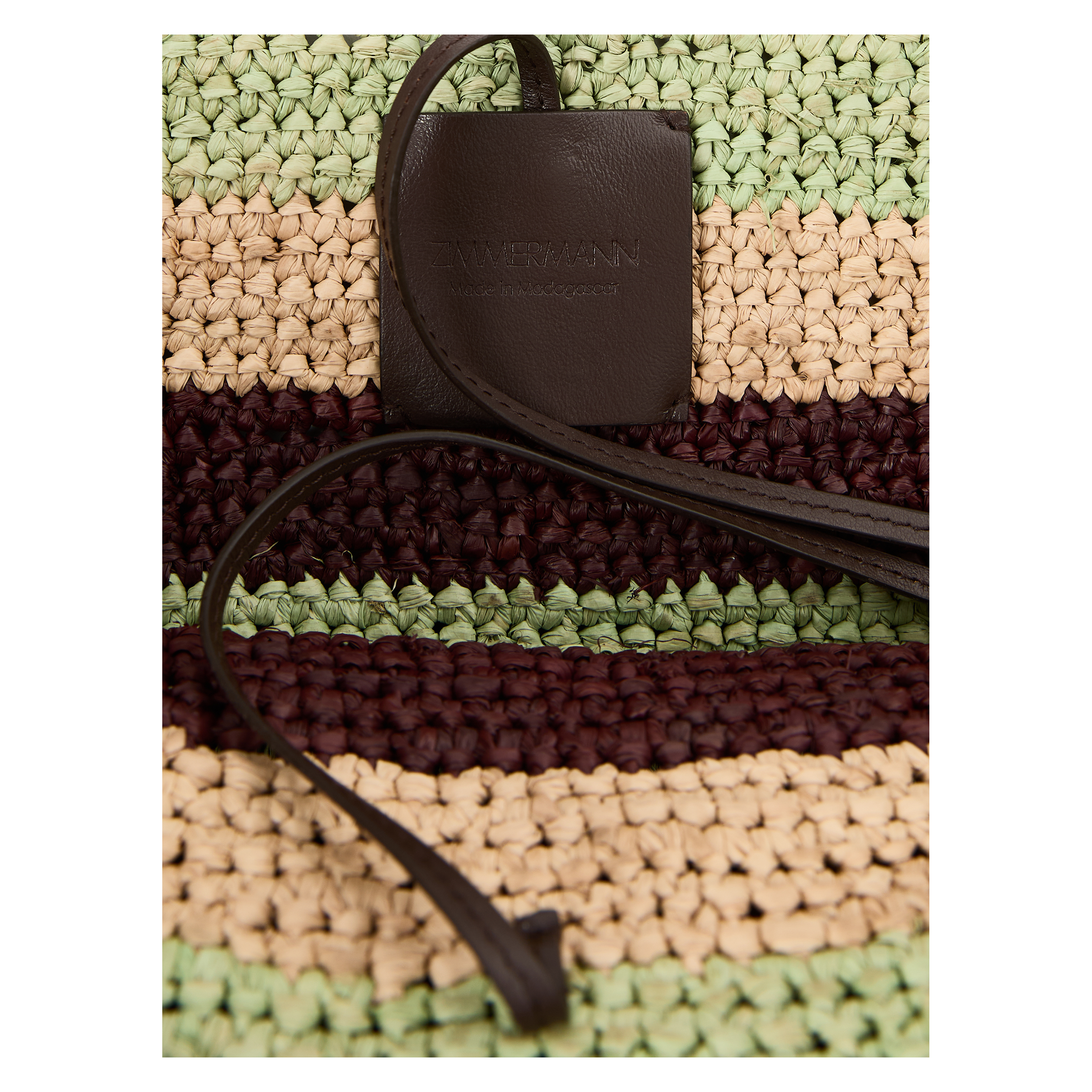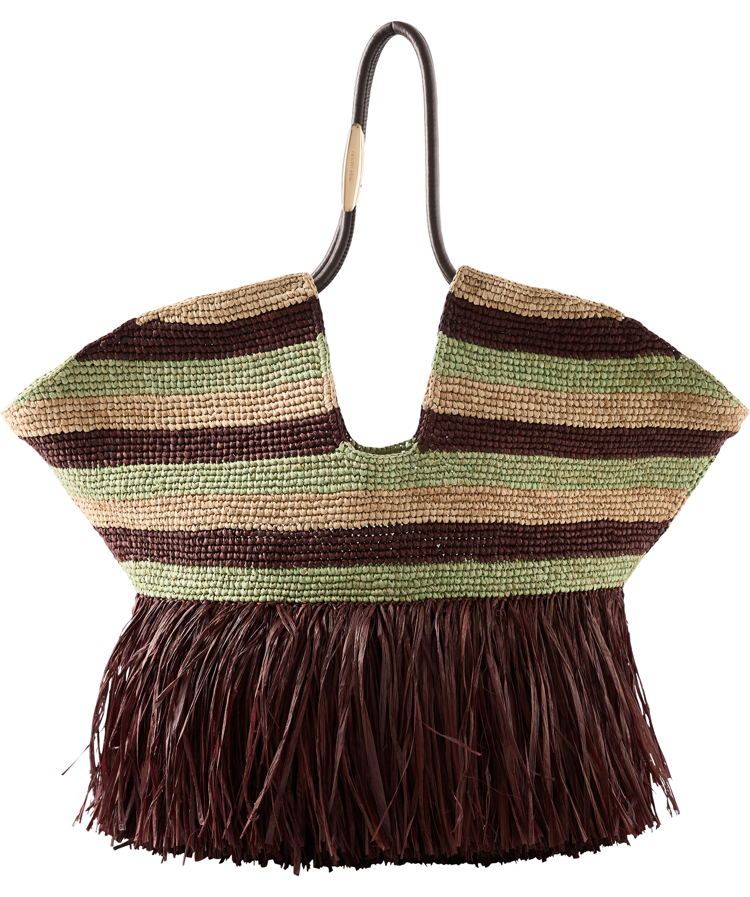 Die Handtasche 'Goldentime' von Zimmermann in Multi wurde aus Raffia gefertigt und besticht durch die Fransen-Details. Zwei Lederbänder zum Verschließen, röhrenförmige Lederhenkel sowie goldfarbene Beschläge setzen elegante Akzente.