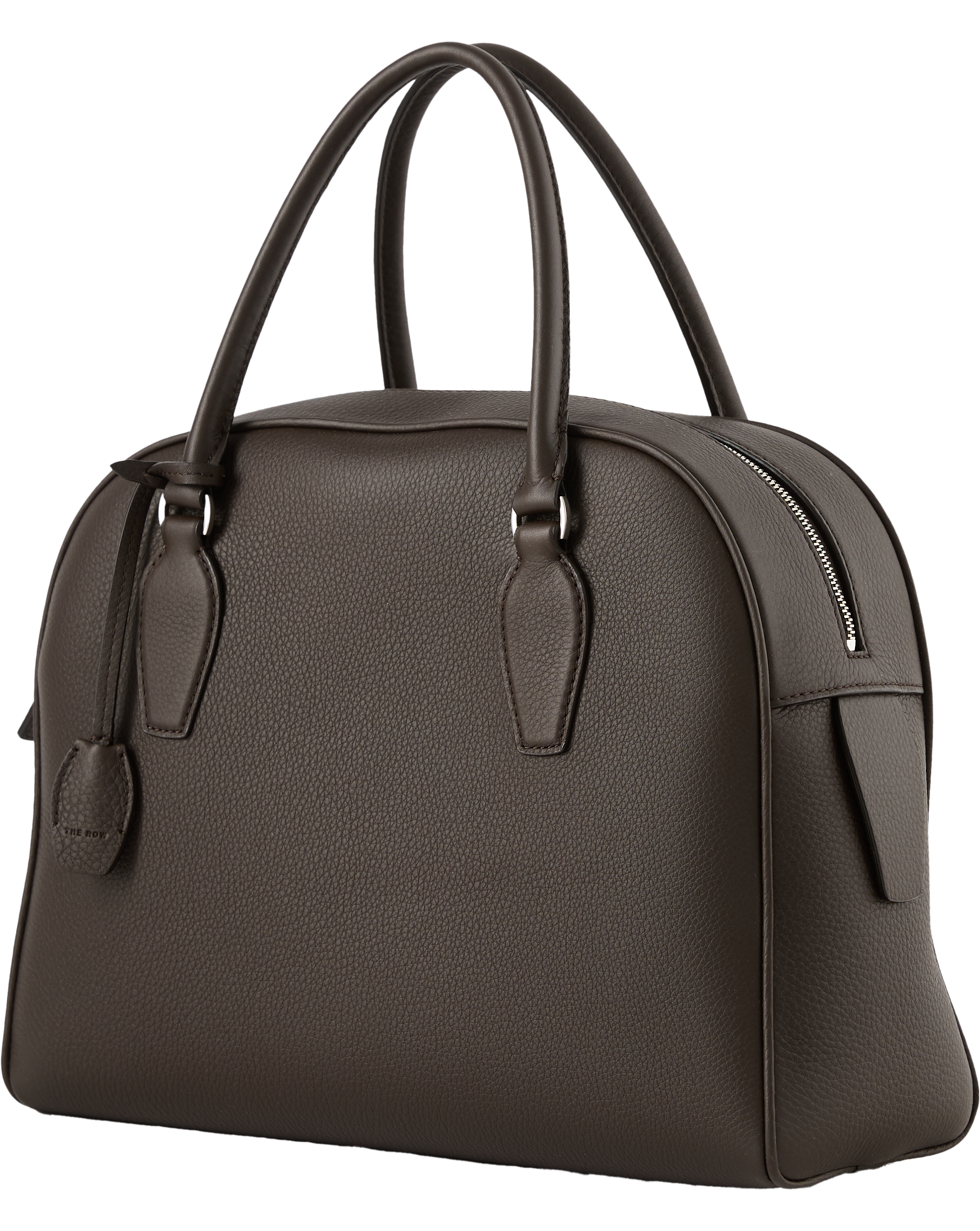 Die Handtasche 'India 12.00' in Dunkelbraun von The Row wurde aus genarbtem Kalbsleder gefertigt und besticht durch das Bowlingdesign. Das Modell wird durch die zwei länglichen Tragegriffe, dem seitlichen Vorhängeschloss und die tonalen Absteppungen perfektioniert. Einen harmonischen Schluss schafft das geräumige Innenfach, welches ausreichend Stauraum für alles bietet, was im Alltag benötigt wird.