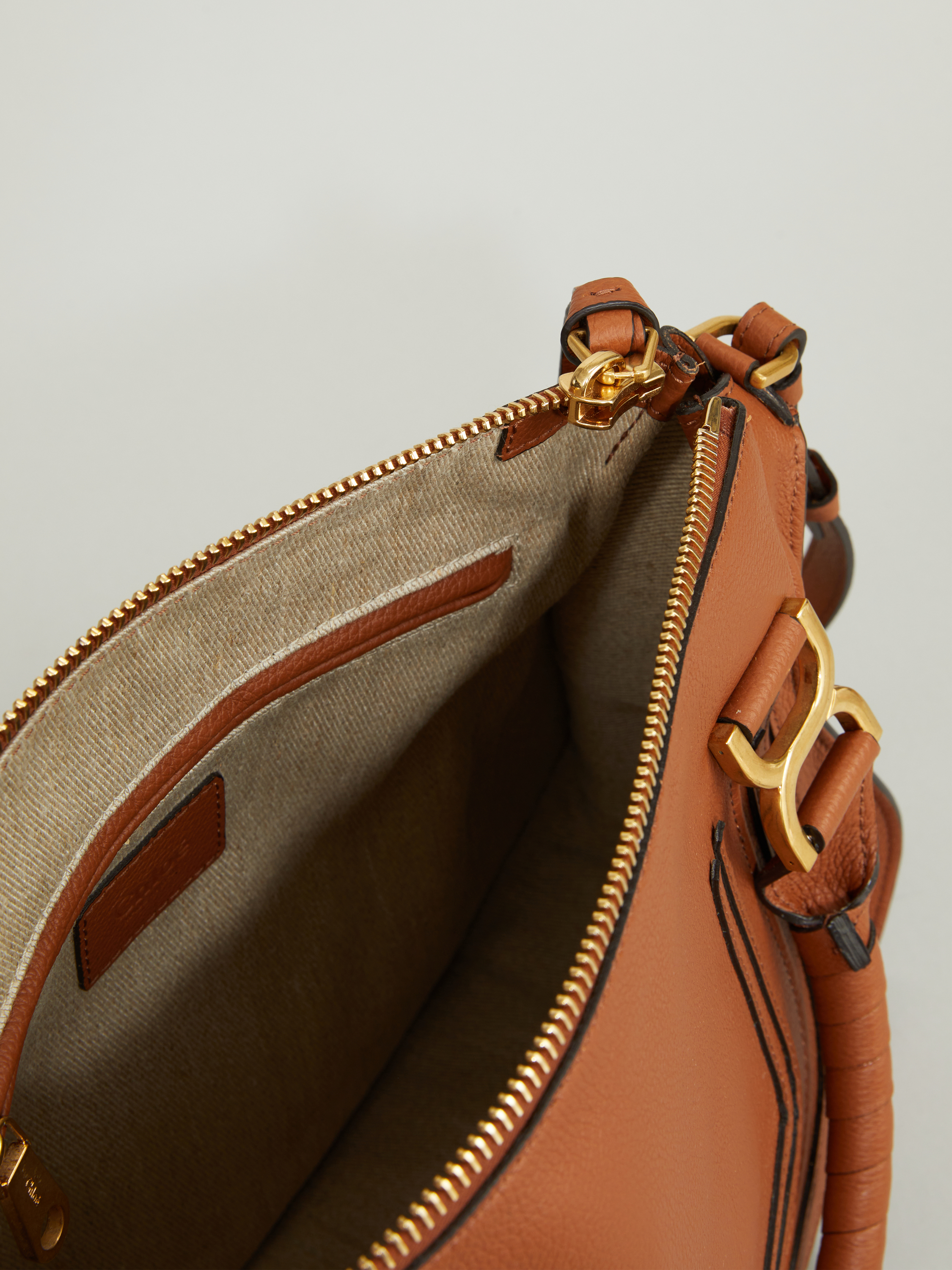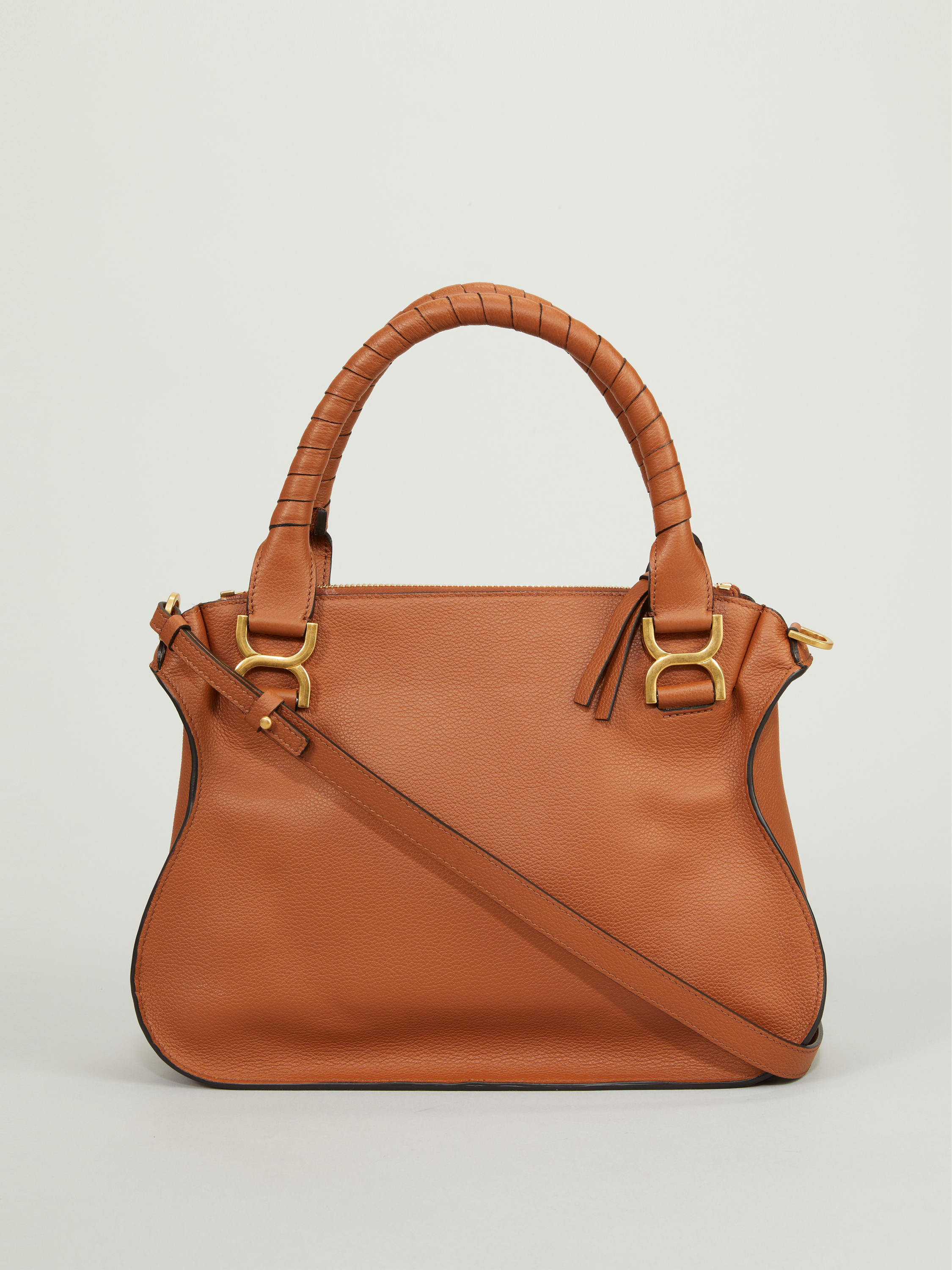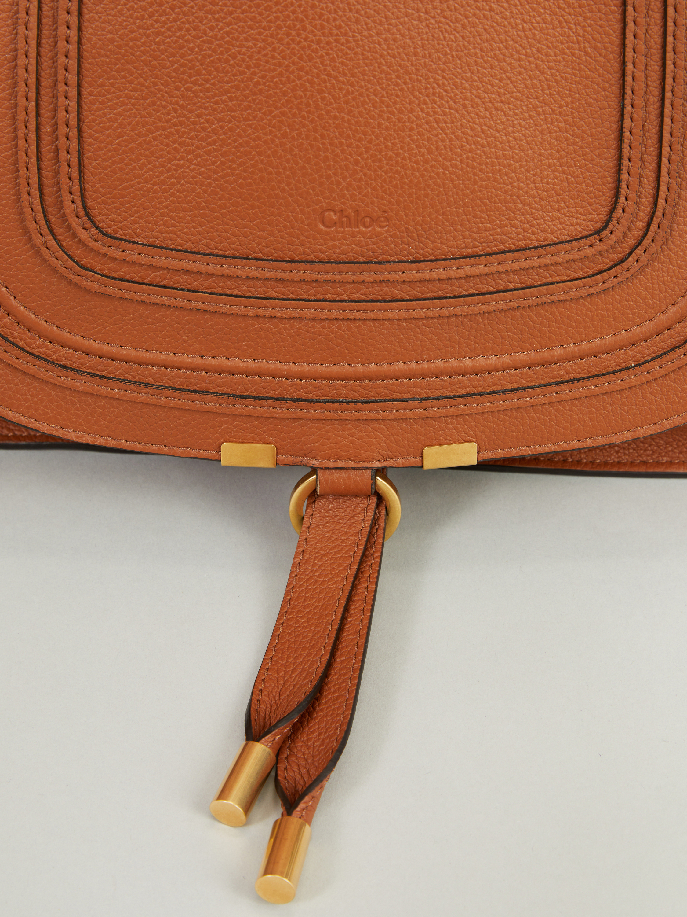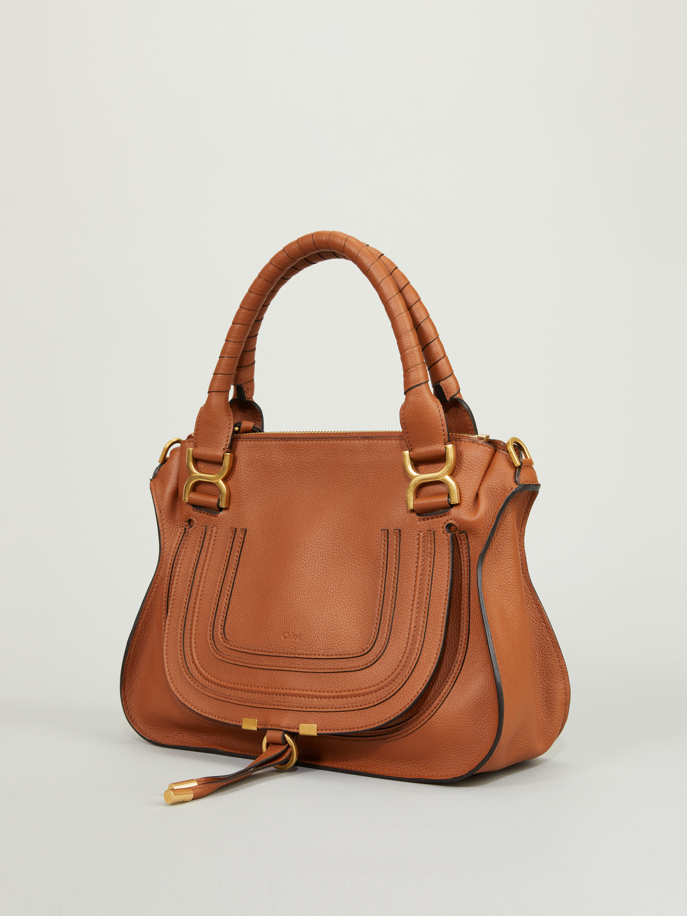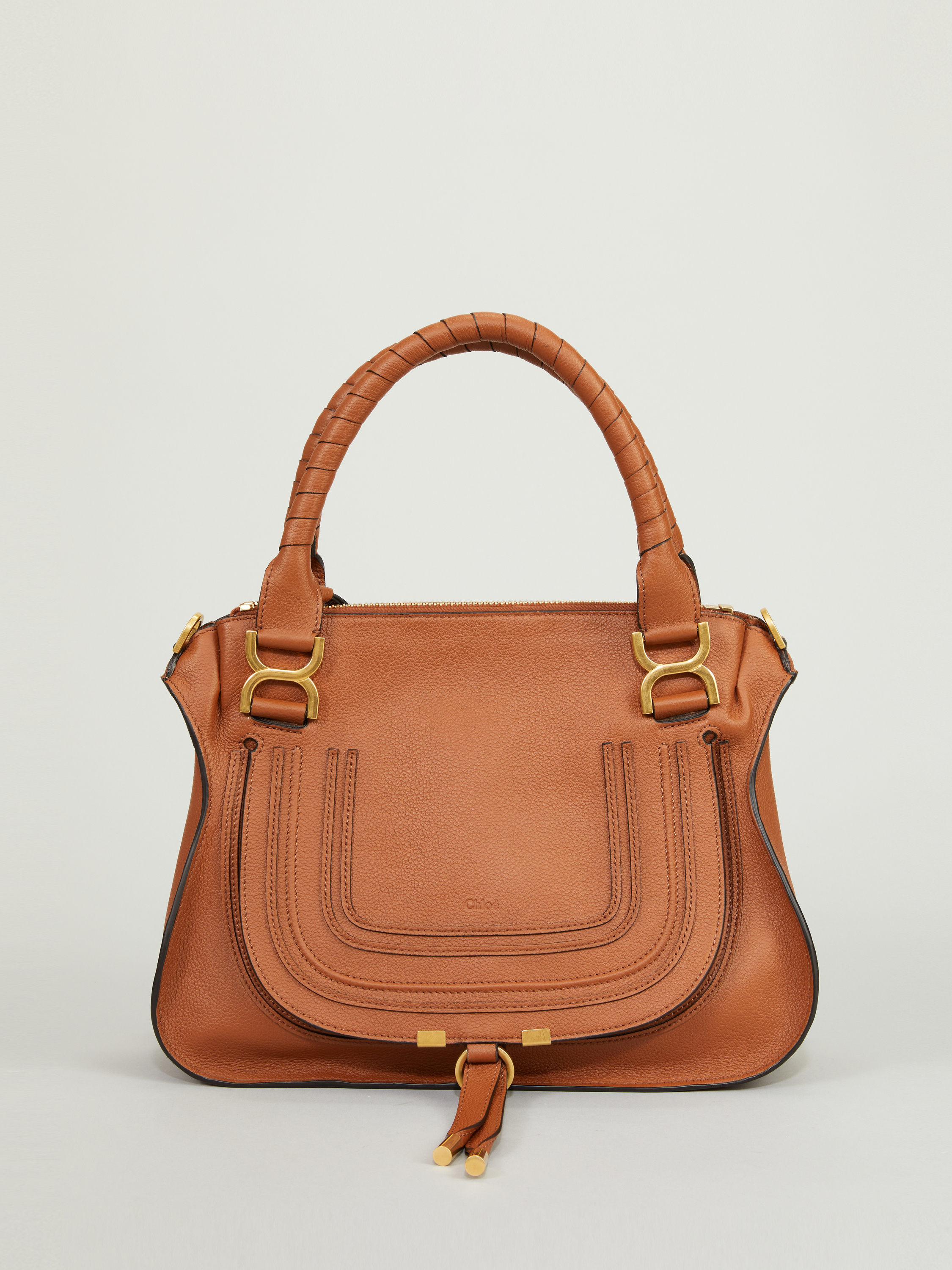 Die Handtasche 'Marcie Medium' von Chloé in Tan wurde aus genarbtem Kalbsleder gefertigt und mit goldener Hardware abgerundet. Der Griff bietet die Tragevariante in der Hand oder über der Schulter. Das geräumige Fach sowie zahlreiche Innenfächer bieten Stauraum für alles, was man im Alltag braucht. Das schlichte Design macht die Tasche zu einem sportlich-eleganten Klassiker.