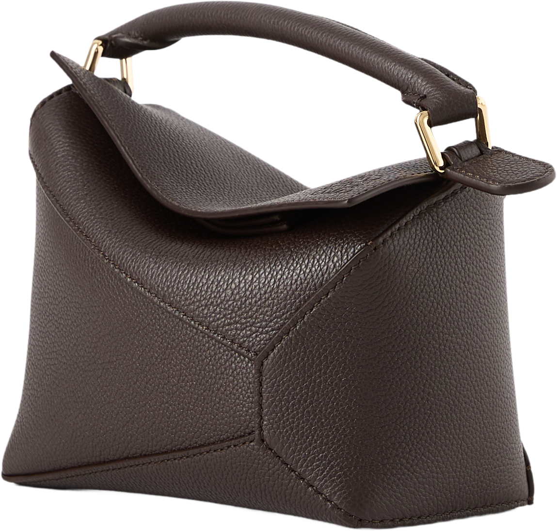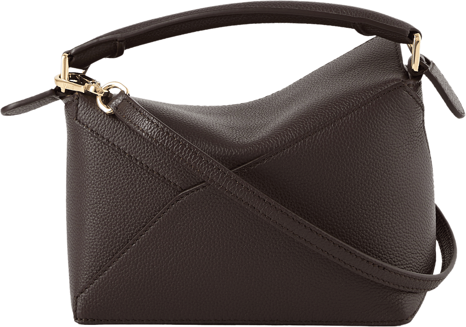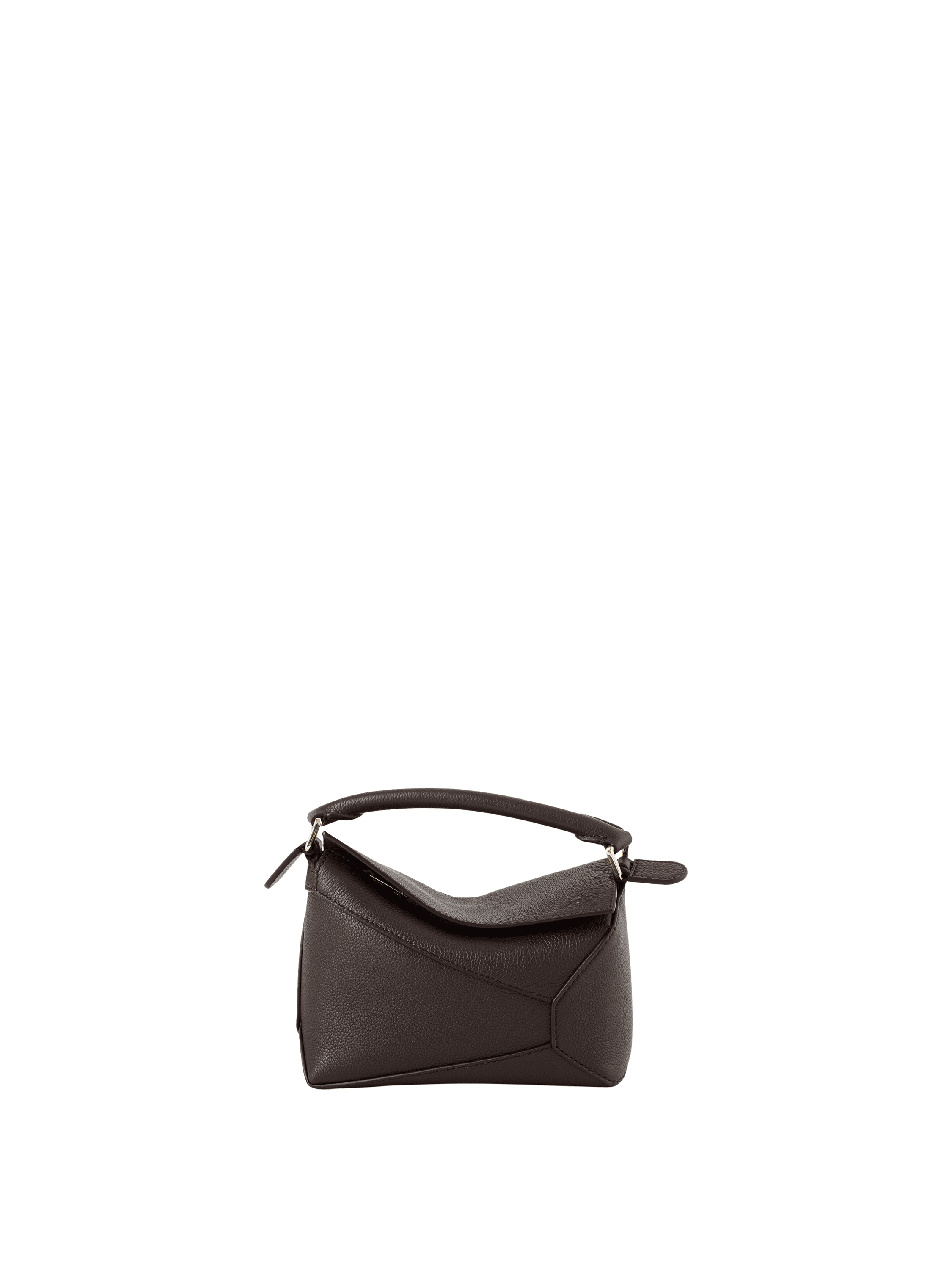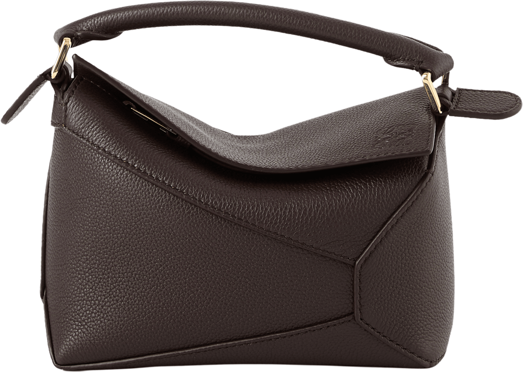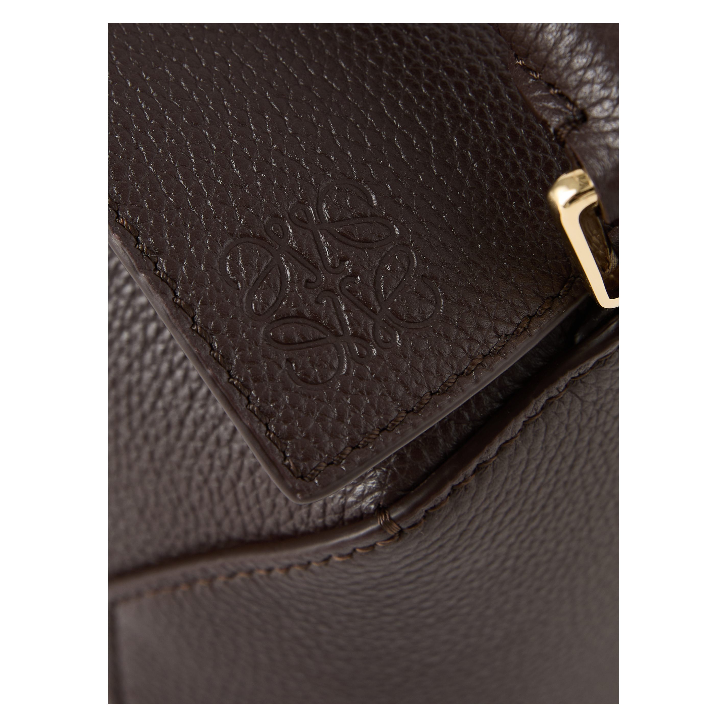 Die Handtasche 'Puzzle Edge Mini' von LOEWE in Dark Brownie wurde aus weichem, genarbtem Kalbsleder gefertigt und mit goldfarbener Hardware abgerundet. Das Taschenmodell vereint zeitgenössisches Design mit traditioneller Handwerkskunst. Der Name deutet auf die geometrischen Einsätze hin. Die handgefertigte Tasche bietet Ihnen aufgrund der verschiedenen langen Henkeln unterschiedliche Trage-Optionen.