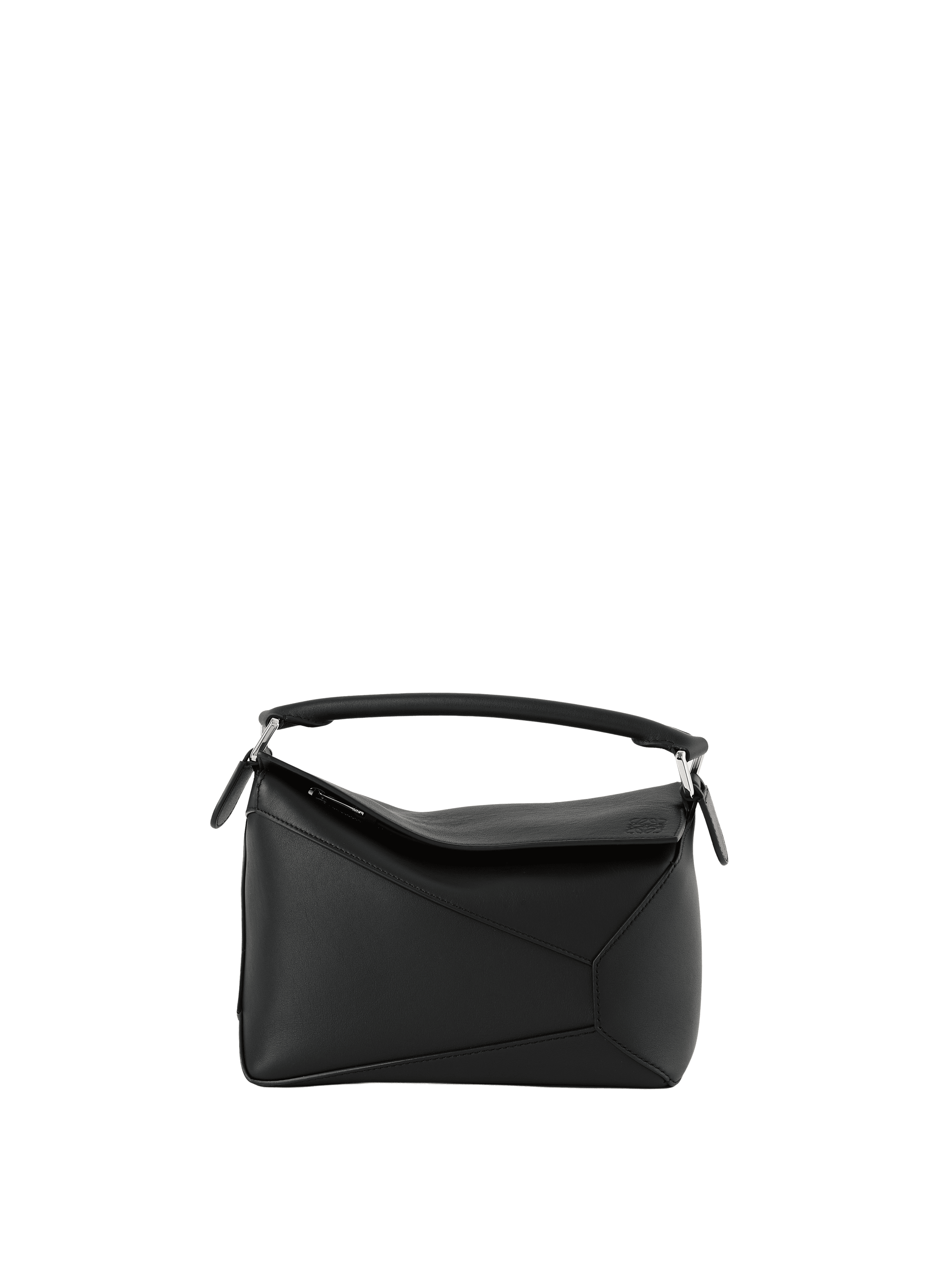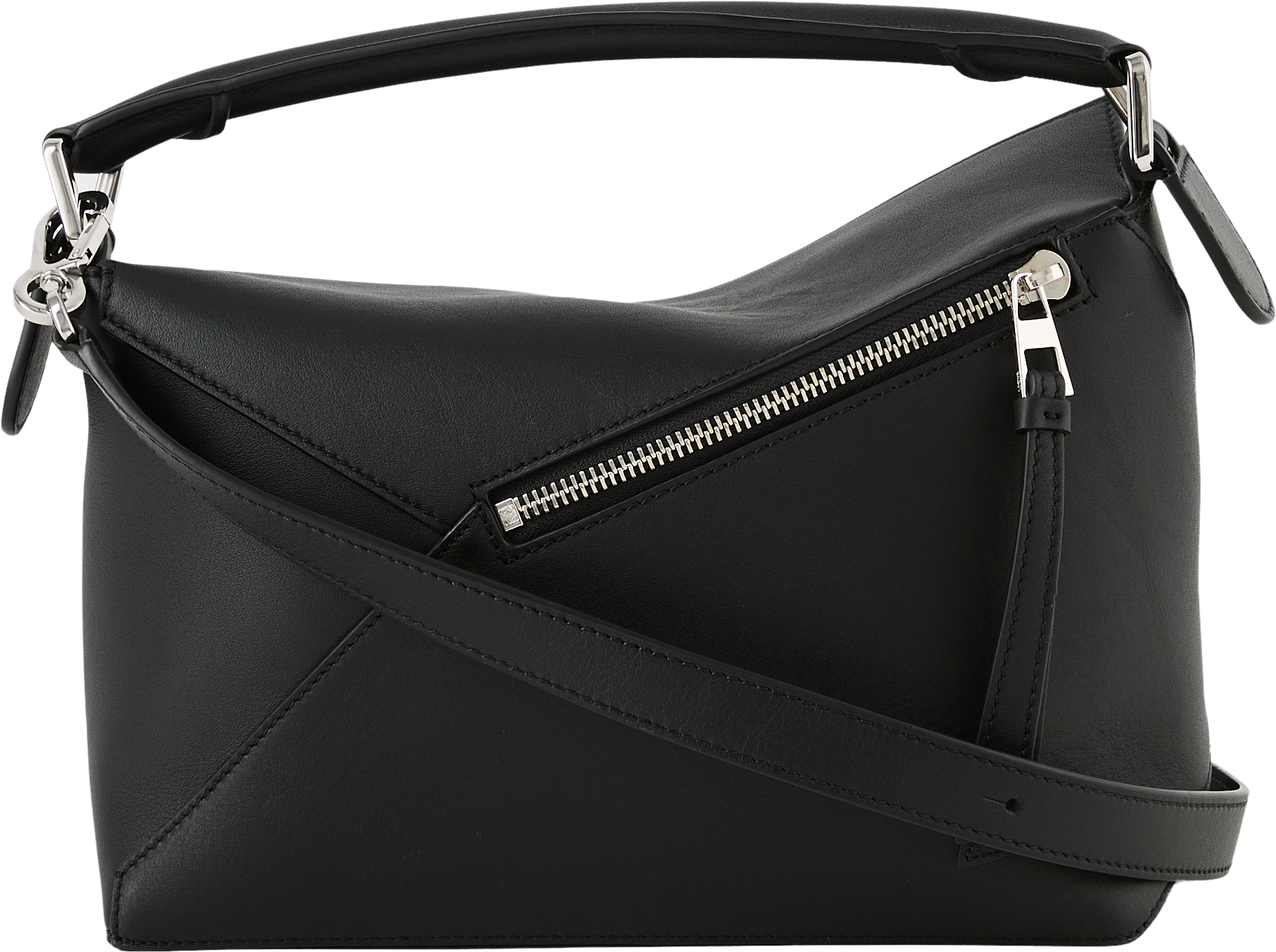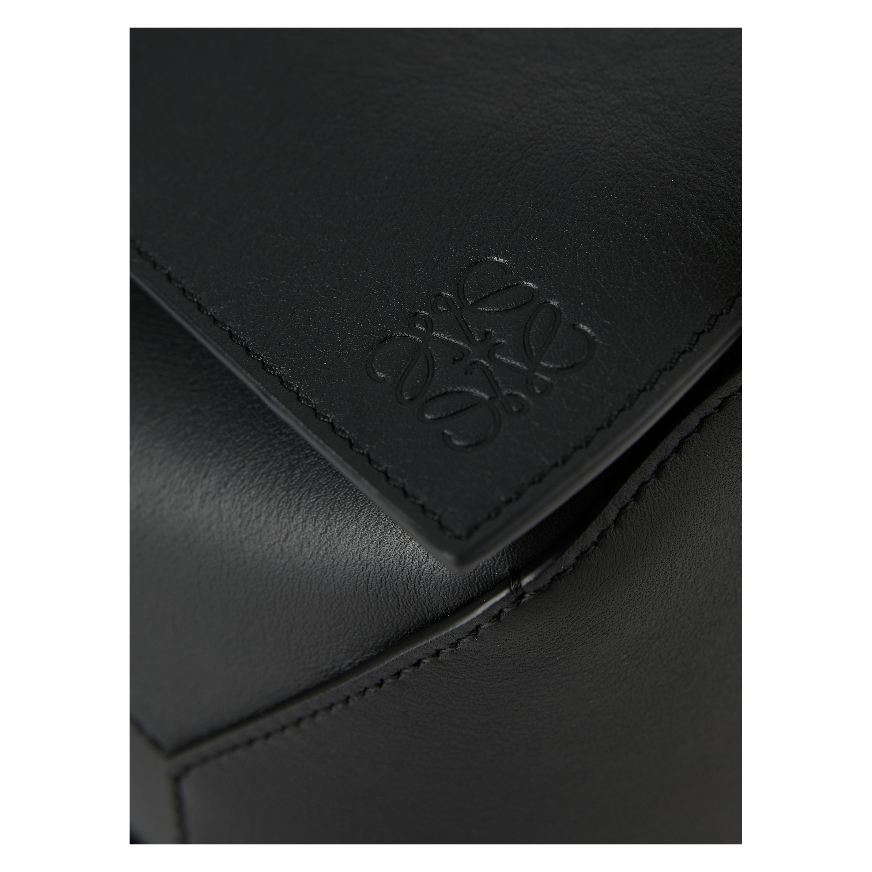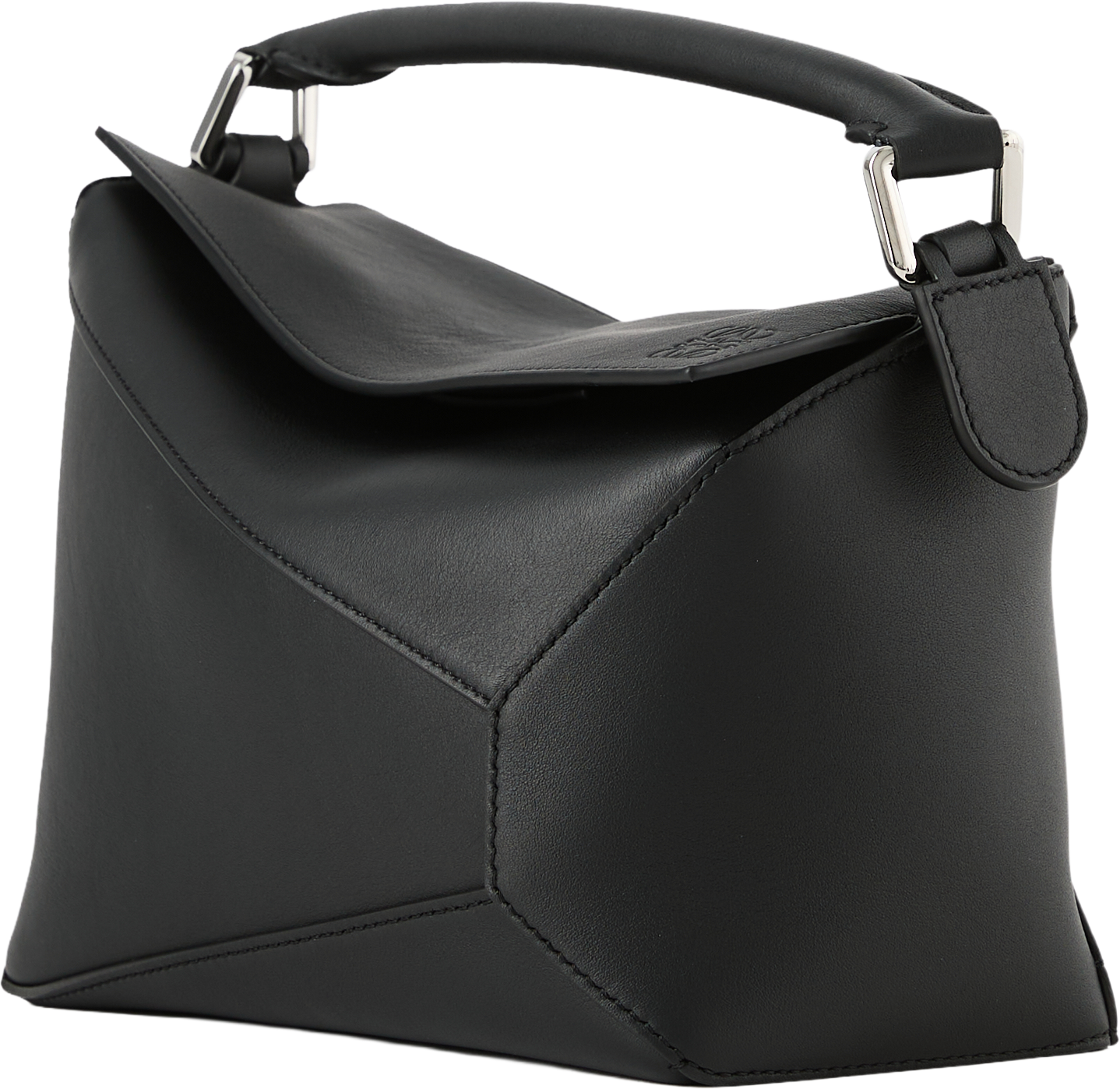 Die Handtasche 'Puzzle Edge Small' in Schwarz von LOEWE wurde aus Kalbsleder gefertigt und mit silberfarbener Hardware abgerundet. Zeitgenössisches Design gepaart mit traditioneller Handwerkskunst werden bei dem Puzzle Modell von LOEWE vereint. Der Name deutet auf die geometrischen Einsätze der Tasche hin. Dieses handgefertigte Design bietet Ihnen aufgrund der verschiedenen Längen der Henkel diverse Trage-Optionen.