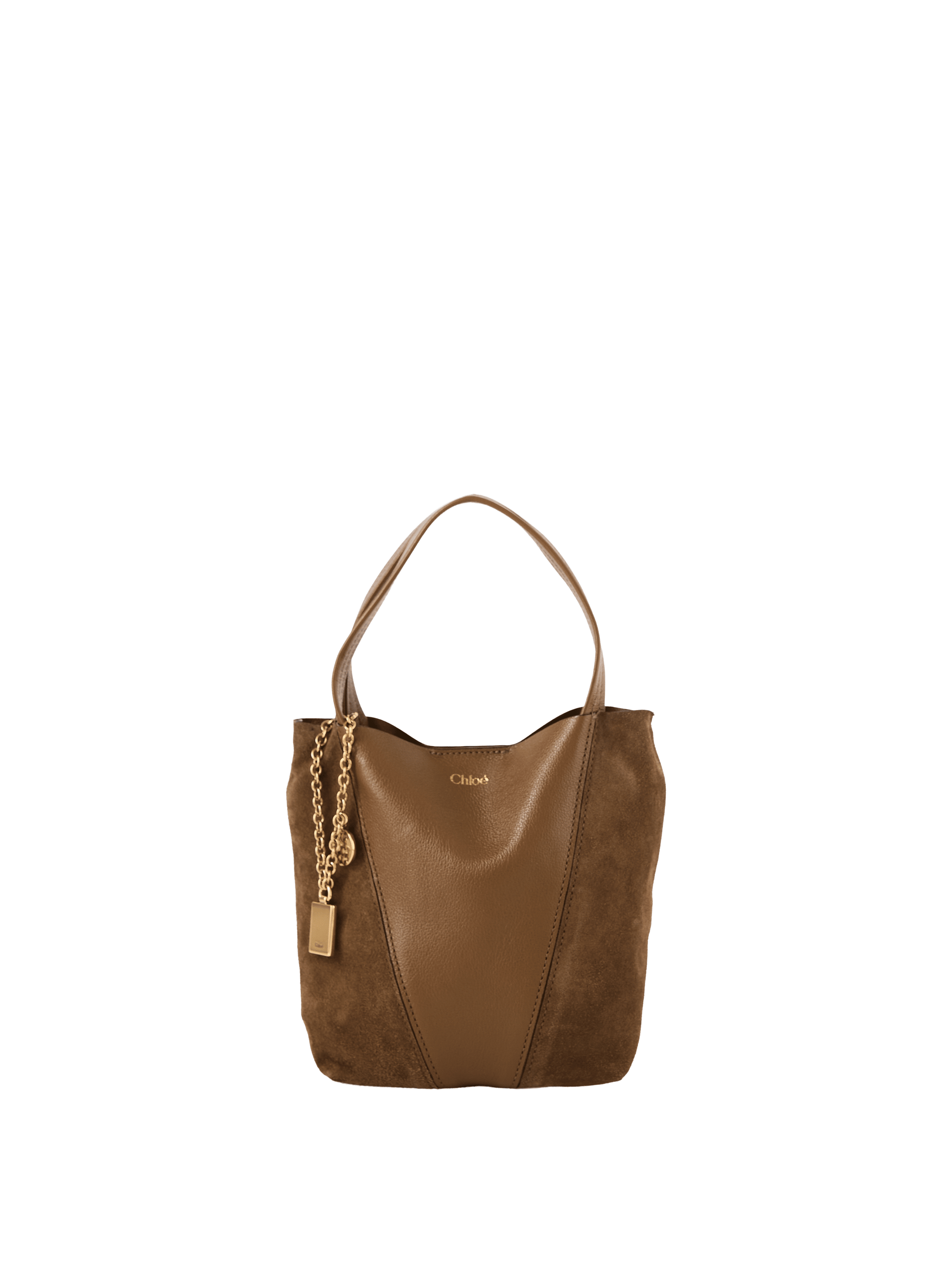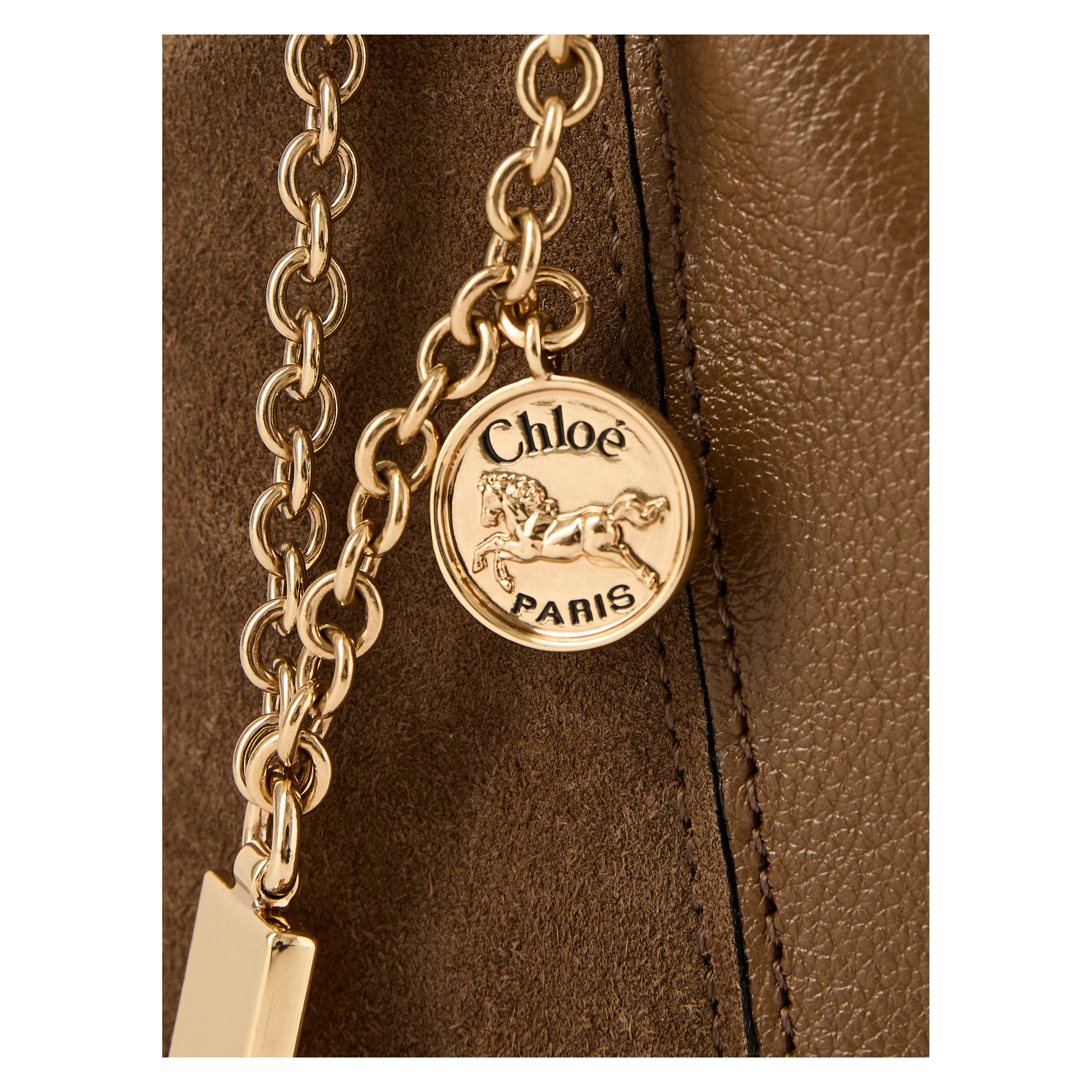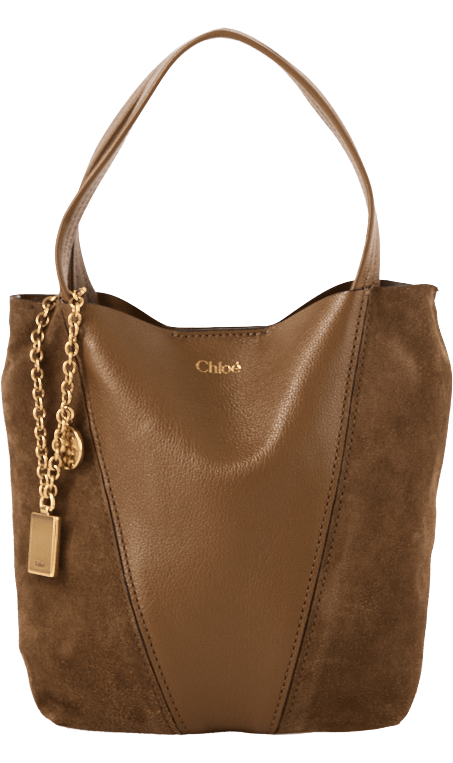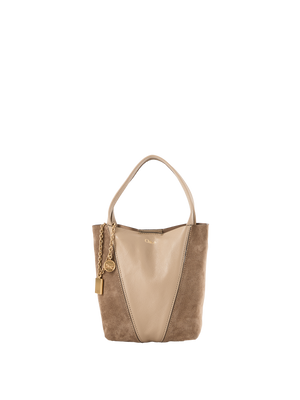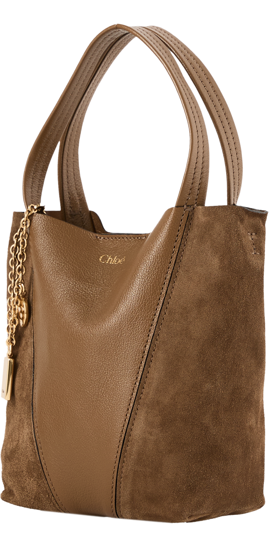 Die Handtasche 'Spin Tote' in Dark Khaki von Chloé wurde aus genarbtem Büffelleder und Kalbswildleder gefertigt und besticht durch die minimalistische Silhouette mit grafischen Linien. Die goldfarbene Hardware und die charakteristischen Chloé- und Horse Medals verleihen dem Modell seine klassische Eleganz. Tragen Sie die Tasche über der Schulter, diagonal über dem Körper oder schieben Sie die Griffe durch den Ring, um sie in der Hand oder am Handgelenk zu tragen.