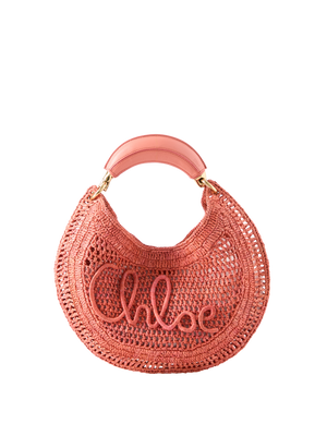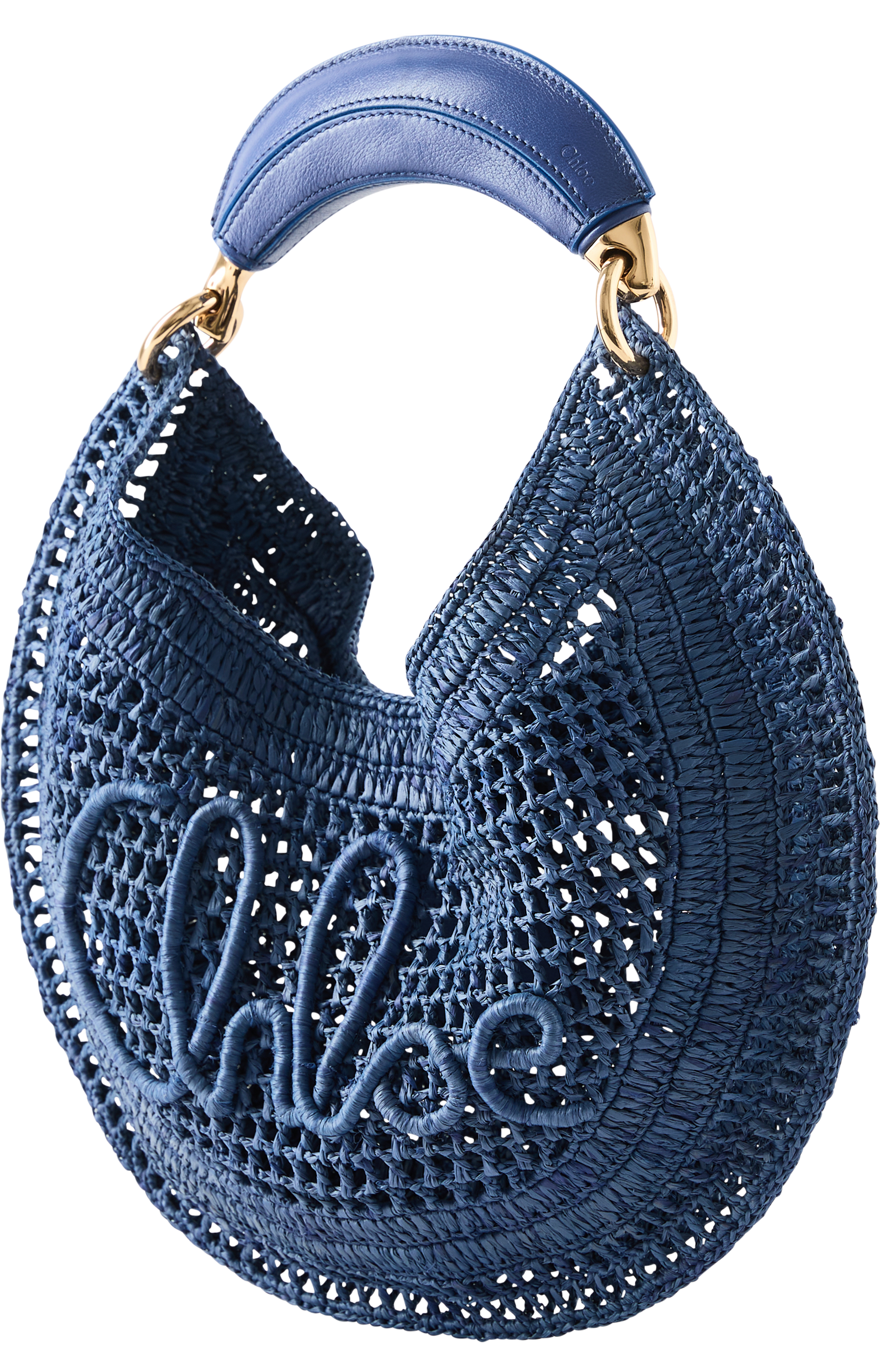 Die Schultertasche 'Summer Banana' in Evening Blue von Chloé wurde aus von Hand gehäkelten Fasern und Büffelleder gefertigt und besticht durch die geschwungene Silhouette. Der bananenförmige Henkel und der Schriftzug im Stil der Designtradition von Chloé runden das Modell elegant ab.