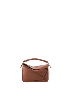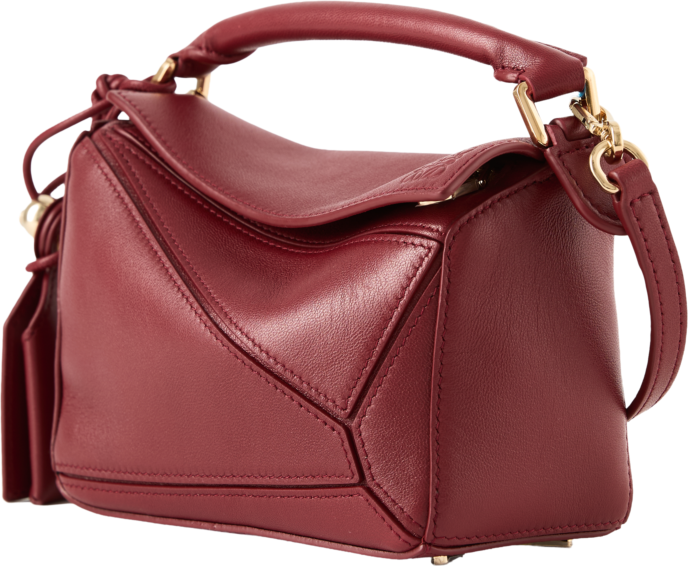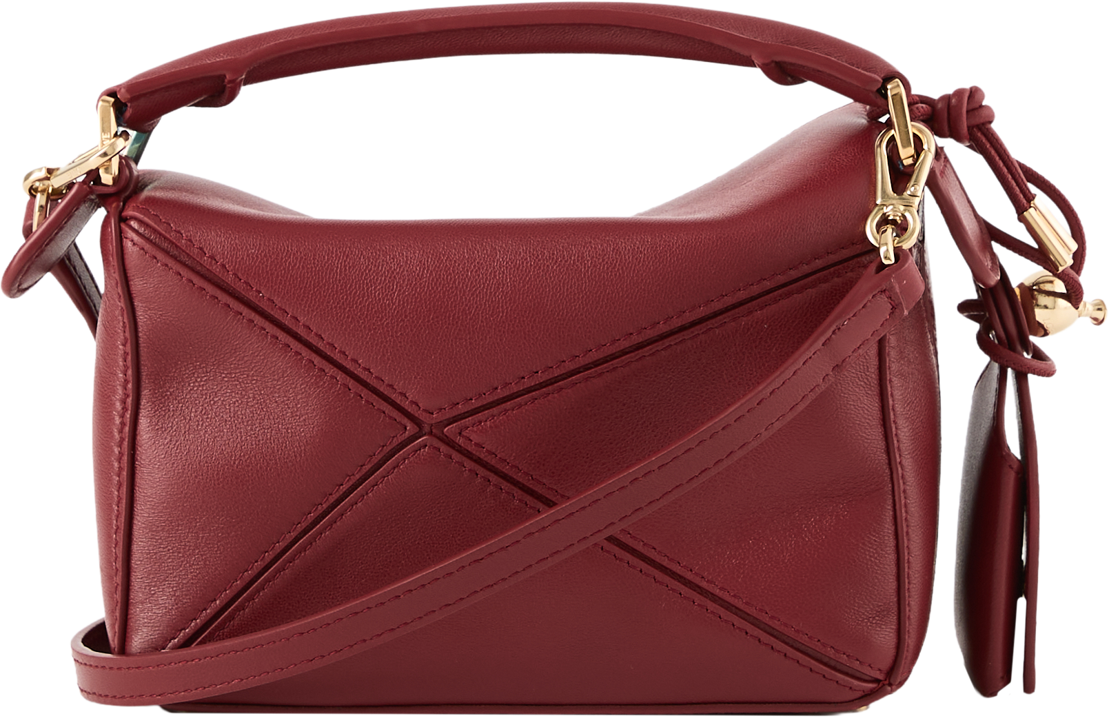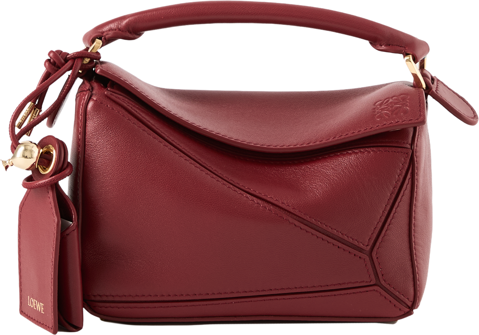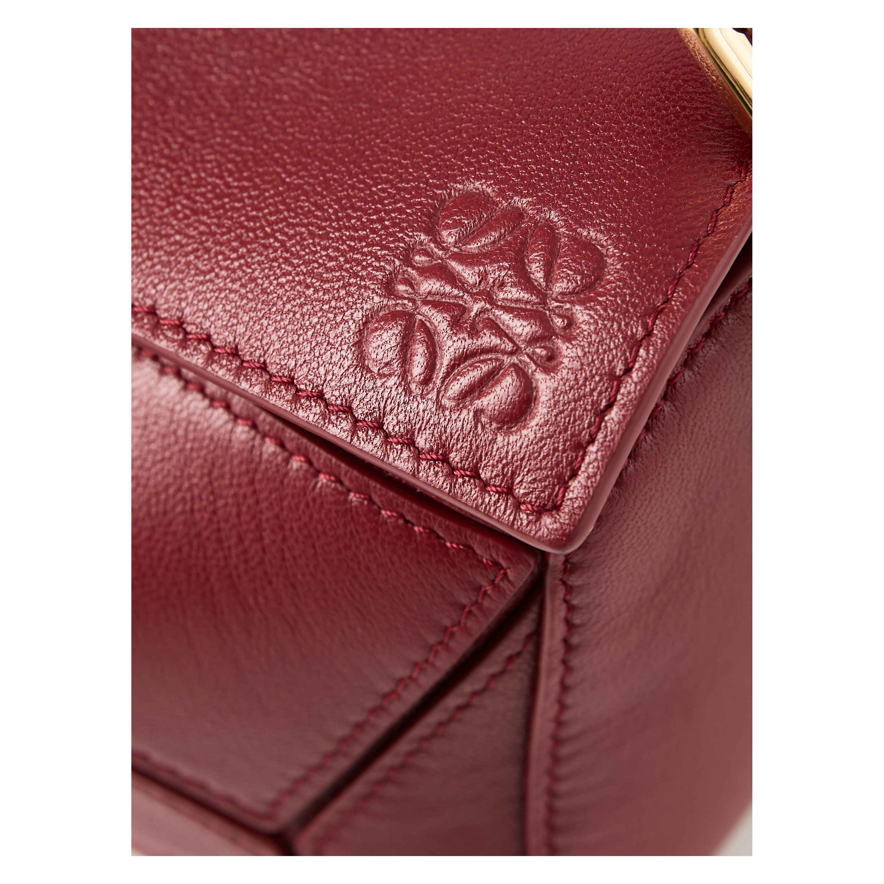 Die Handtasche 'Puzzle Featherlight Mini‘ in Burnt Red von LOEWE wurde aus federleichtem Nappa-Lammleder gefertigt und mit goldfarbener Hardware abgerundet. Der abnehmbare und verstellbare Riemen mit drehbaren Dogclips, der Reißverschluss mit Zugband sowie das geprägte Anagram zeichnen das Design aus.