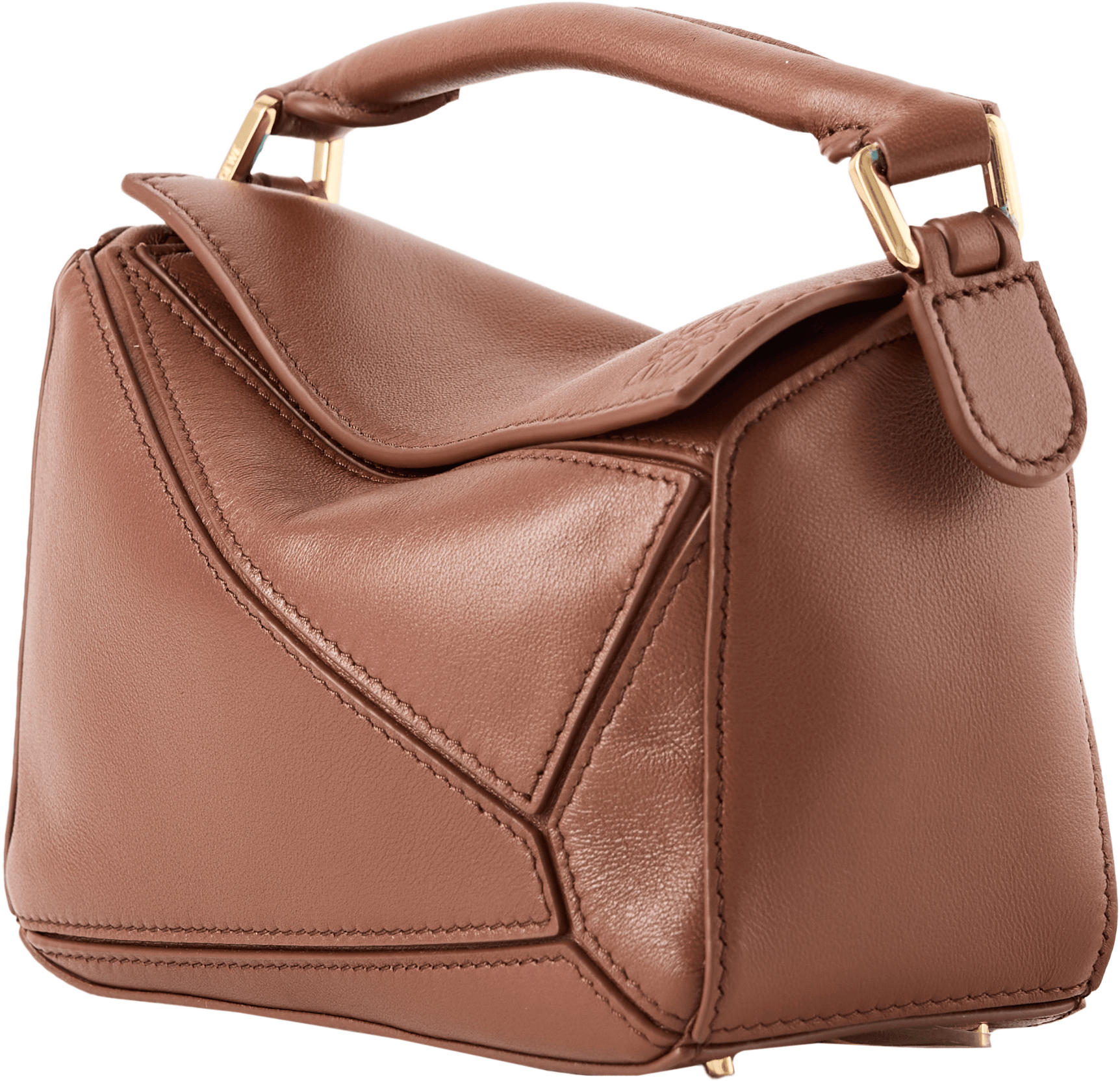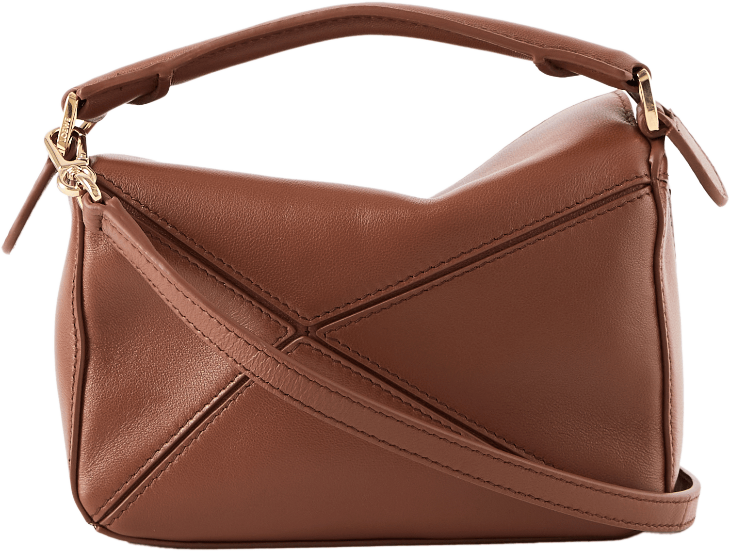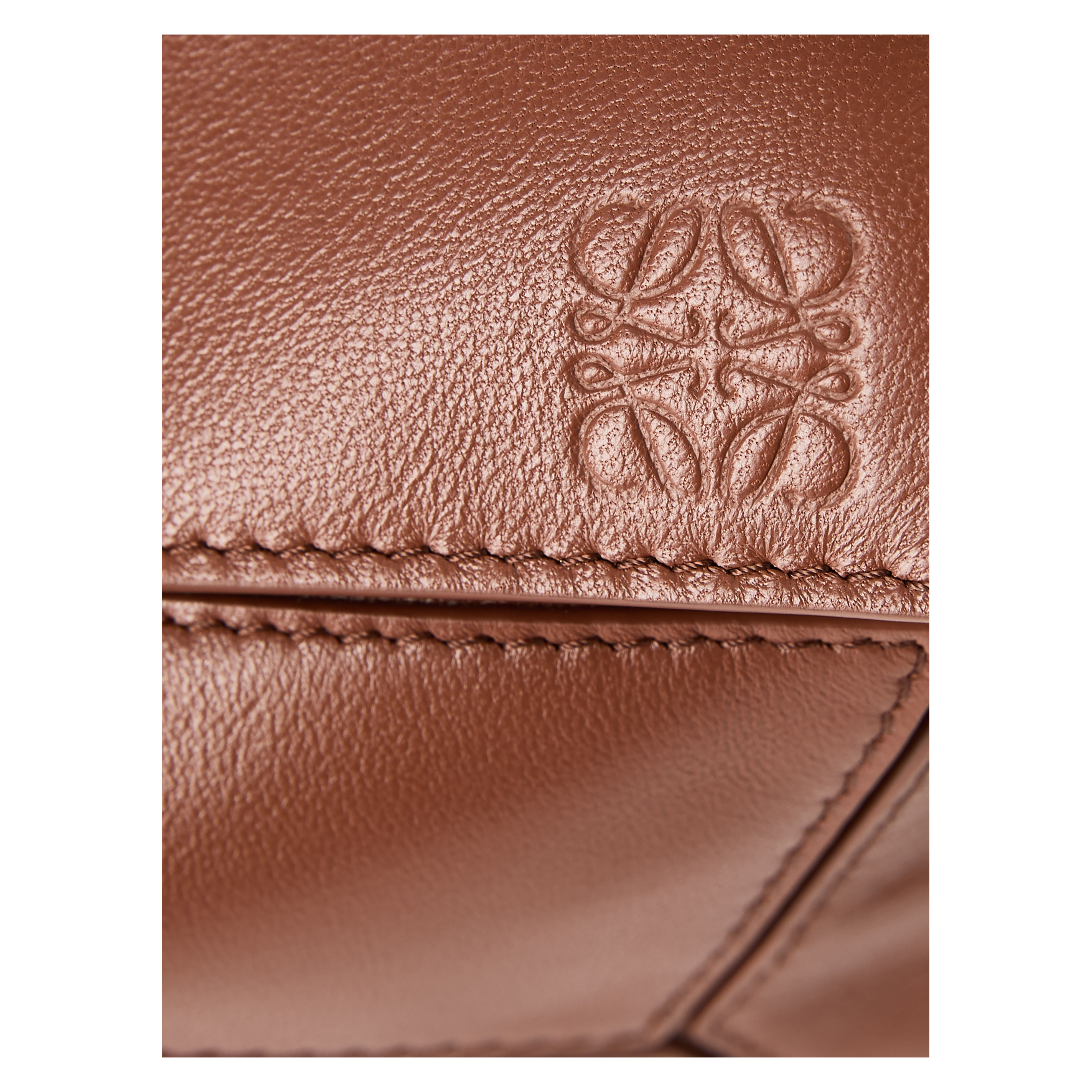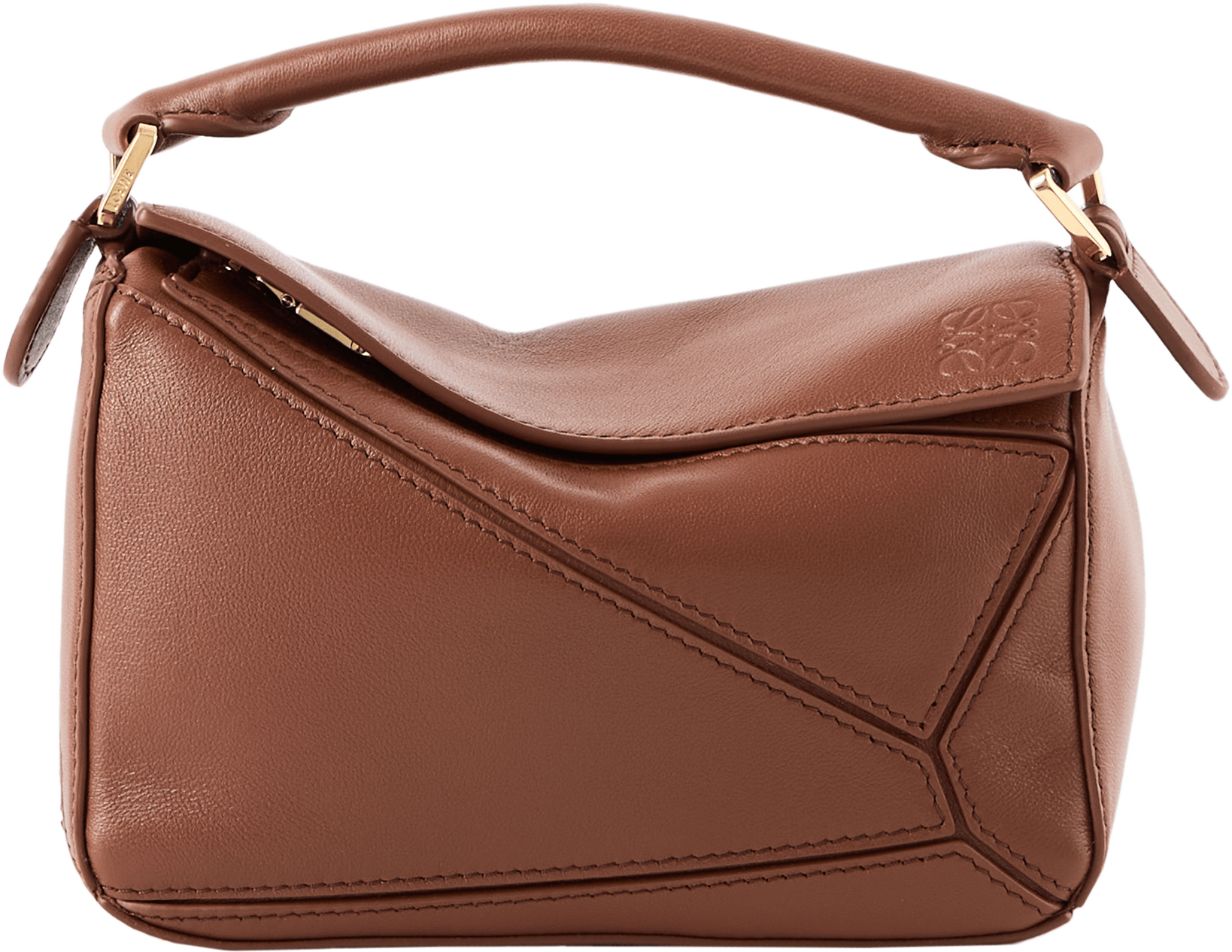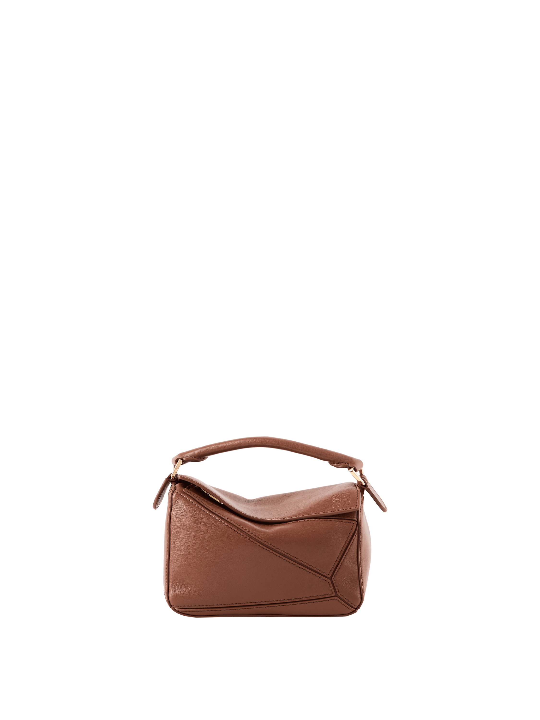 Die Handtasche 'Puzzle Featherlight Mini‘ in Pecan von LOEWE wurde aus federleichtem Nappa-Lammleder gefertigt und mit goldfarbener Hardware abgerundet. Der abnehmbare und verstellbare Riemen mit drehbaren Dogclips, der Reißverschluss mit Zugband sowie das geprägte Anagram zeichnen das Design aus.
