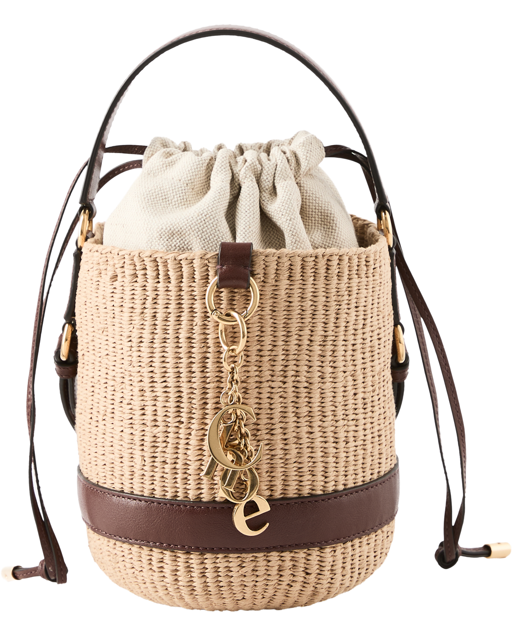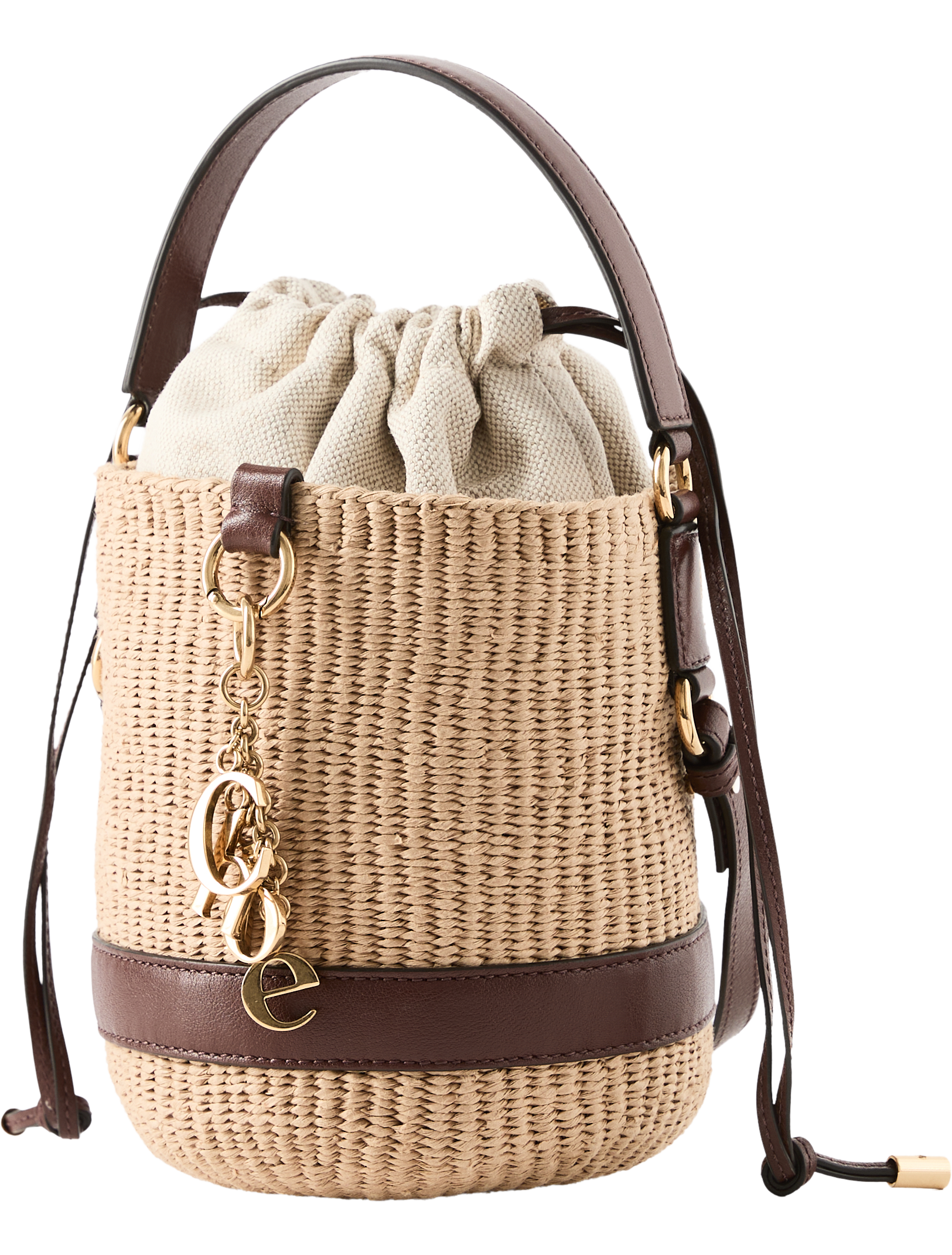 Die Handtasche 'Charms' von Chloé in Crafty Brown wurde aus Fairtrade-Papier und Büffelleder gefertigt und besticht durch die goldfarbenen Chloé-Buchstaben. Ein Kordelzugverschluss, ein Griff sowie ein verstellbarer und abnehmbarer Riemen runden das Design ab.