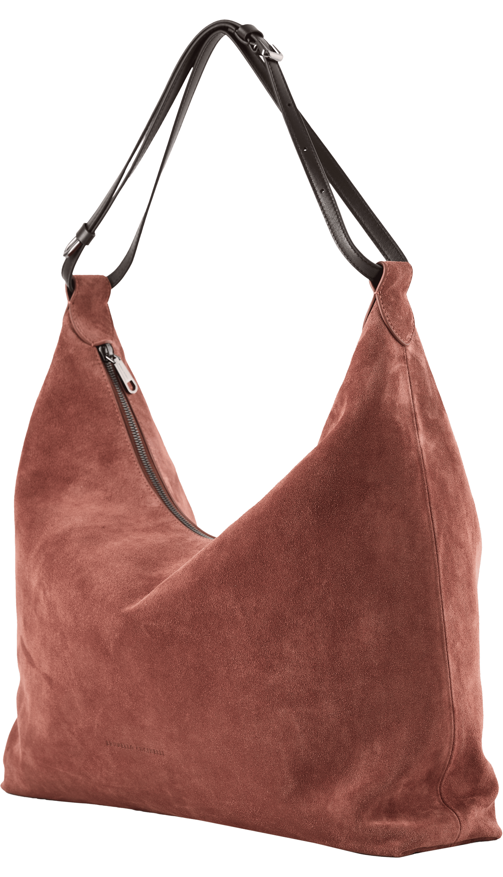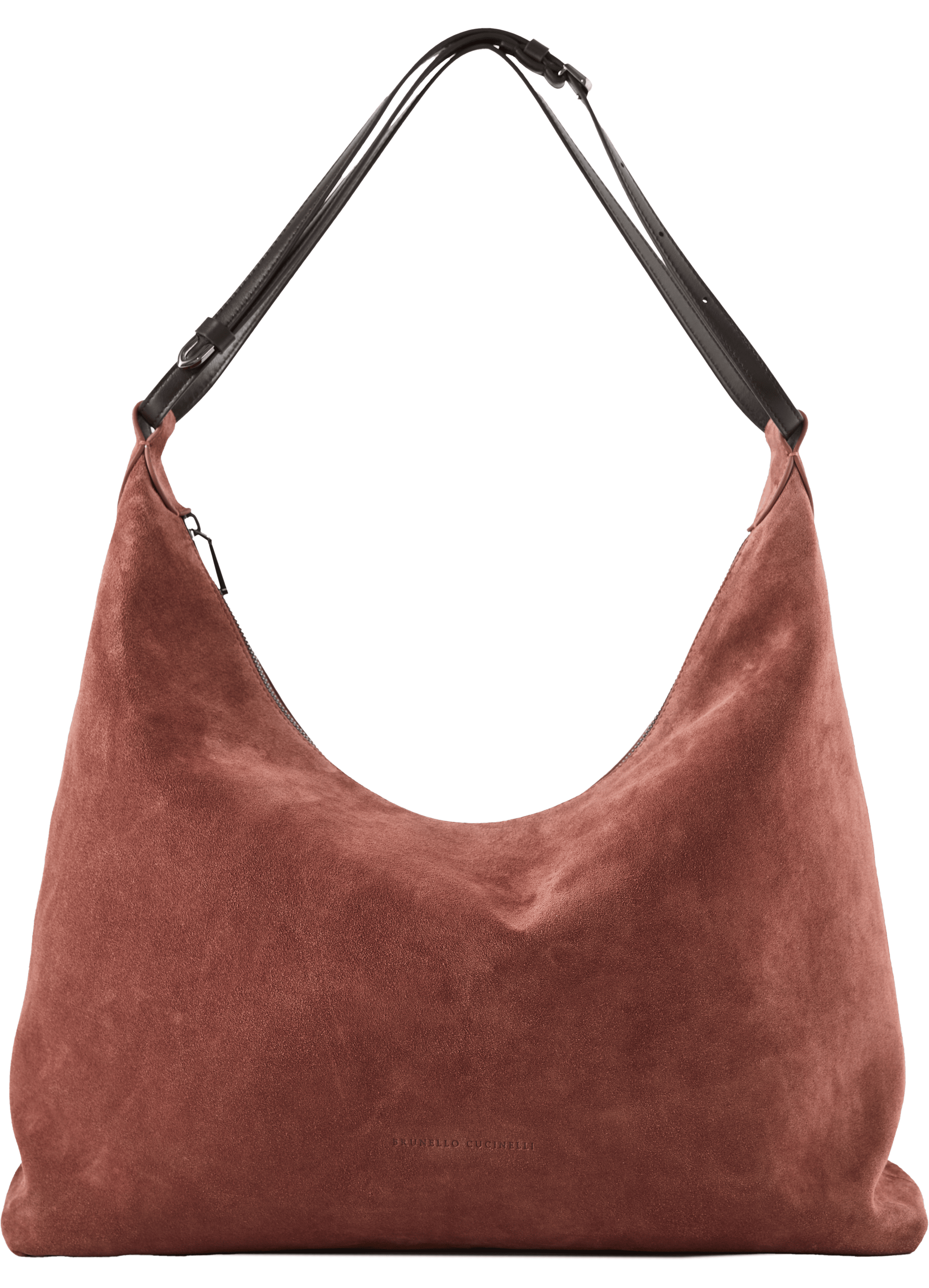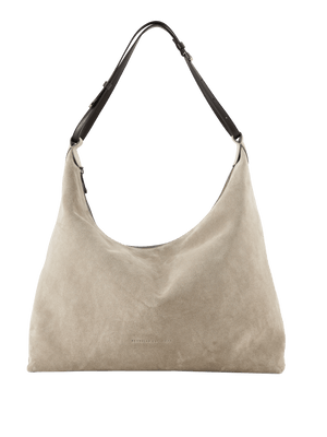 Die Schultertasche 'Borsa' in Maroon von Brunello Cucinelli wurde aus Kalbsleder gefertigt und besticht durch ihre weiche Haptik. Das edle Modell wird durch den variierbaren Doppelriemen aus Glattleder bereichert. Ein Innenfach mit Reißverschluss bietet Stauraum für kleine Dinge des Alltags.