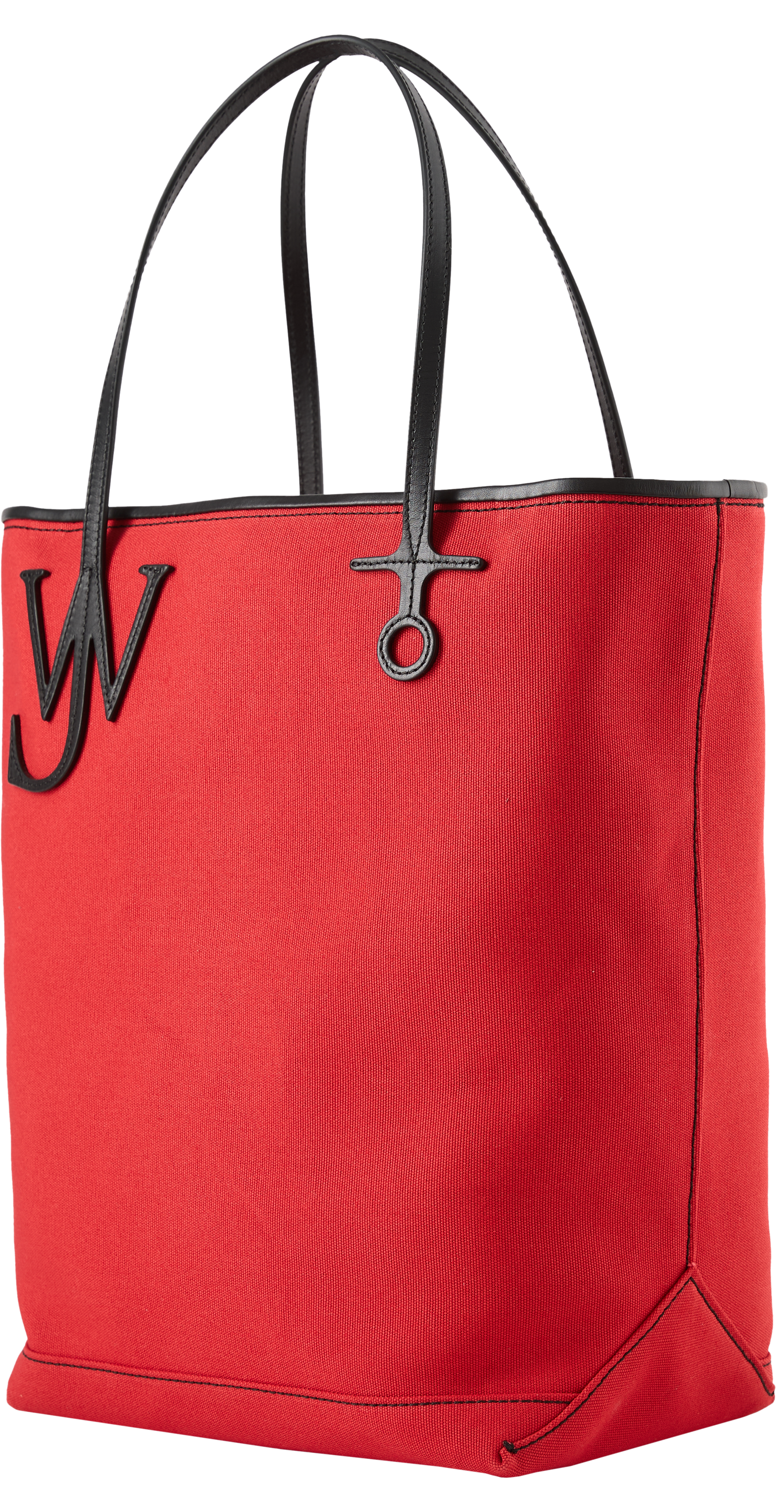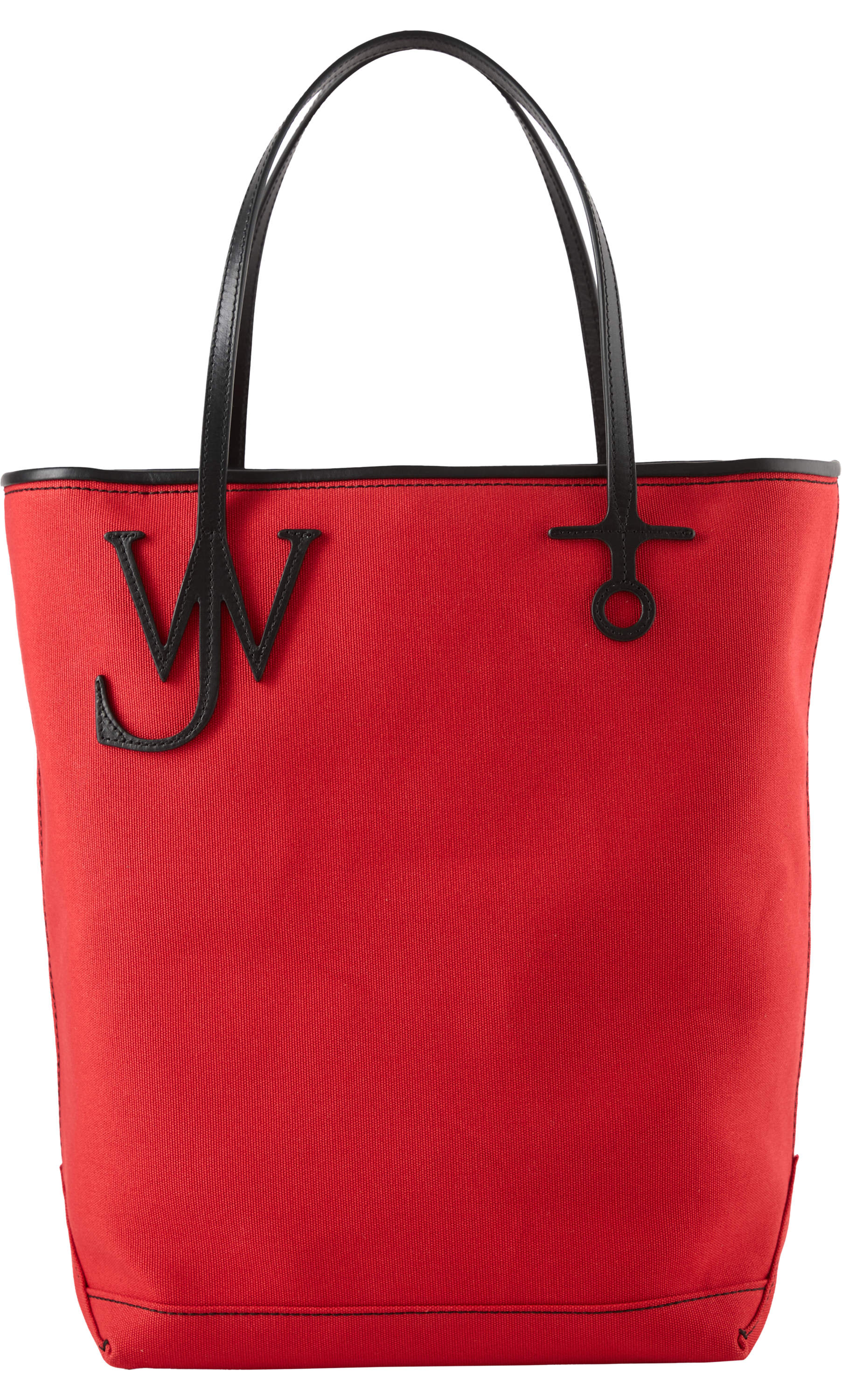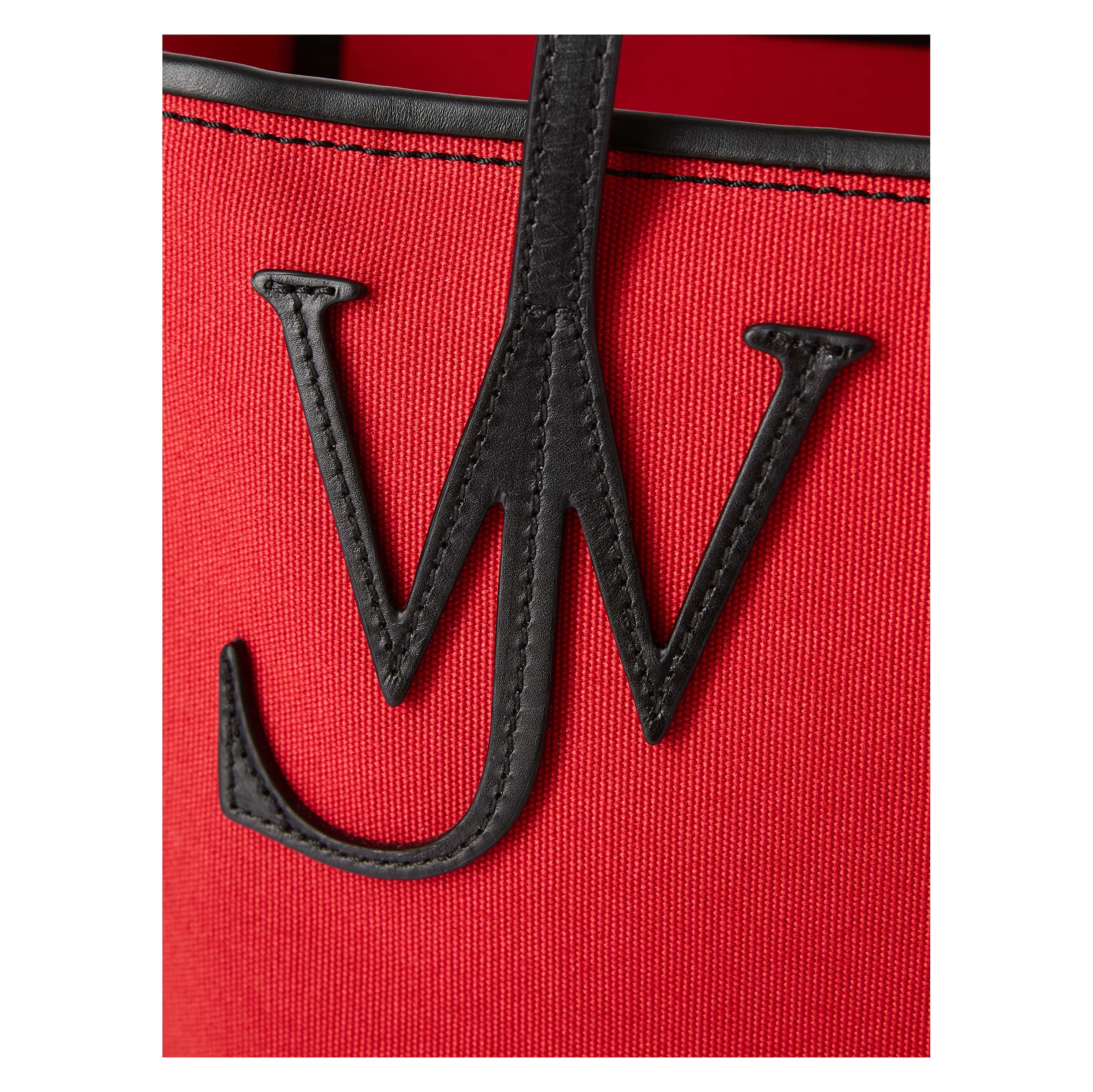 Der Shopper 'Tall Anchor Tote' in Rot von JW Anderson wurde aus Baumwoll-Canvas gefertigt und besticht durch Akzente aus Leder in Form des Anker-Logos der Marke. Die schmalen Griffe, die zwei Innenfächer und das offene Design machen dieses Modell zu einem echten Highlight.
