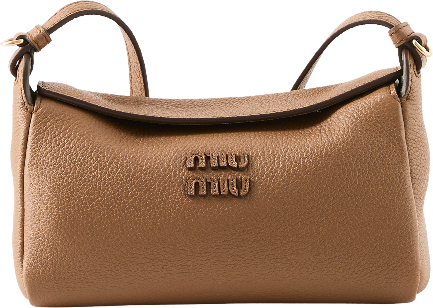 Diese Pouch in Braun von miu miu wurde aus Kalbsleder gefertigt und besticht durch die weiche, dezent glänzende Narbung. Der Magnetverschluss, das Kartenfach, der verstellbare Schulterriemen aus Leder sowie der Logoschriftzug aus Leder zeichnen dieses Modell aus.