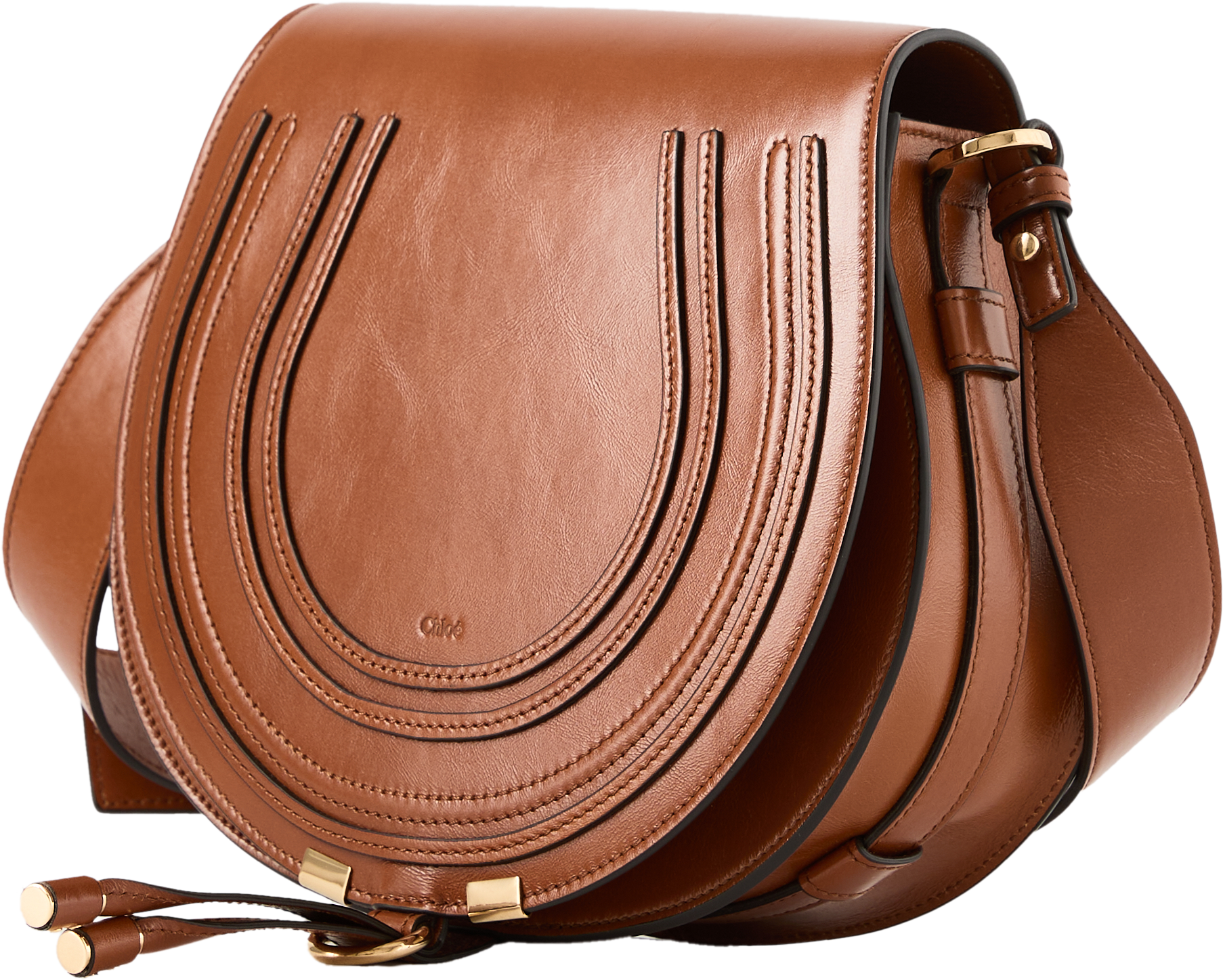 Die Satteltasche 'Marcie Medium' in Clay Brown wurde aus glänzendem Kalbsleder gefertigt und mit goldfarbener Hardware abgerundet. Die kleine Version von Chloés 'Marcie' Tasche überzeugt mit ihrer an eine Satteltasche erinnernde Form. Dank des verstellbaren Schulterriemens lässt sich die Ledertasche bequem crossbody tragen.