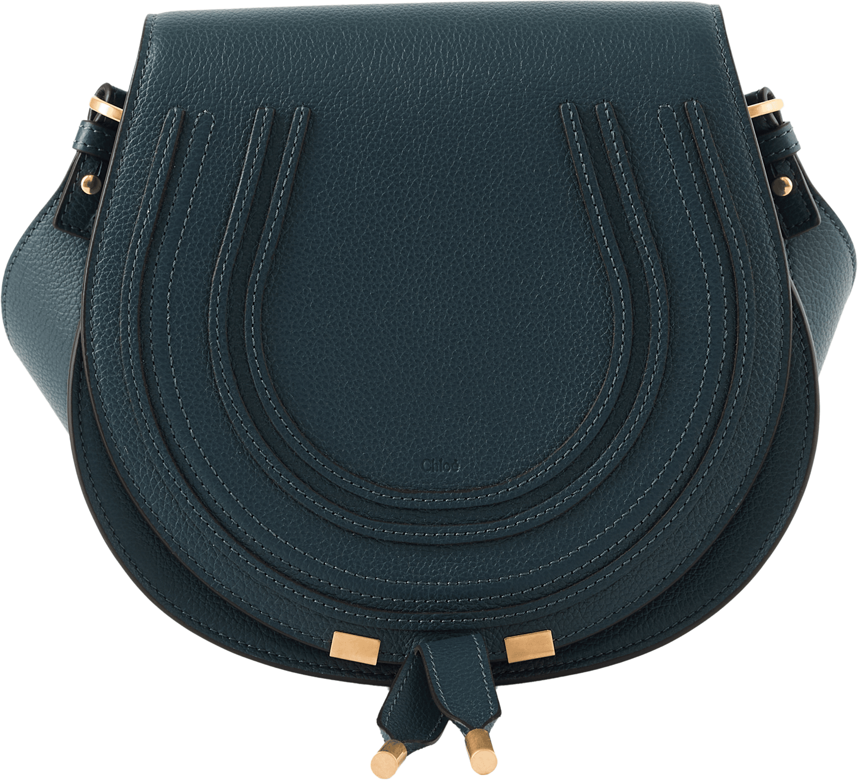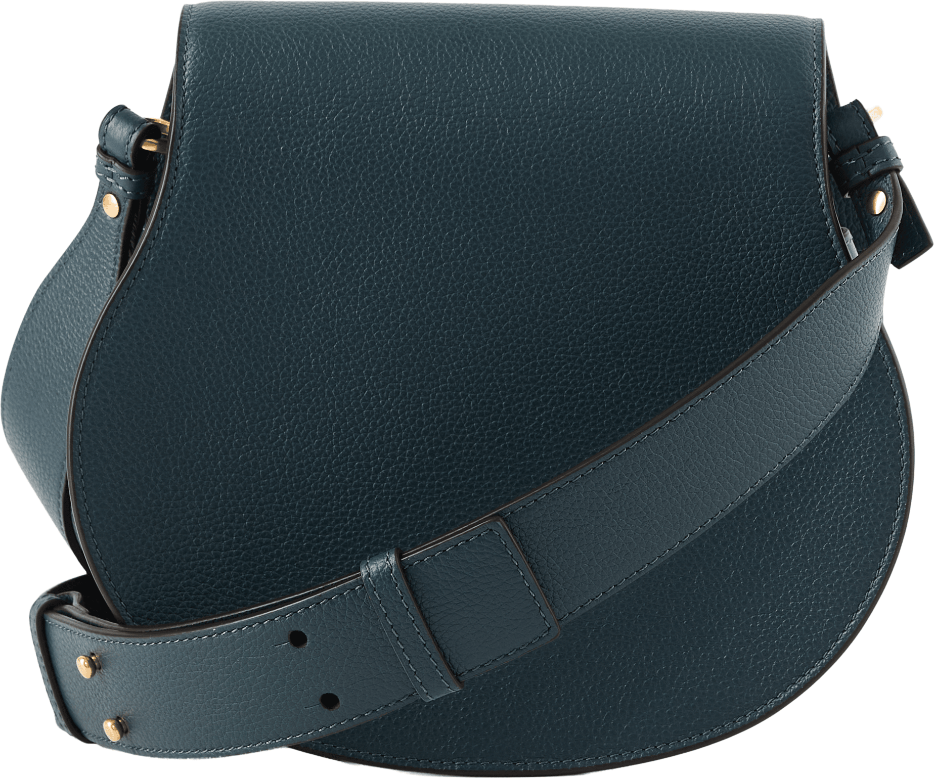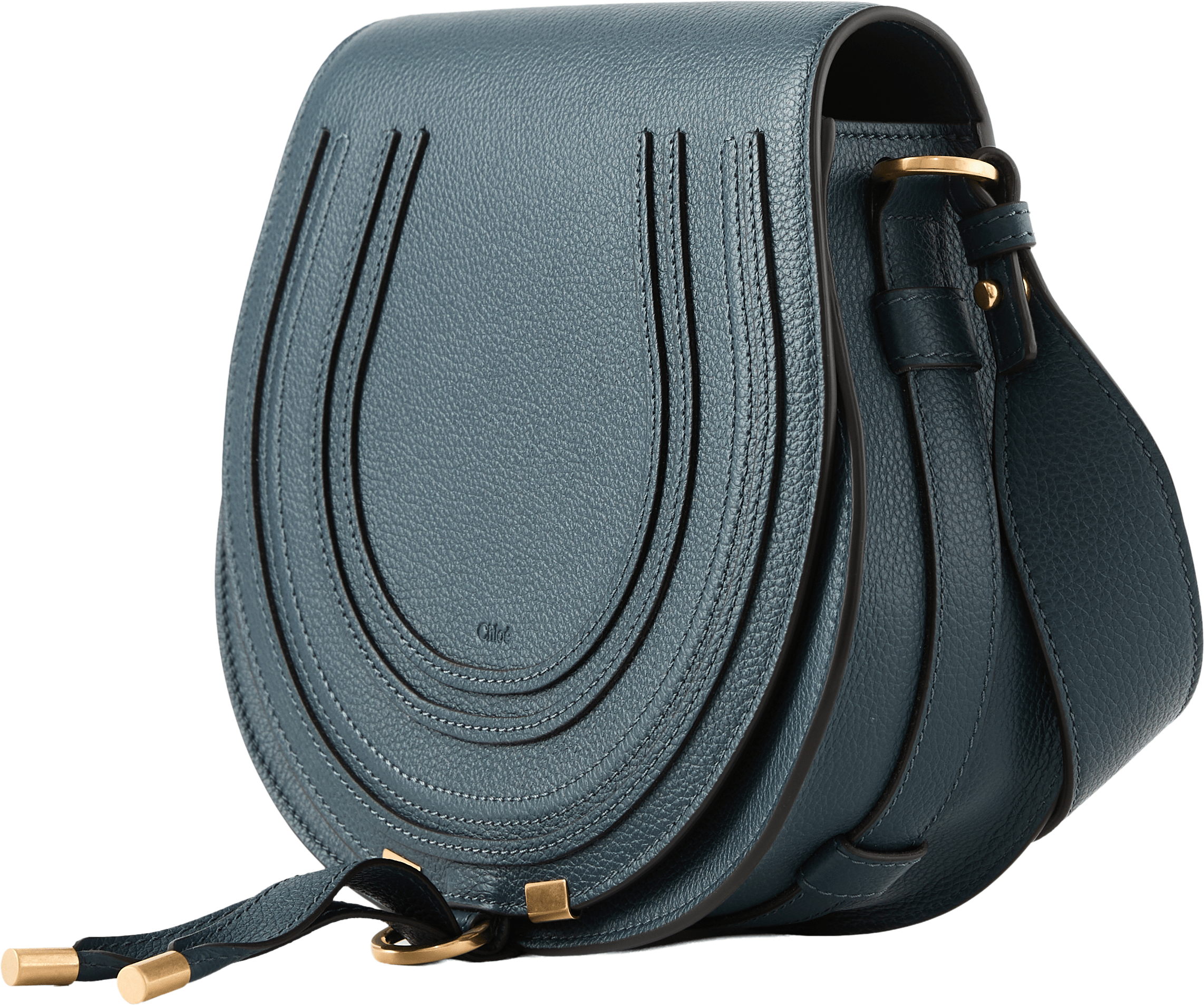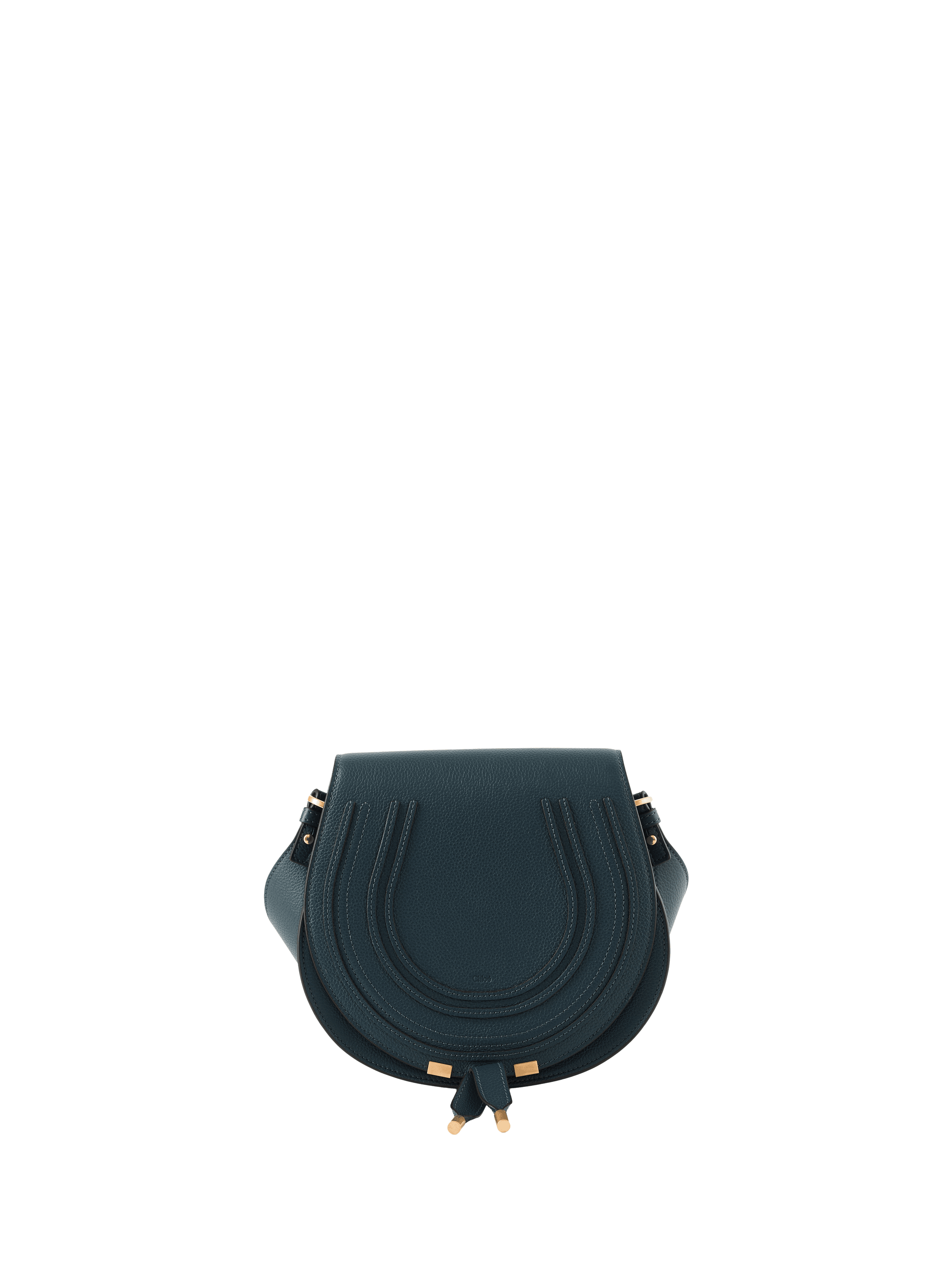 Die Satteltasche 'Marcie Small' in Tapestry Blue wurde aus genarbtem Kalbsleder gefertigt und mit goldfarbener Hardware ergänzt. Die abgerundete Form, die Verschlussbänder und der verstellbare Schulterriemen verleihen dem Design Eleganz.