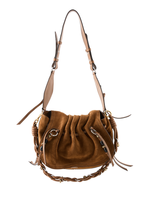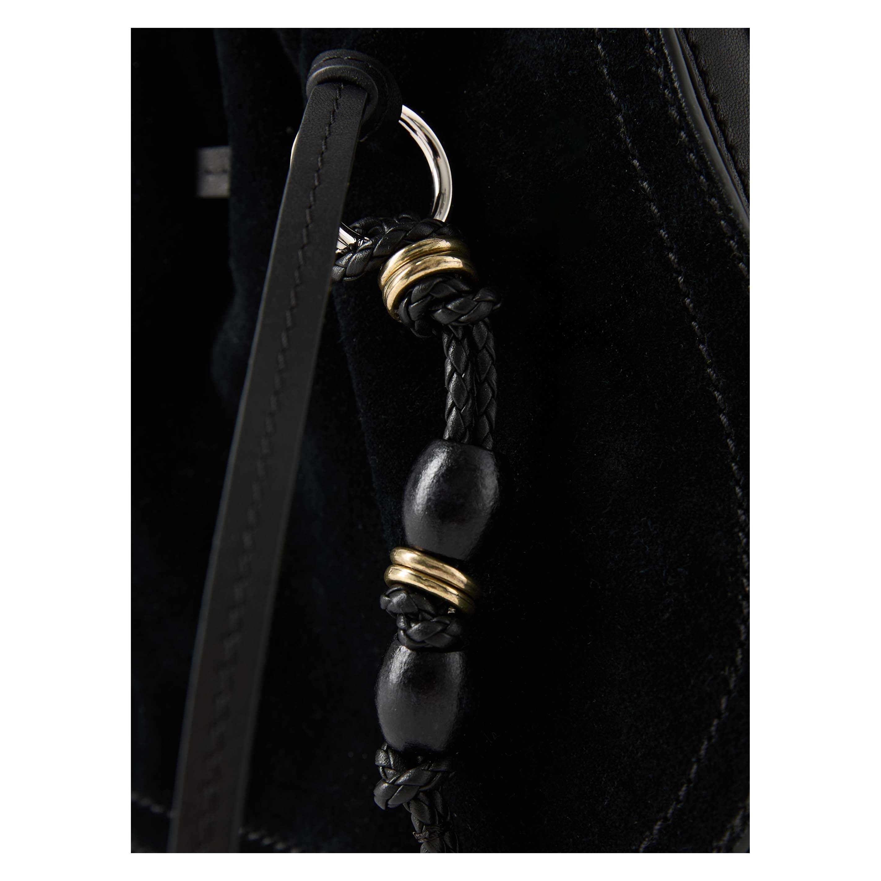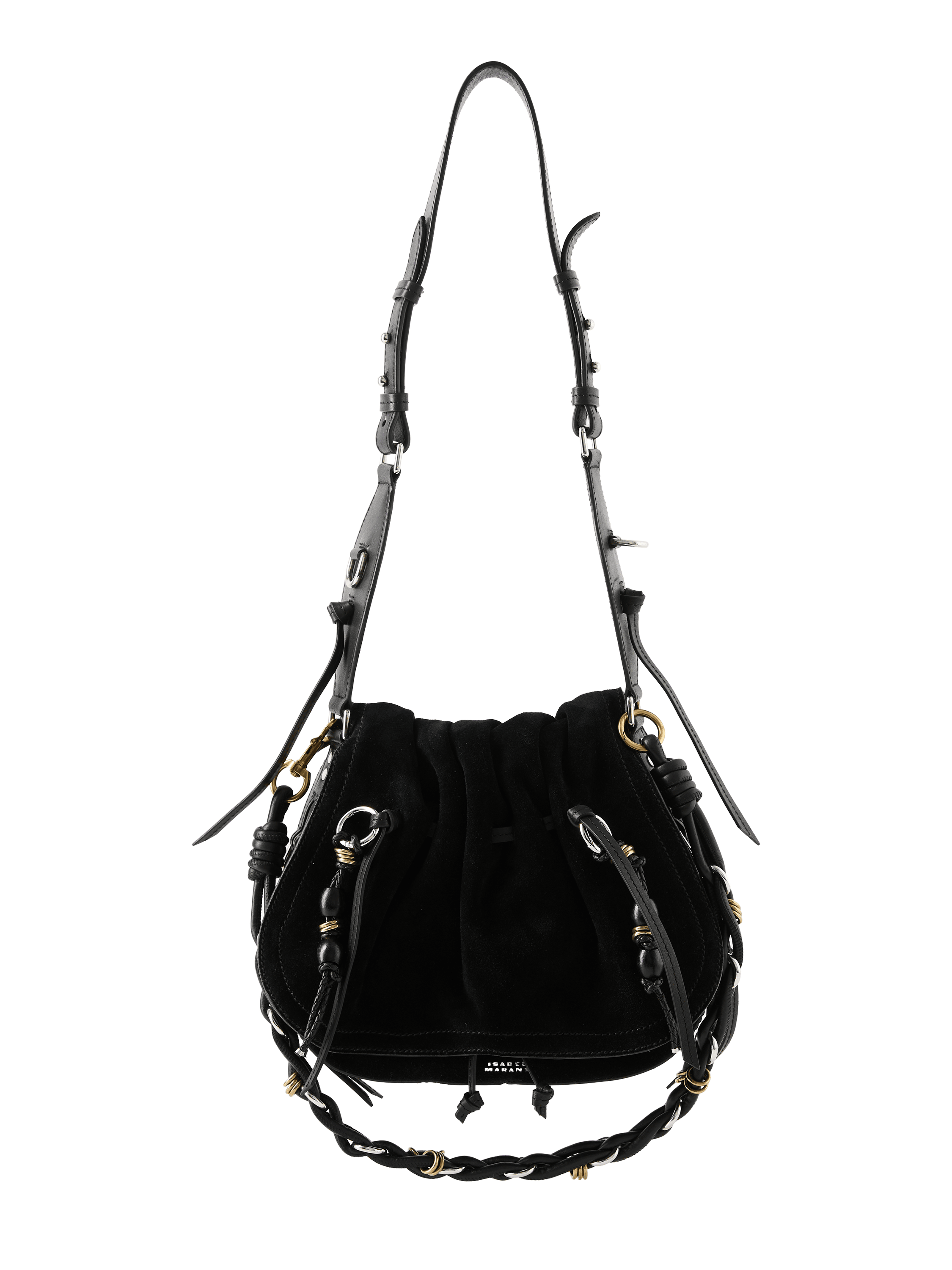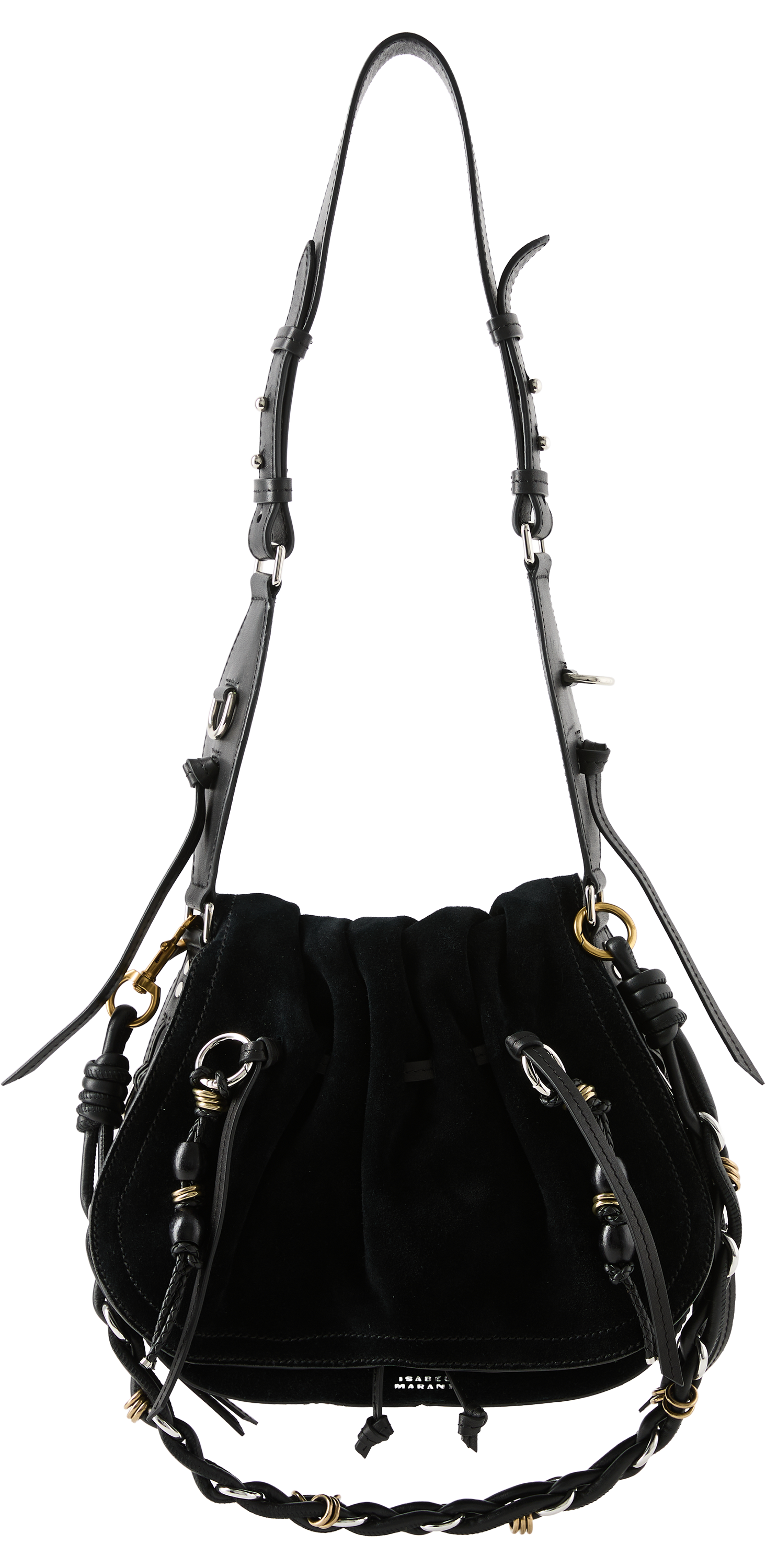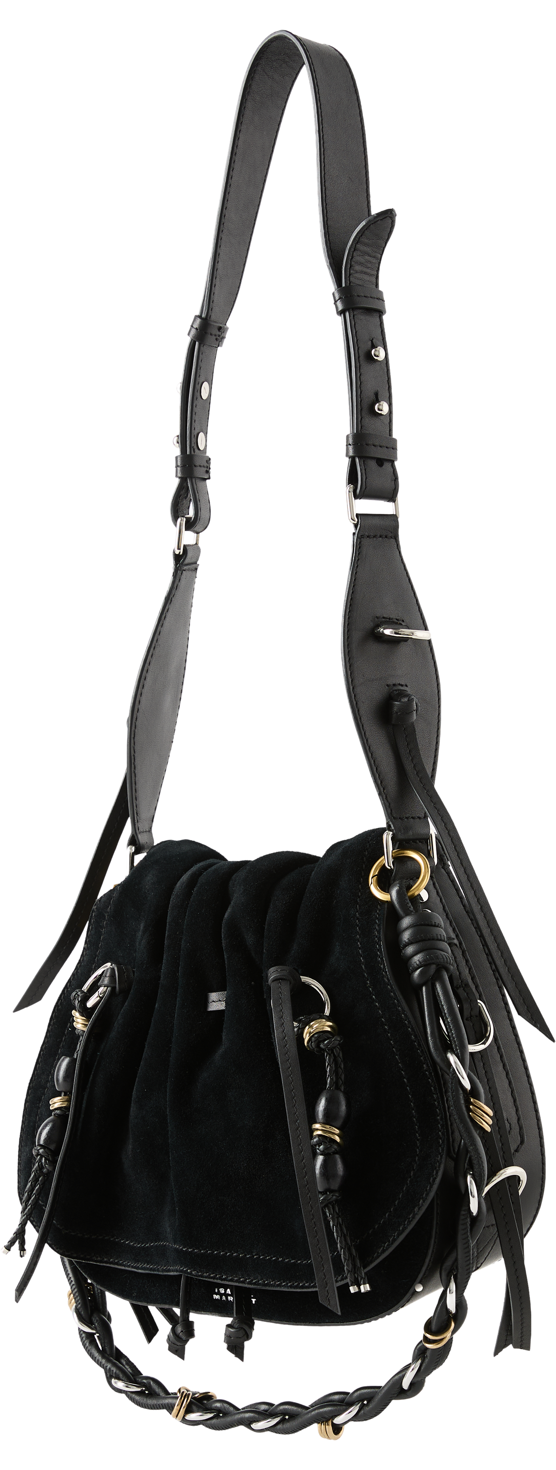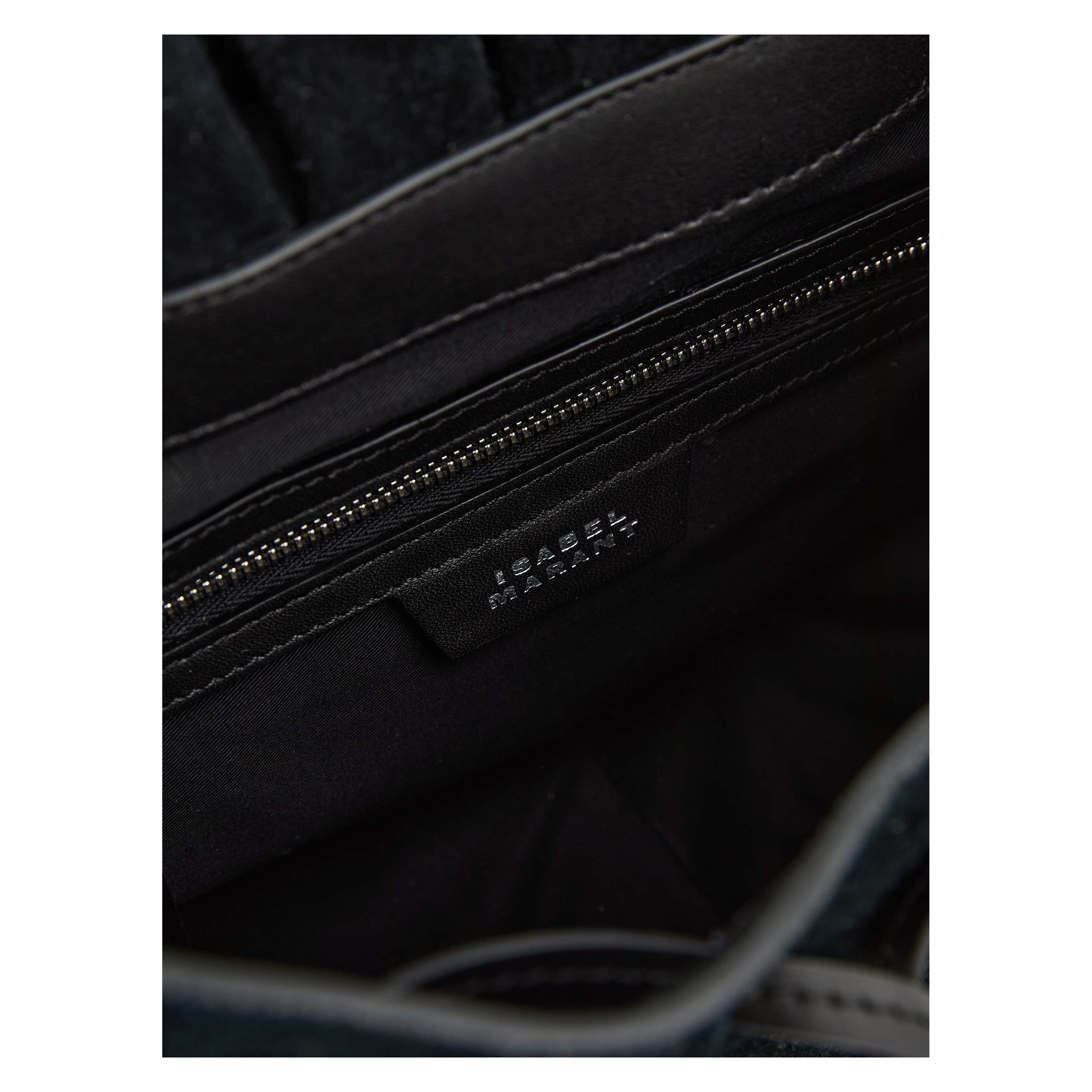 Die Umhängetasche 'Bolton' in Schwarz von Isabel Marant wurde aus hochwertigem Kalbs-Veloursleder gefertigt und besticht durch die halbmondförmige Silhouette sowie die makellose Verarbeitung. Ein Innenfach mit Reißverschluss, der Überschlag mit Kordelzug und die silberfarbene Hardware unterstreichen das funktionale und zugleich elegante Design.