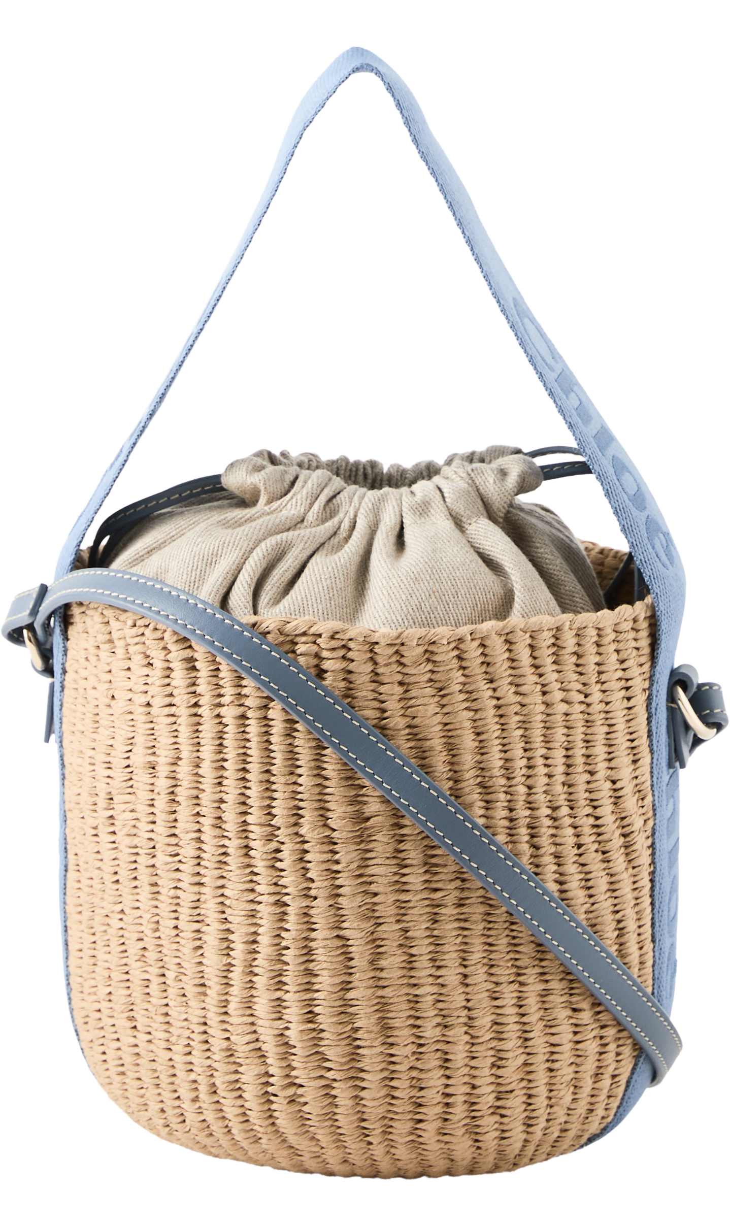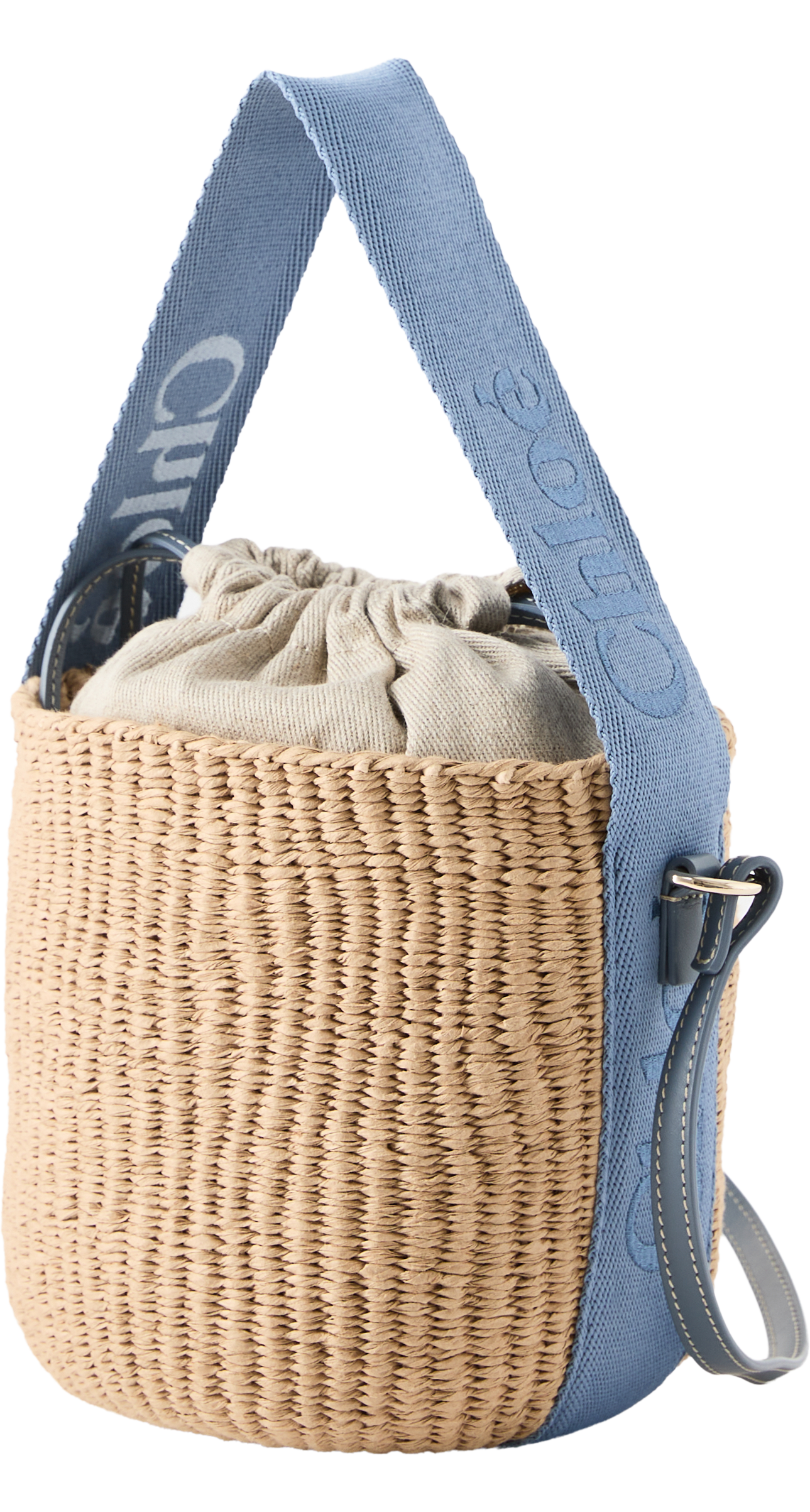 Die Umhängetasche 'Small Woody Basket' in Ashes Blue von Chloé wurde aus Fair-Trade-Papier gefertigt. Der lange Riemen mit Logo-Schriftzug zeichnet das Design aus und wird durch die ikonischen Woody-Details abgerundet. Diese Tasche wurde in Zusammenarbeit mit Mifuko, einem zertifizierten WFTO-Lieferanten, hergestellt.