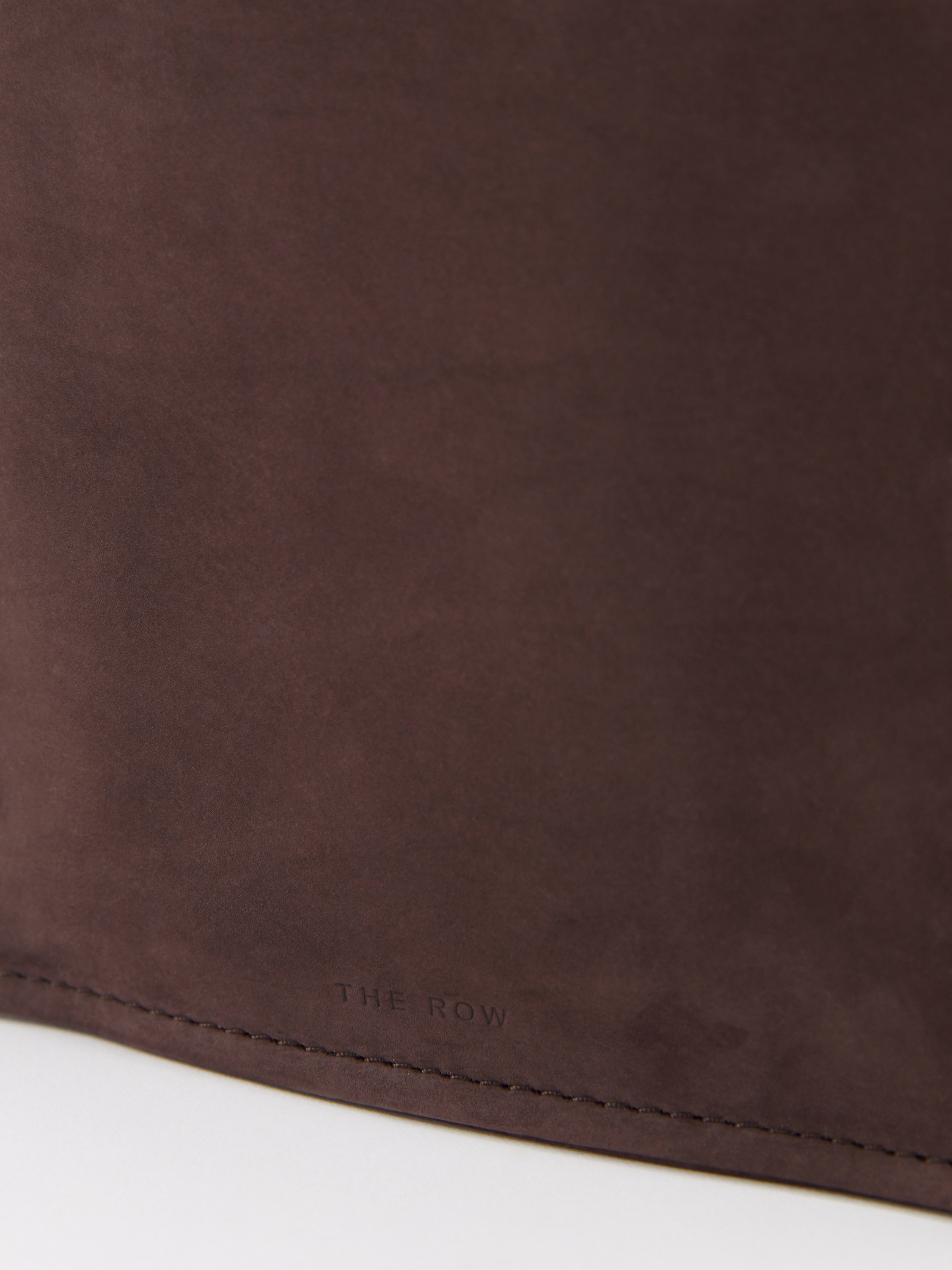 Die Umhängetasche 'To Go Small' in Dunkelbraun von The Row wurde aus hochwertigem Nubukleder gefertigt und besticht durch das minimalistische Design. Das Modell wird durch die offene Oberseite und den schmalen Griff zu einem stilvollen Begleiter der Saison.
