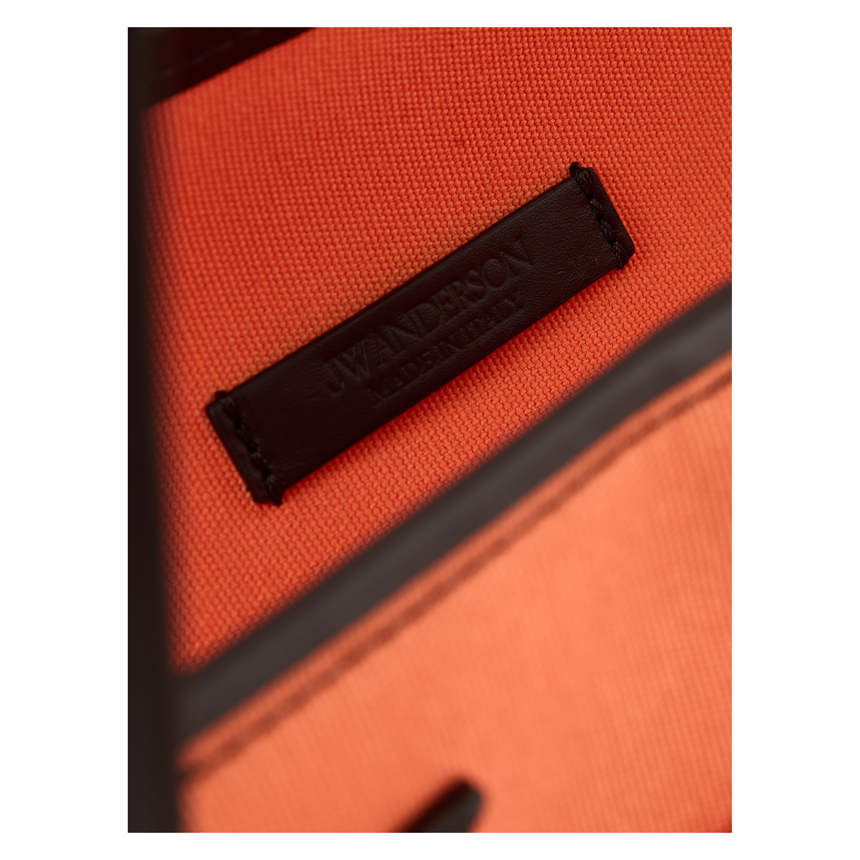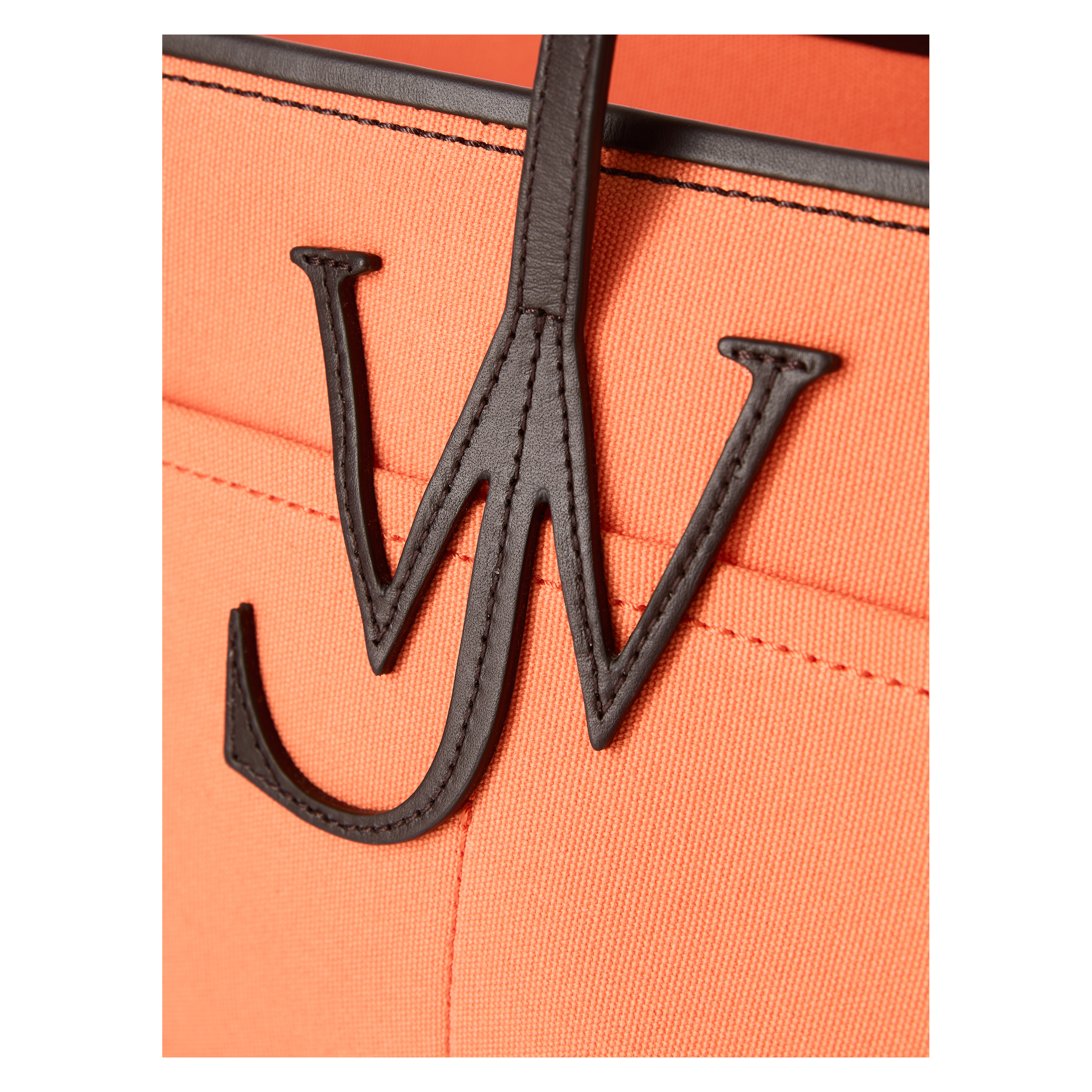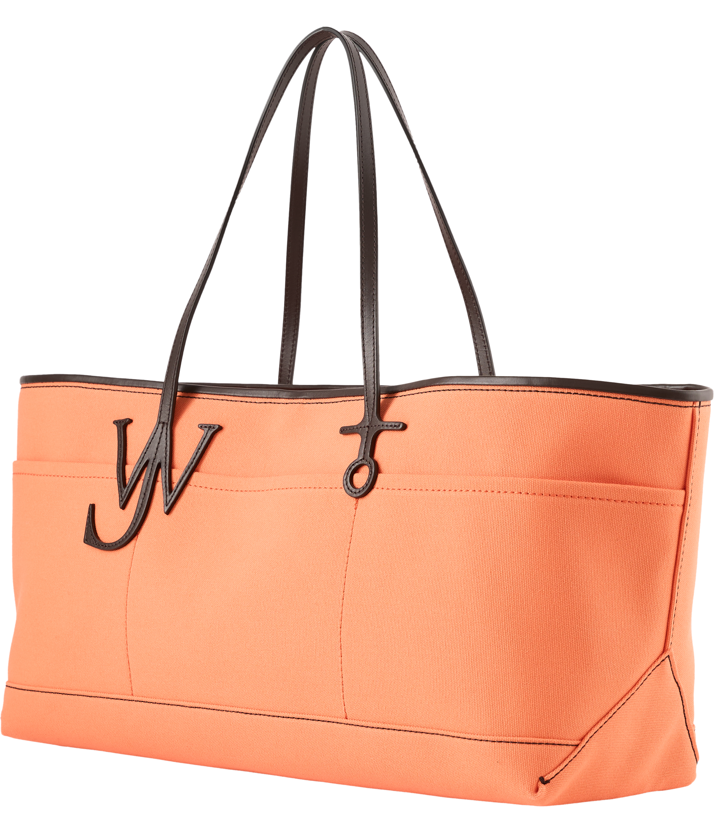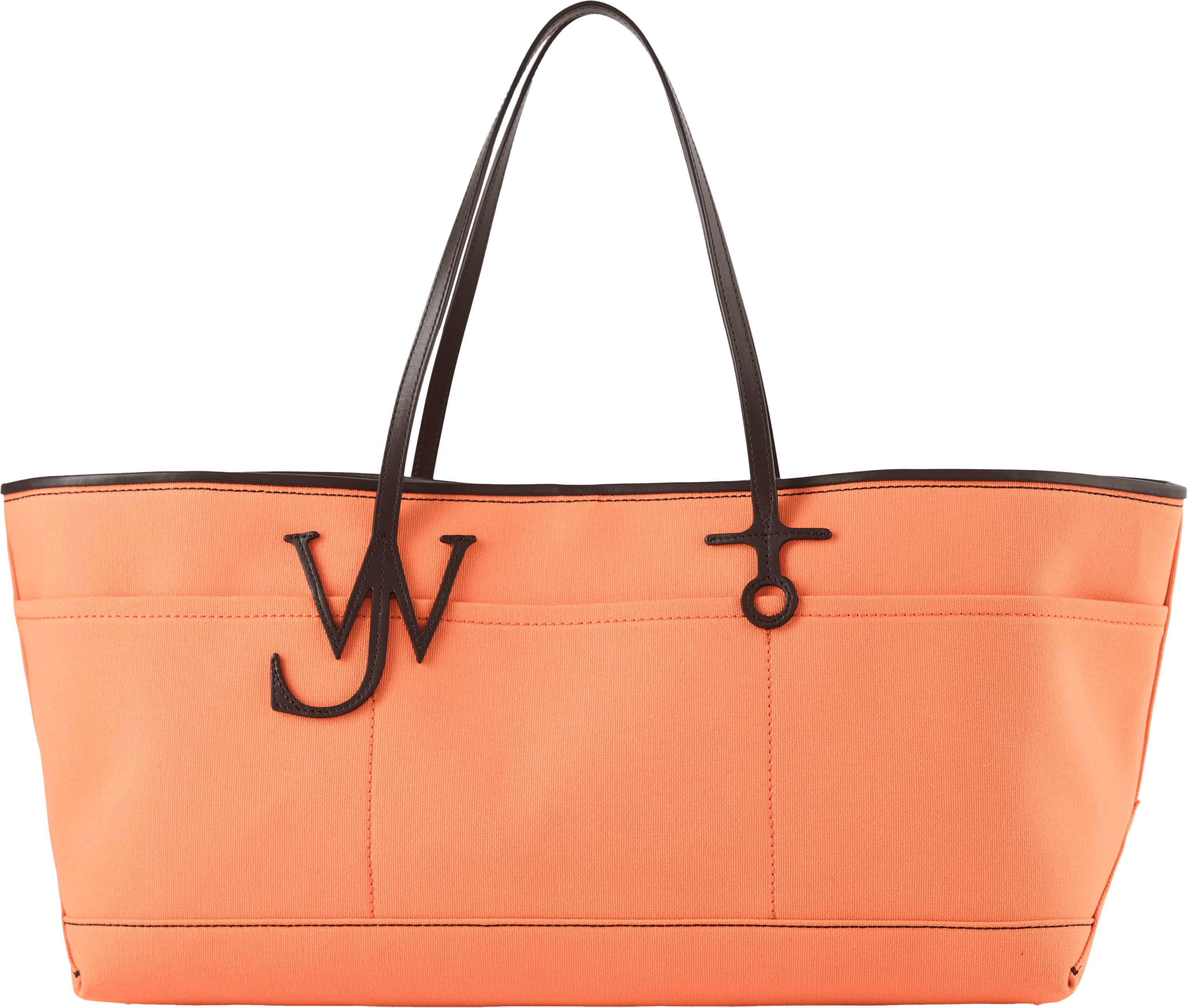 The 'Stretch Anchor Tote' shopper in orange by JW Anderson is made from cotton canvas and stands out with its smooth anchor-shaped calfskin edging. The narrow handles, in which the logo is elegantly integrated, and the three outer pockets lend the model its elegance.