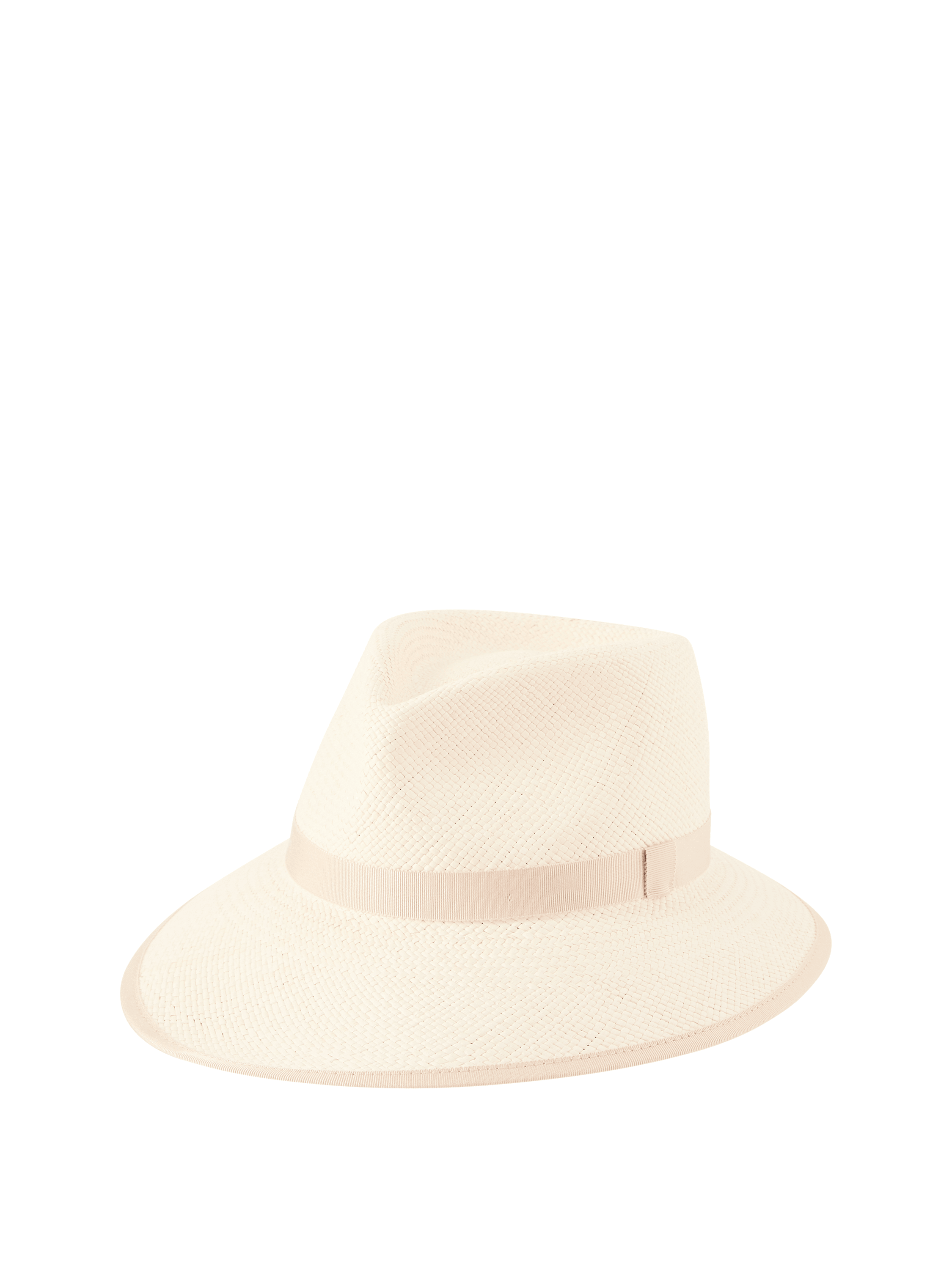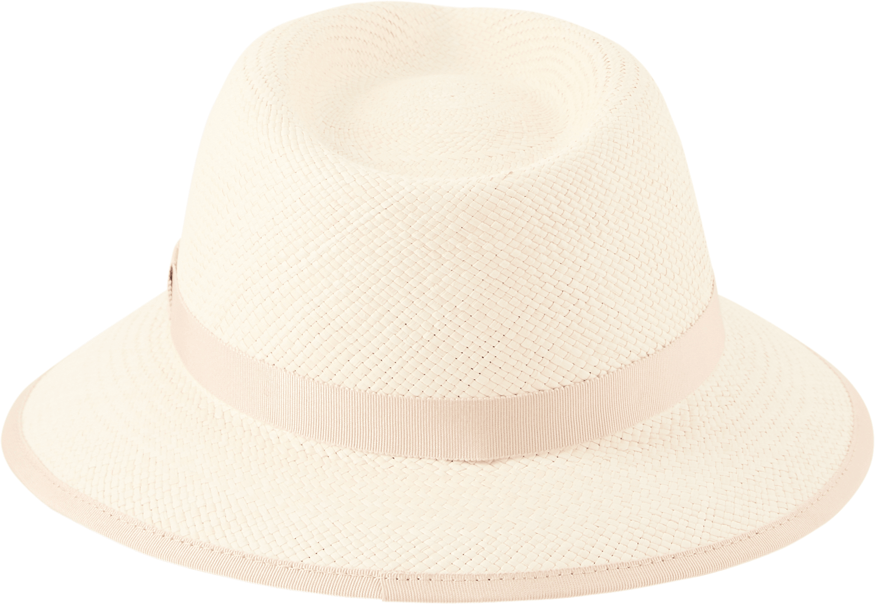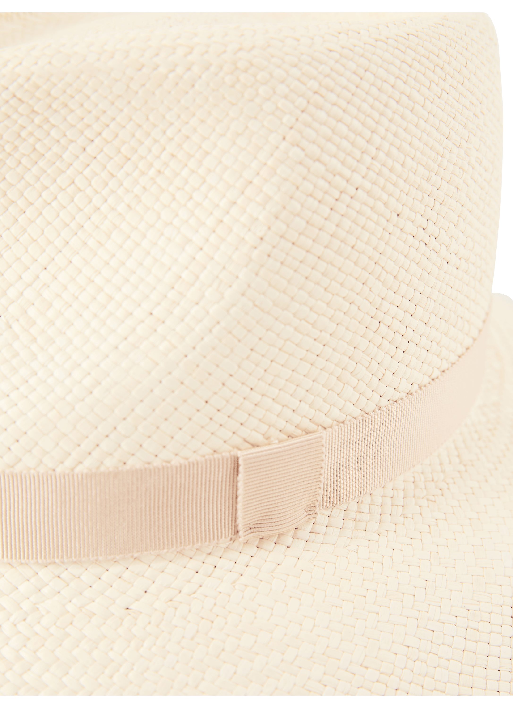 The 'Dolmen' hat in beige by Max Mara is crafted from a cotton blend and features a decorative band around the crown. The wide brim offers ideal sun protection and is subtly accentuated by a contrasting trim in the same colour as the band.