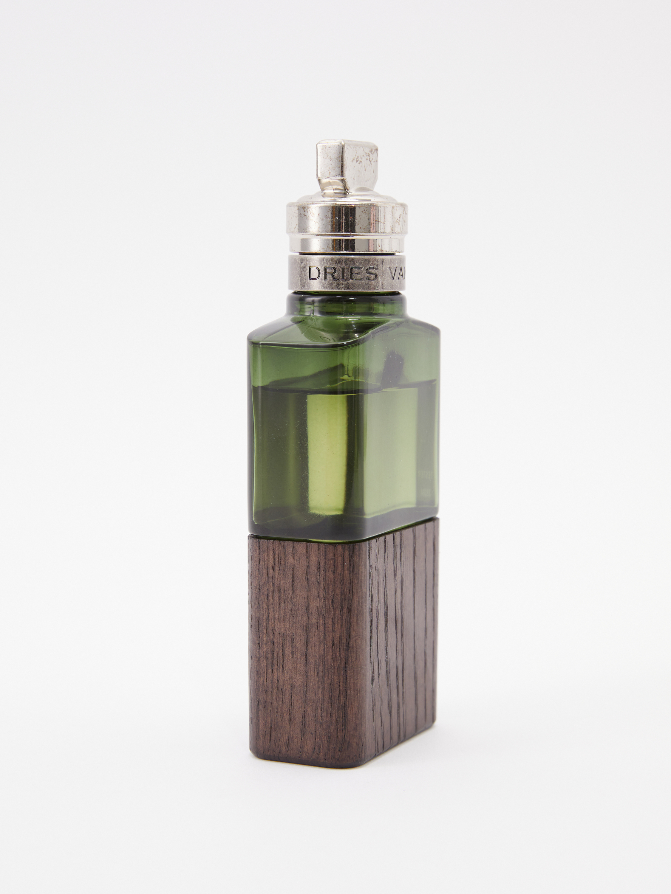 "In Dries' world, contrasting elements are combined to create surprise. This fragrance is like a light and dark scent pattern of fresh green leaves of clary sage rubbing against the woody leaves of patchouli." - Nicolas Bonneville, perfumer