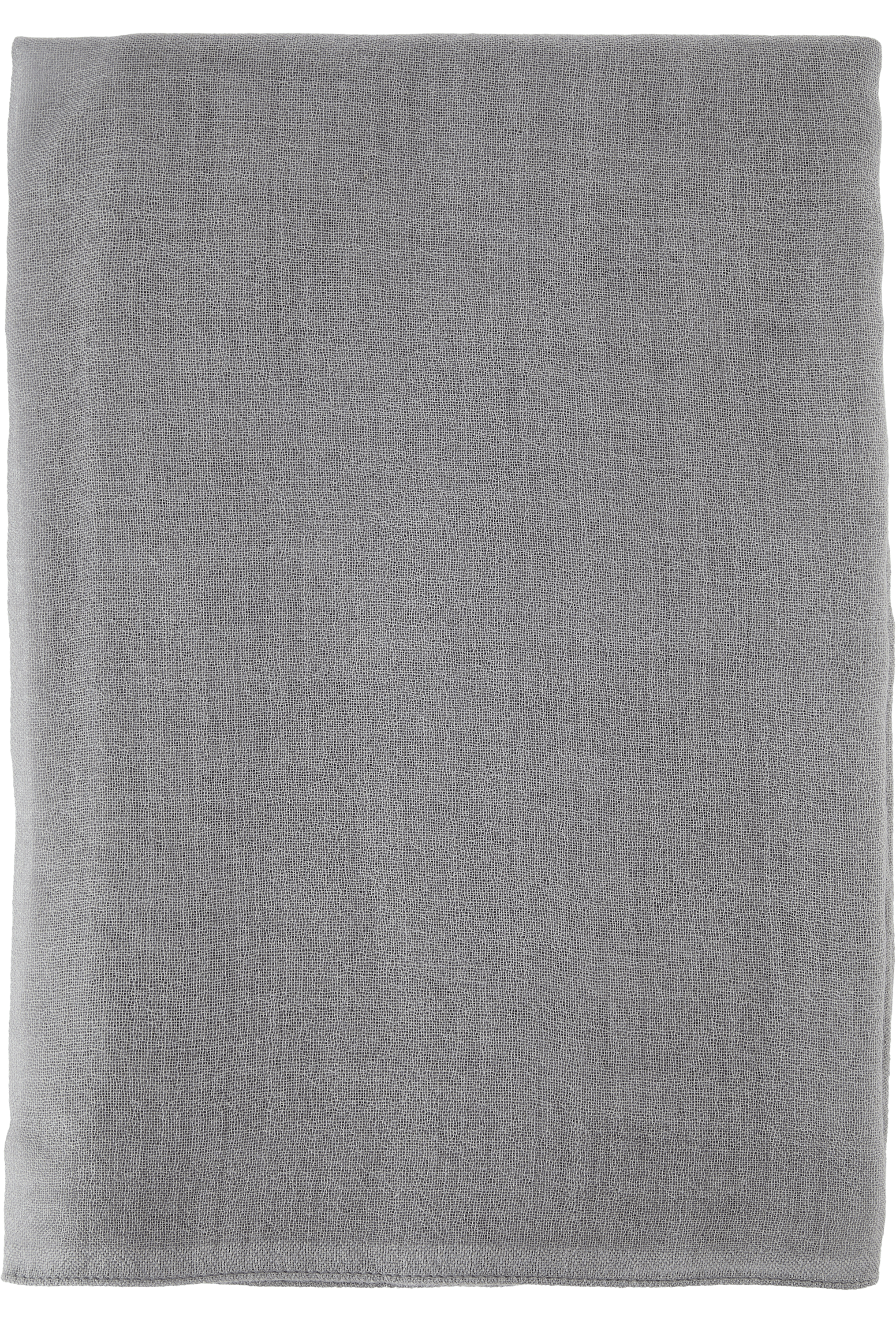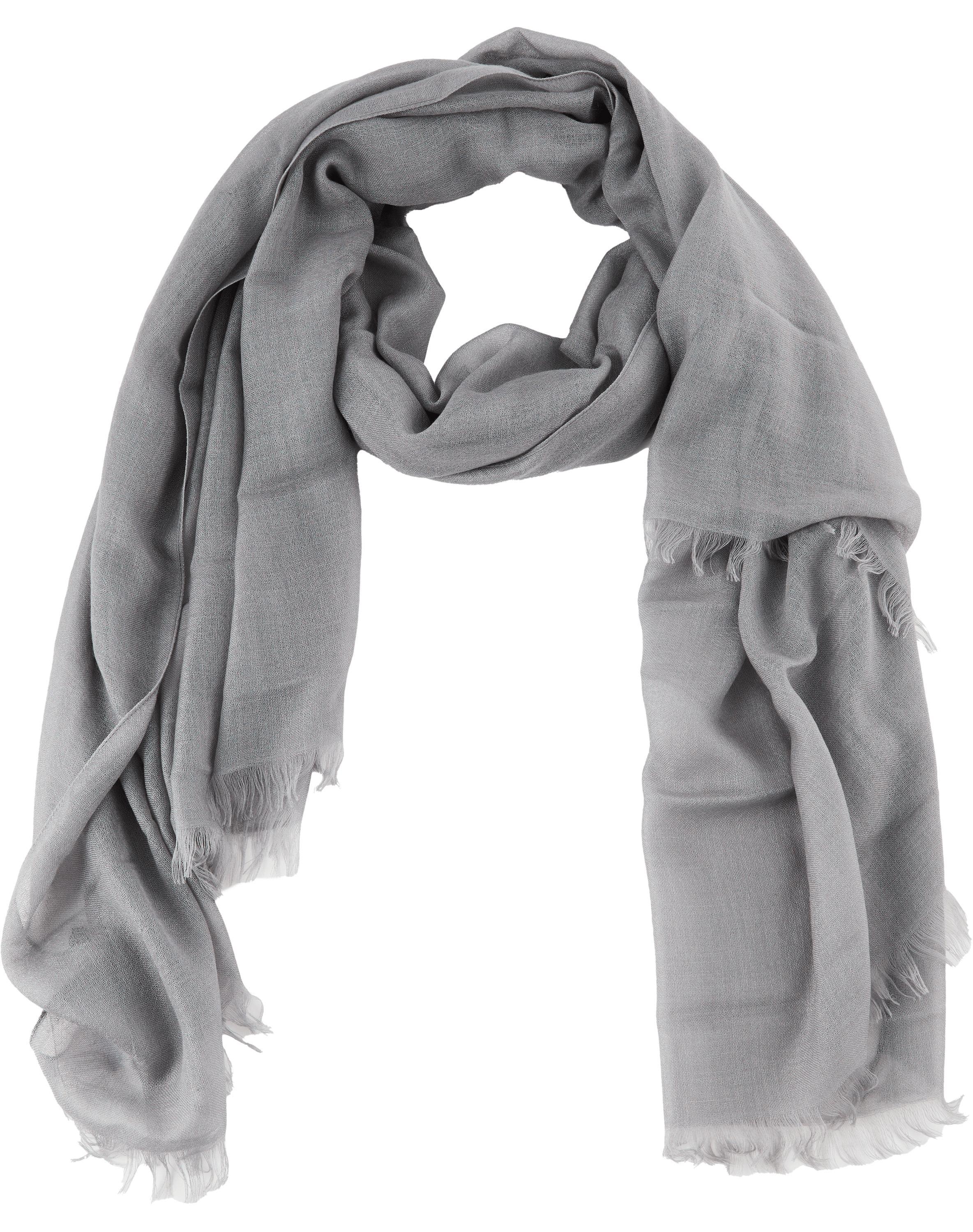 This light grey scarf by Brunello Cucinelli is made from a high-quality cashmere-silk blend and stands out with its subtly transparent texture. The soft feel and fringed hem are the hallmarks of this high-quality design.