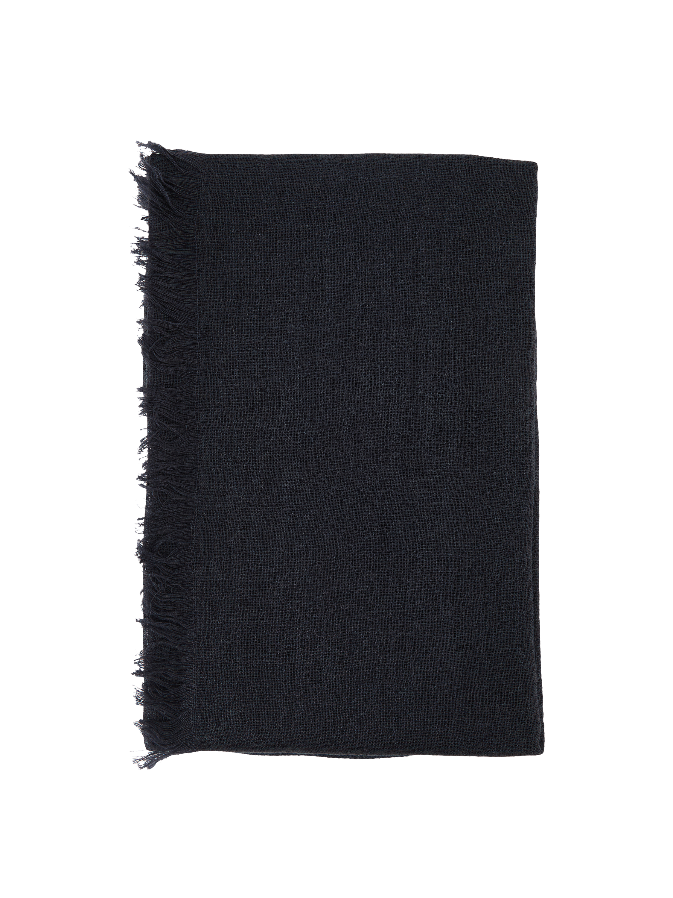 This navy blue scarf by Brunello Cucinelli is made from a high-quality cashmere-silk blend and stands out with its subtly transparent texture. The soft feel and fringed hem characterise the high-quality design.