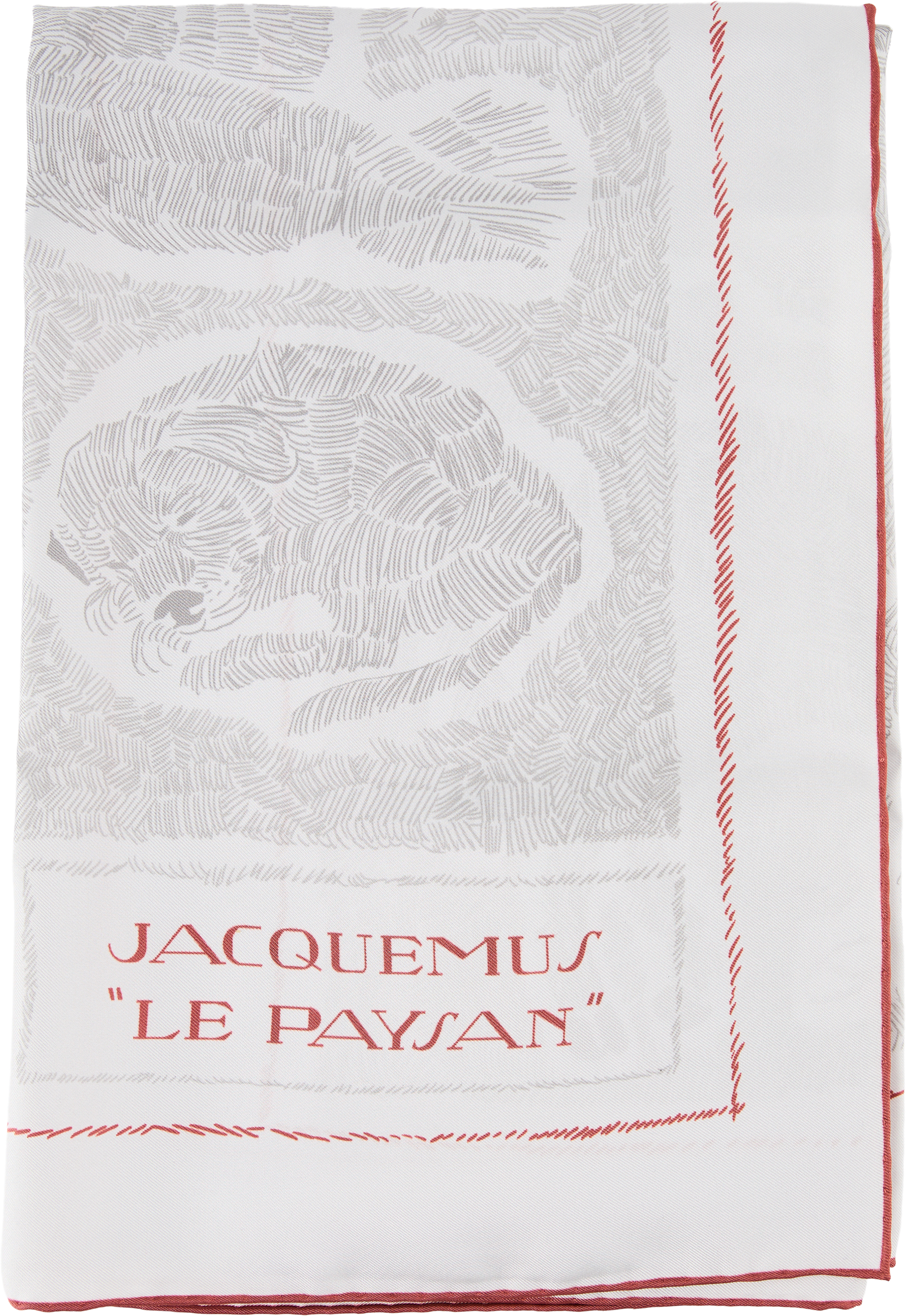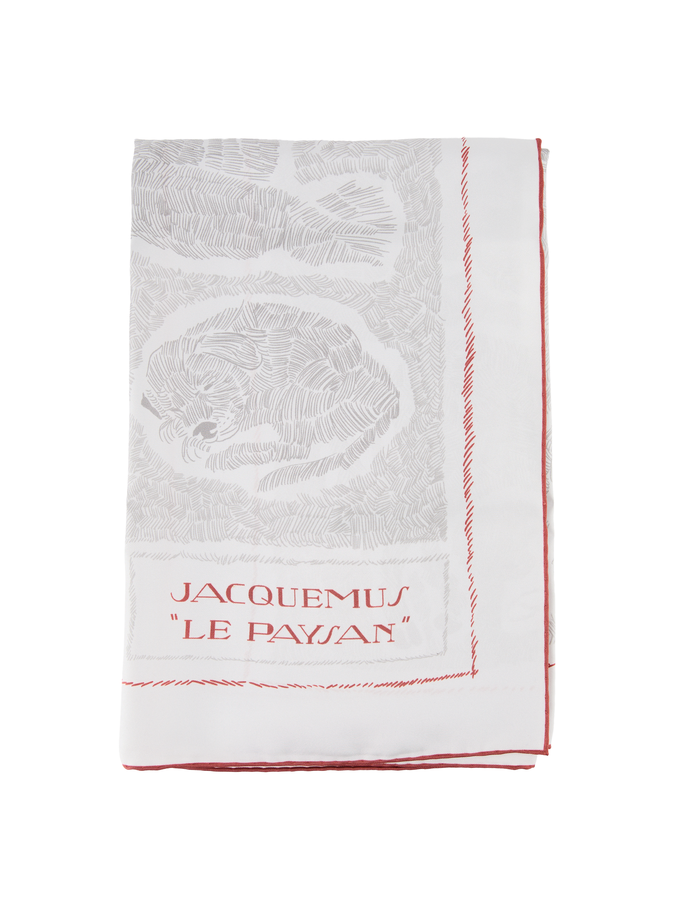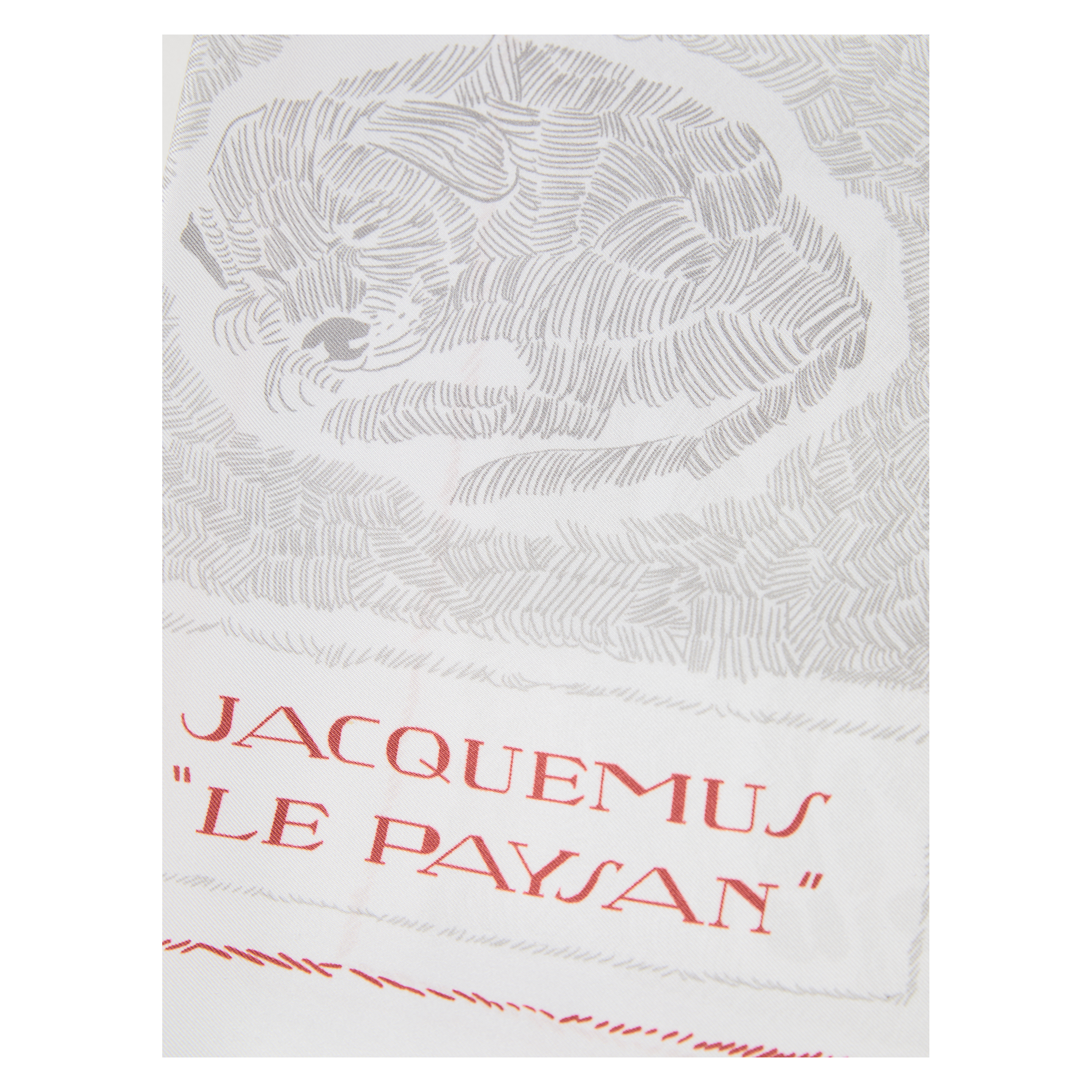 The 'Le Foulard Paysan' scarf in grey/red by JACQUEMUS is made from pure silk and features an all-over print depicting various animals. Thanks to the classic, rectangular cut, this piece can be worn in a variety of ways. The elegant satin finish and subtle logo lettering emphasise the elegant character of this design.