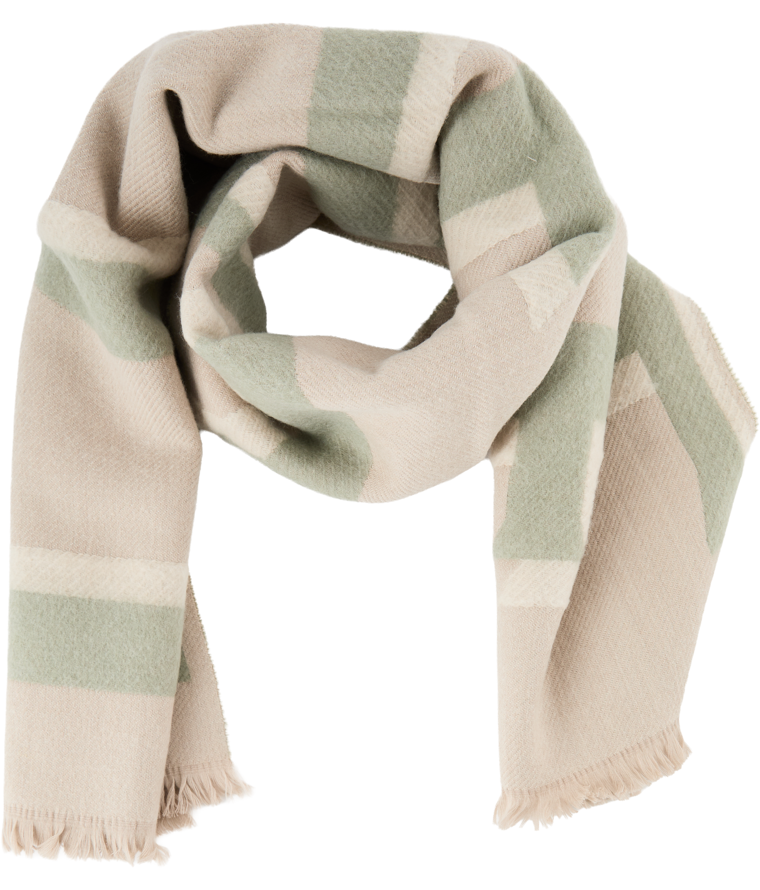This beige scarf from LOEWE is made from a medium-weight, brushed wool-cashmere blend and impresses with its soft feel. The two-coloured jacquard and the edges with short fringes add stylish accents. The scarf can be worn in a variety of ways.