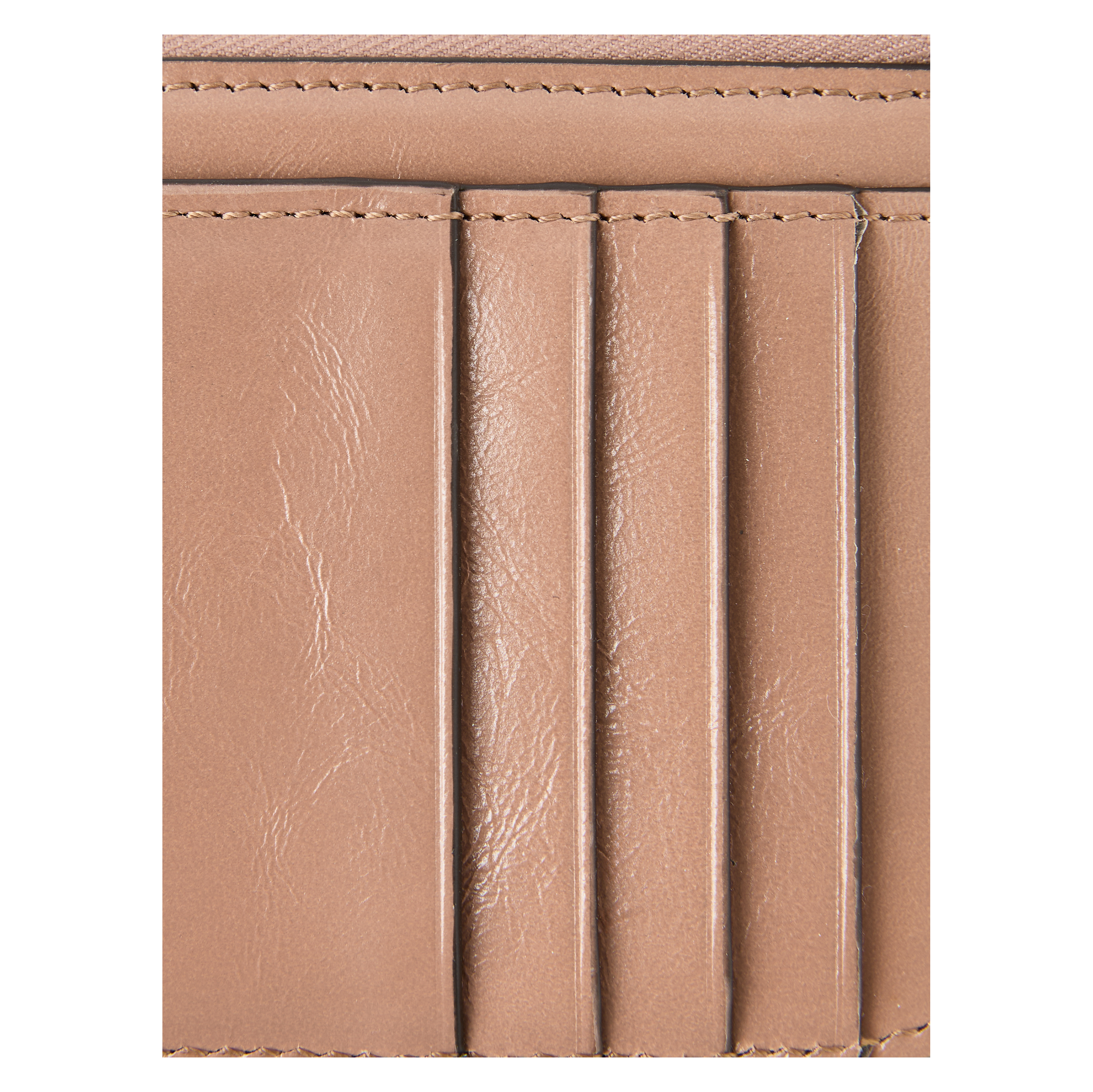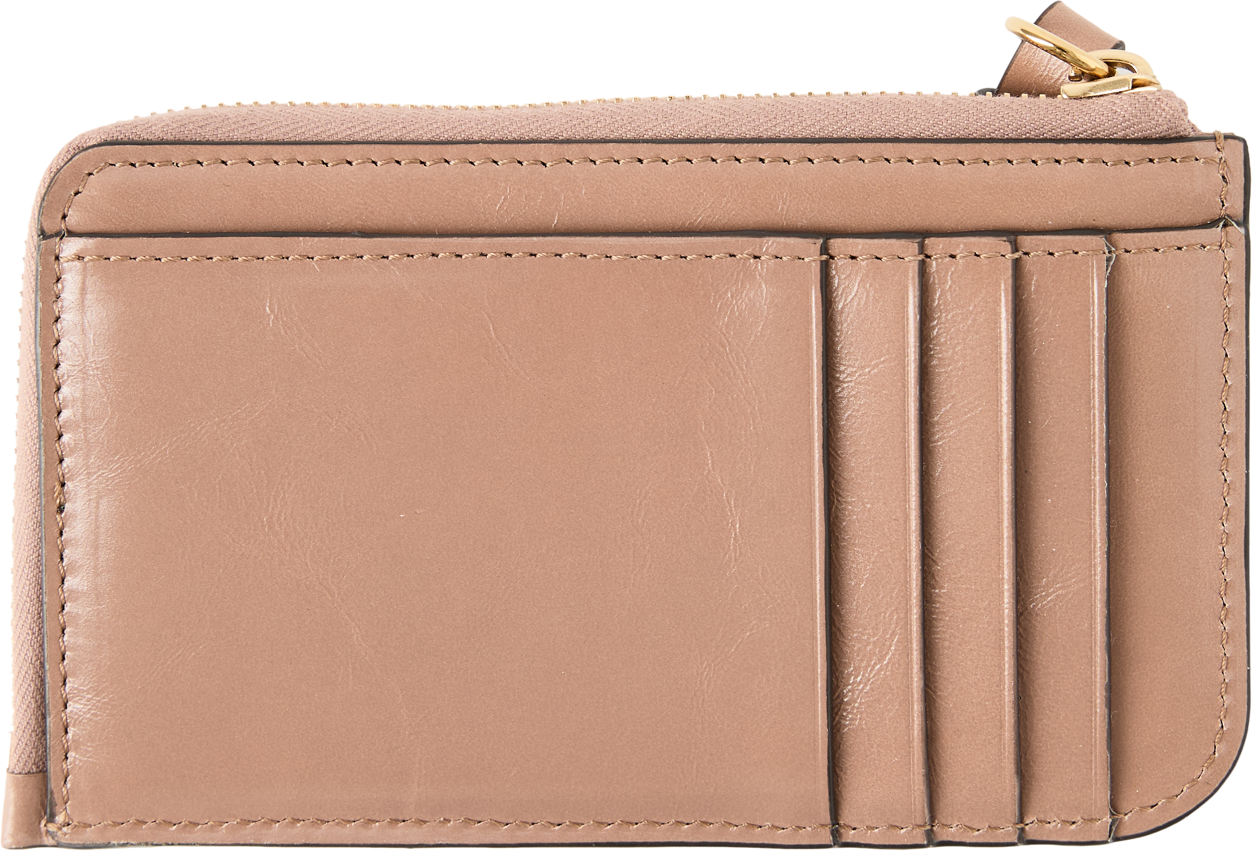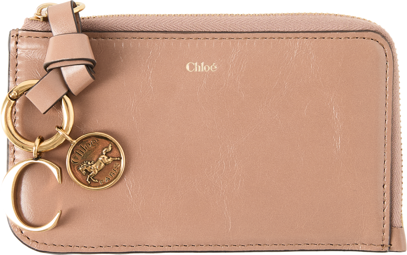 The 'Alphabet Small' wallet in Woodrose by Chloé is made from shiny calfskin and stands out with its slim silhouette. The model has a main compartment, four card slots and a flat slip pocket on the back. The gold-coloured zip combined with the discreetly embossed Chloé logo creates elegant accents. A knotted leather strap with a gold initial pendant and horse medallion stylishly rounds off the characteristic design.