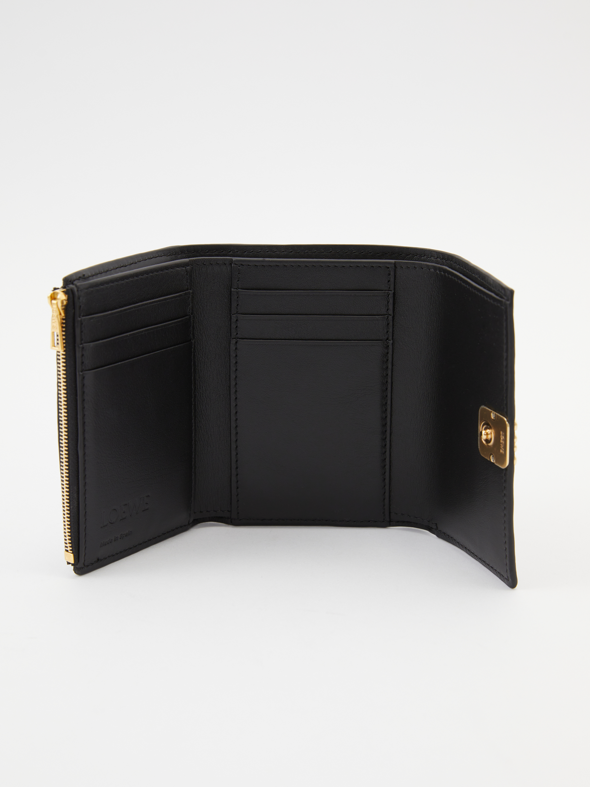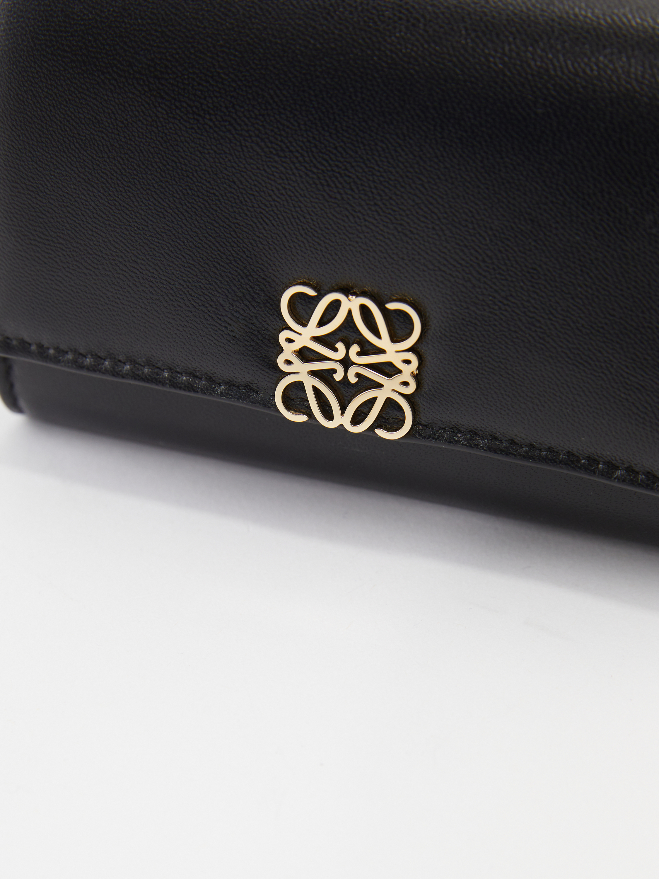 The 'Puffer Small Vertical' wallet in black from LOEWE is made from high-quality leather. The convenient size and compartments make this model the perfect companion. The classic design and gold-coloured hardware stylishly round off the design.