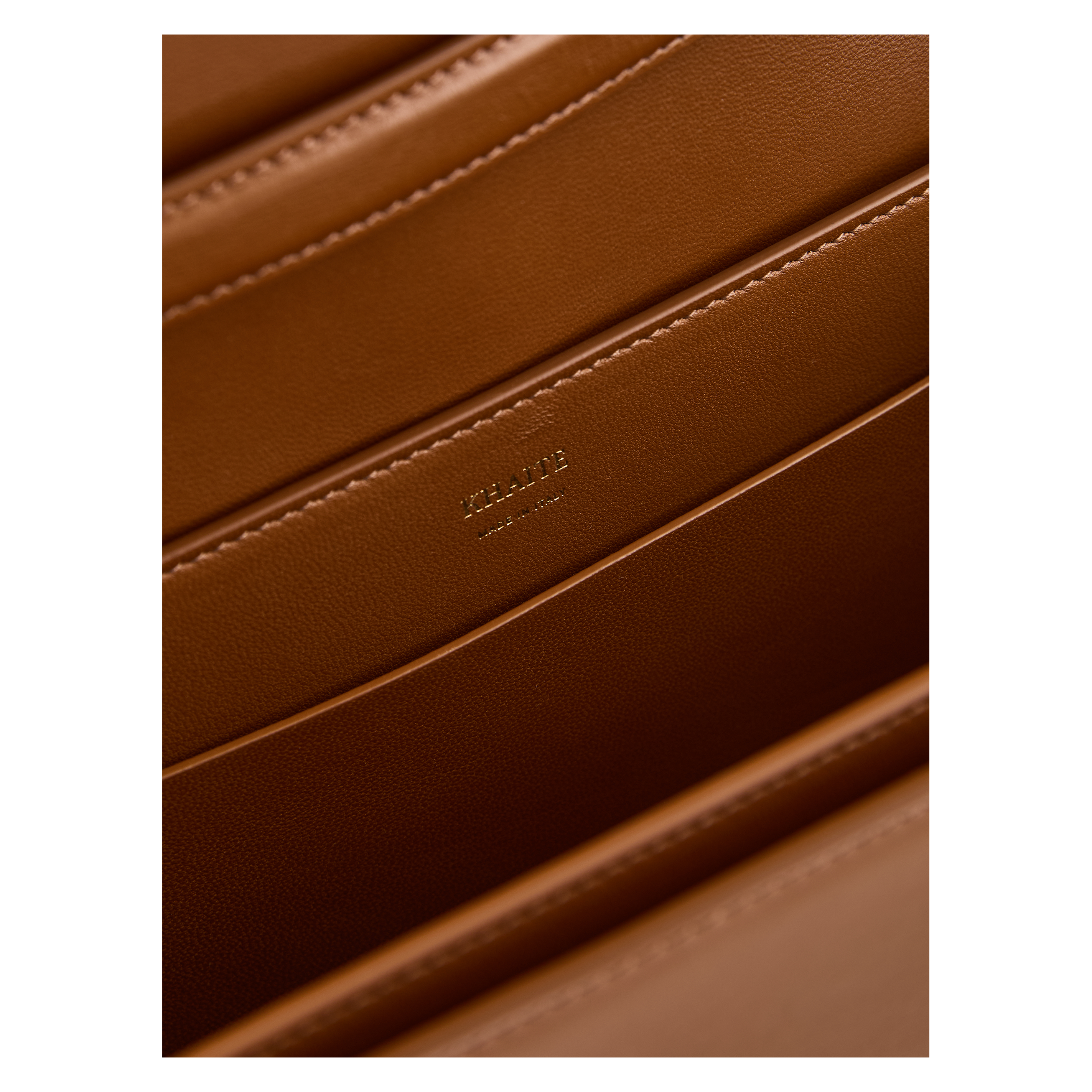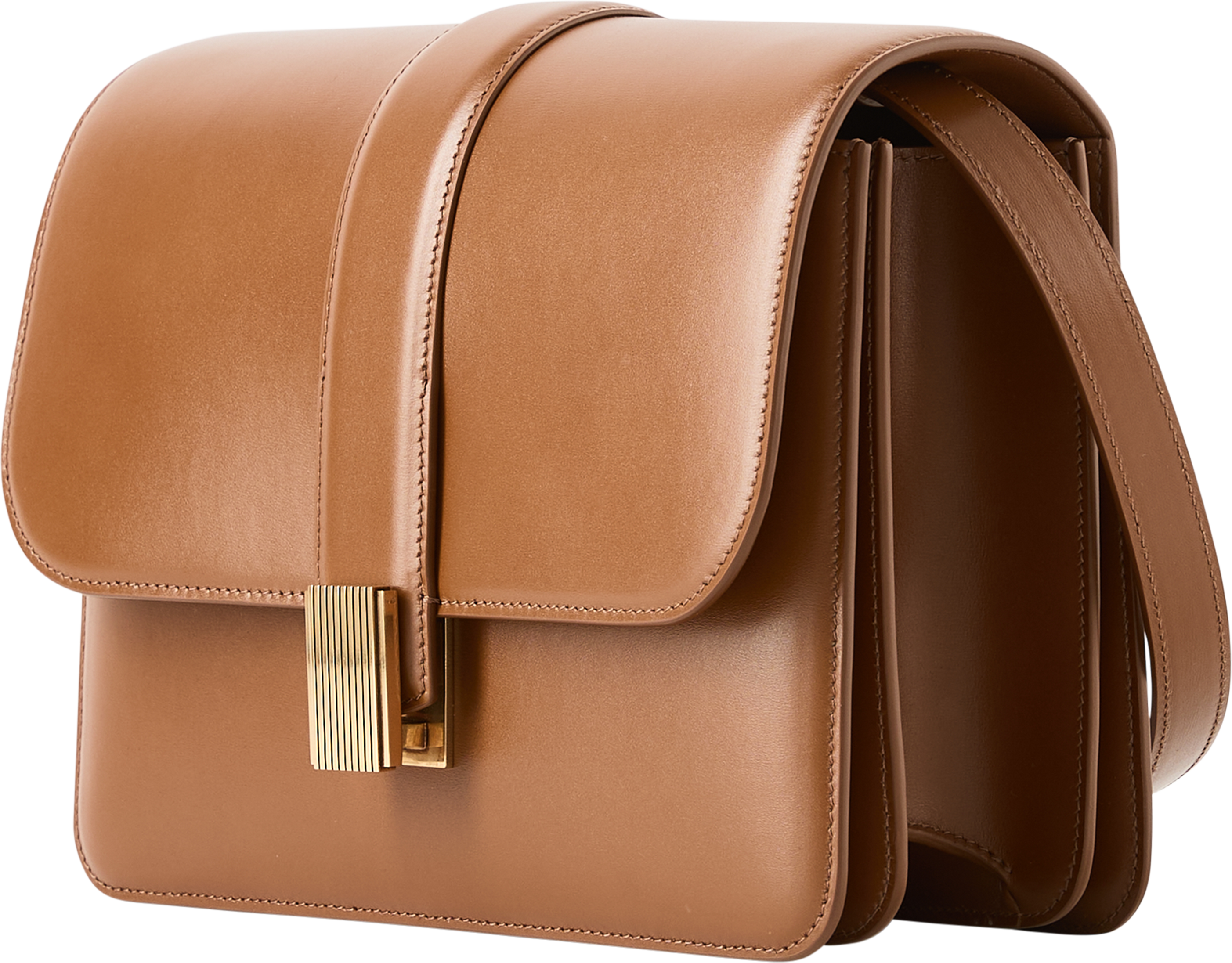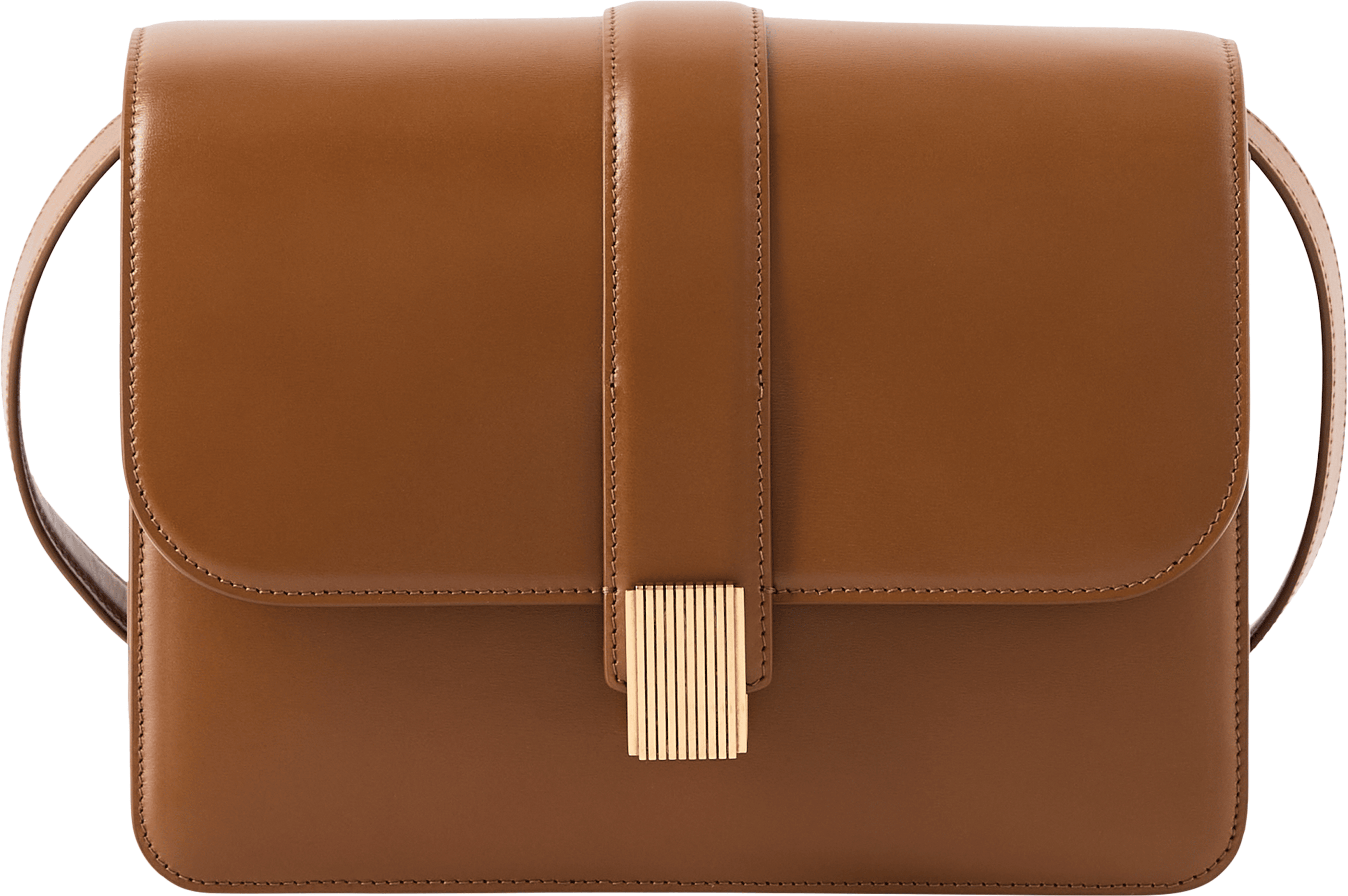 The 'Blake' shoulder bag in brown by Khaite is made from high-quality calfskin and has a captivating box shape. The flap with twist fastening, the three slip pockets and the adjustable and detachable shoulder strap for carrying over the shoulder or across the body round off the design.