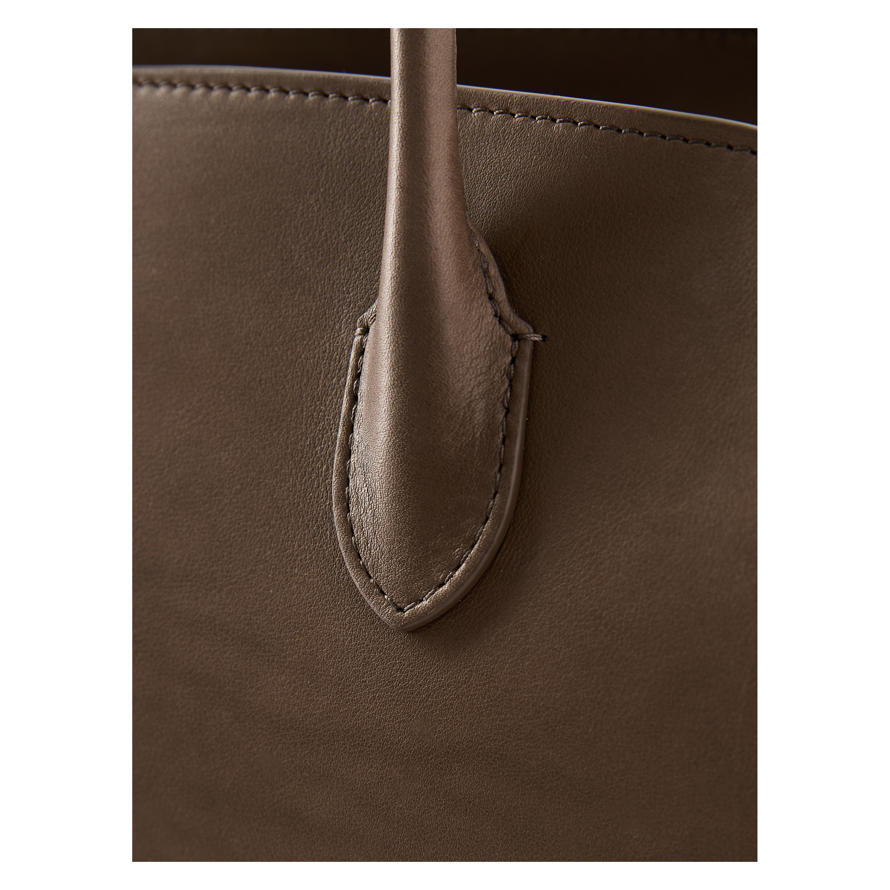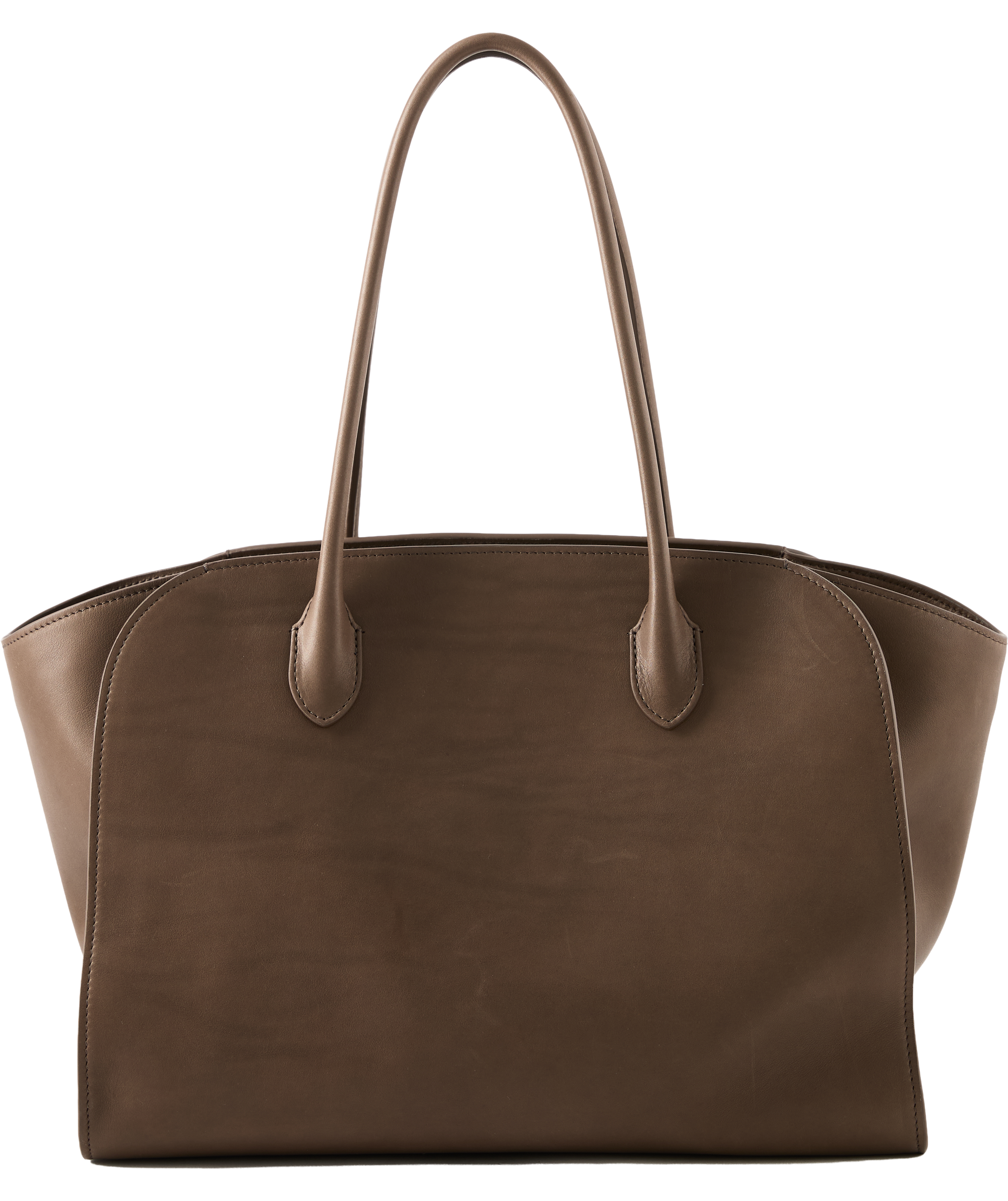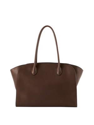 The 'Marlo 14' handbag in brown from The Row is made from polished saddle leather and impresses with its timeless design. The spacious main compartment can be closed with a zip and has an additional zip pocket and two additional slip pockets inside. Tonal topstitching, striking side pleats and a subtle silver-coloured embossed logo on the side stylishly round off the model.
