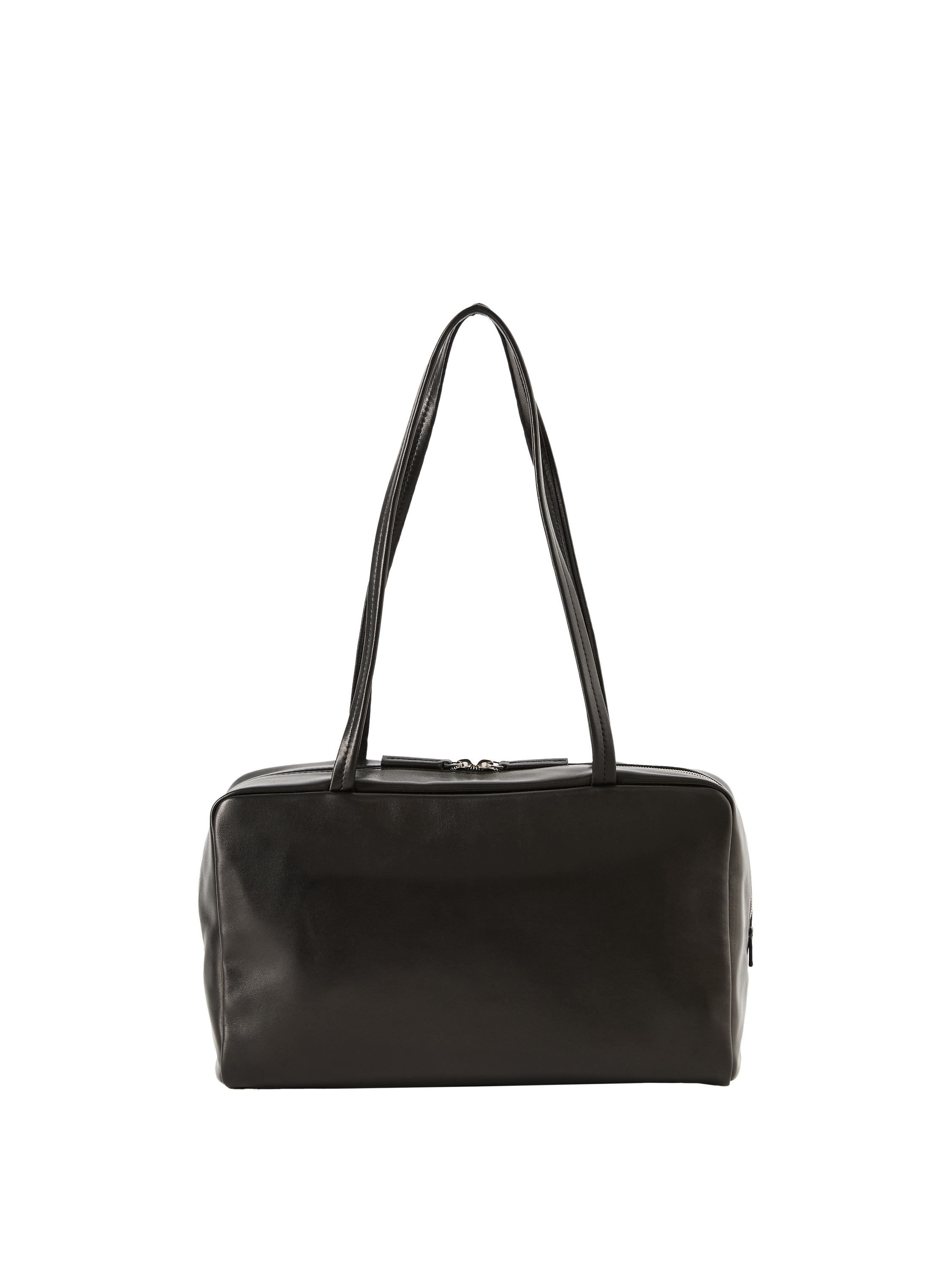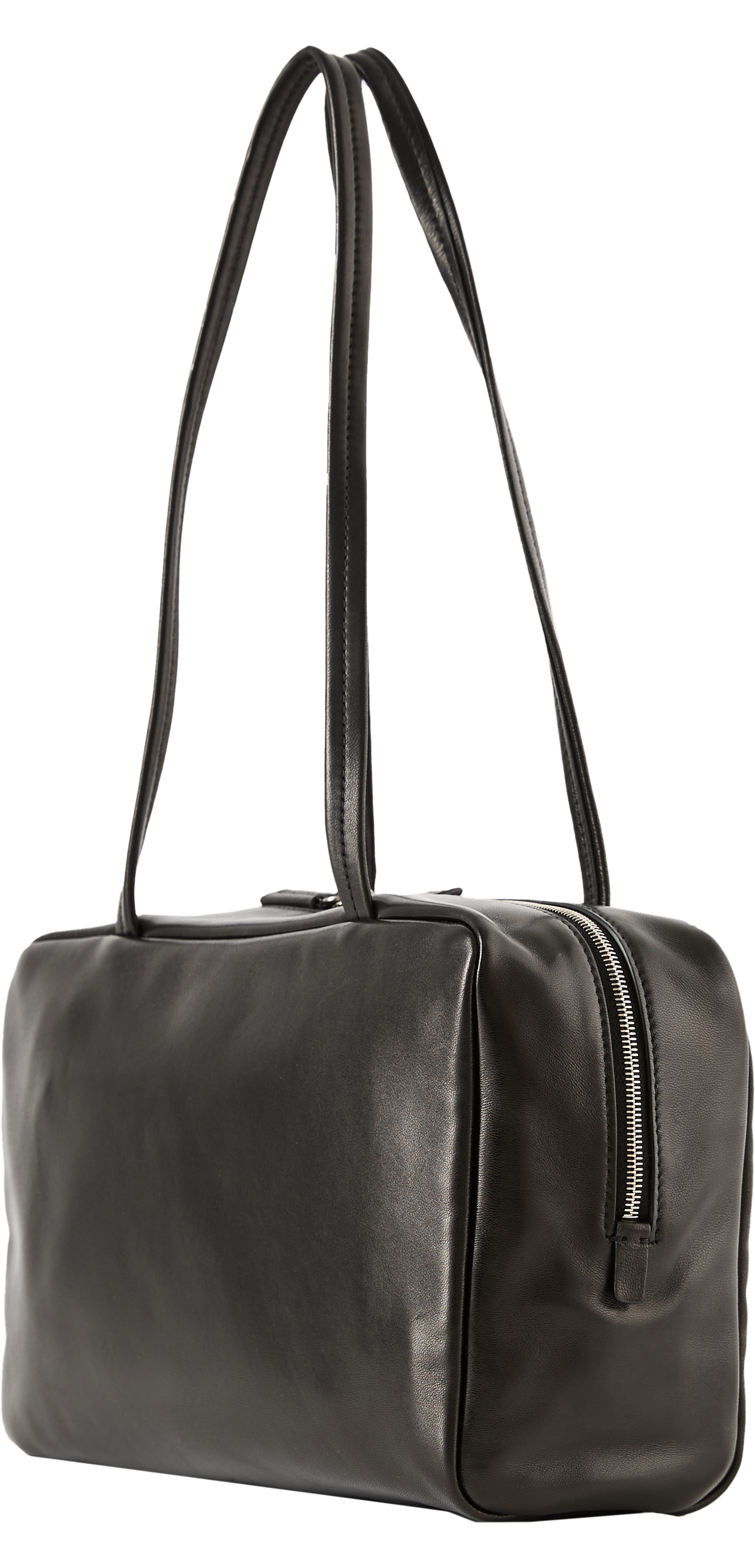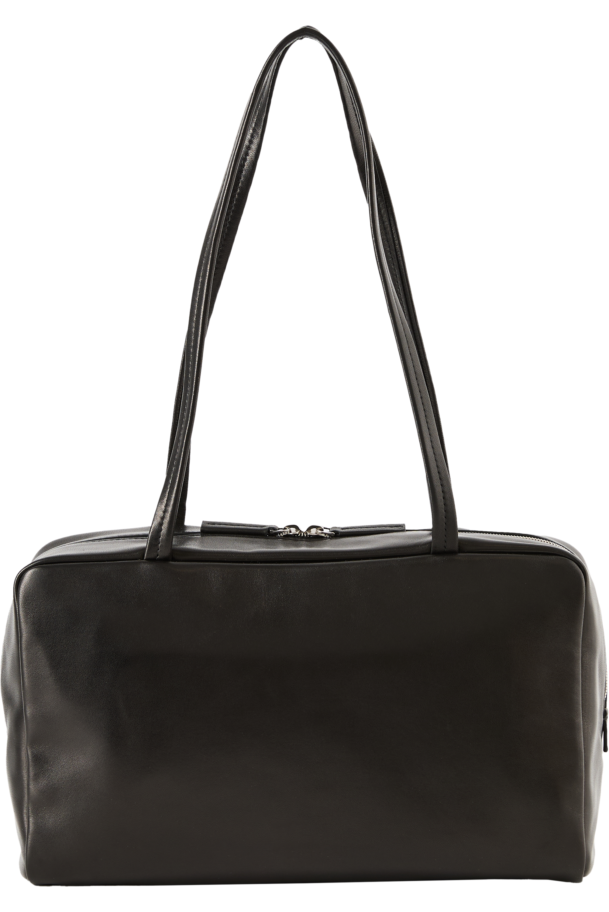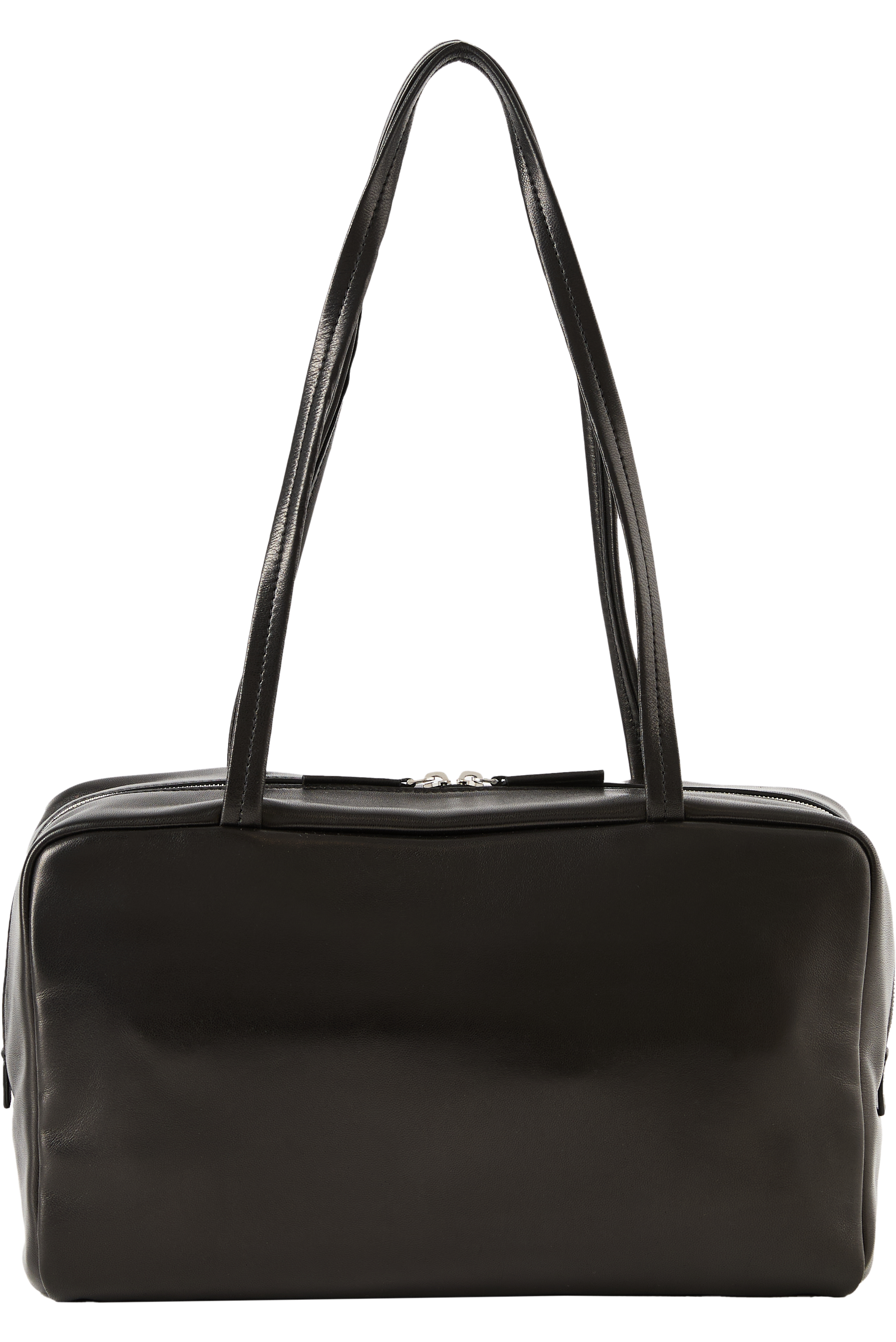 The 'Astra Bowling' handbag in black from The Row is made from soft, polished lambskin leather and is characterised by its minimalist design. The angular shape and slender handle characterise this high-quality model.
