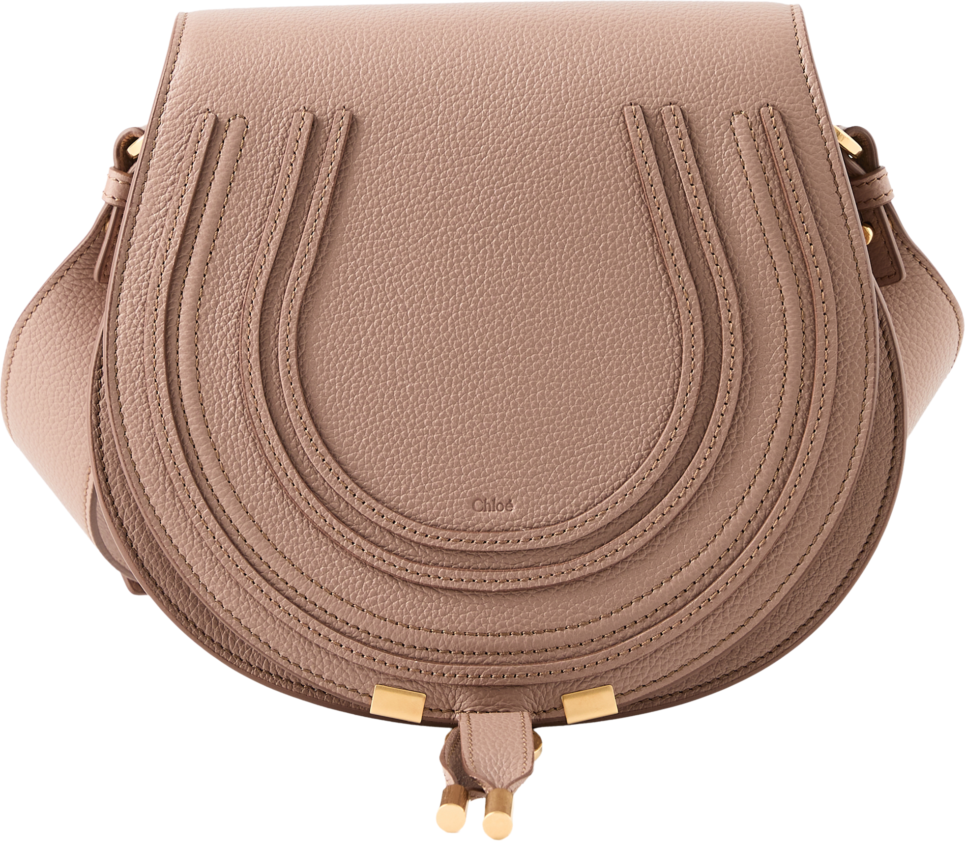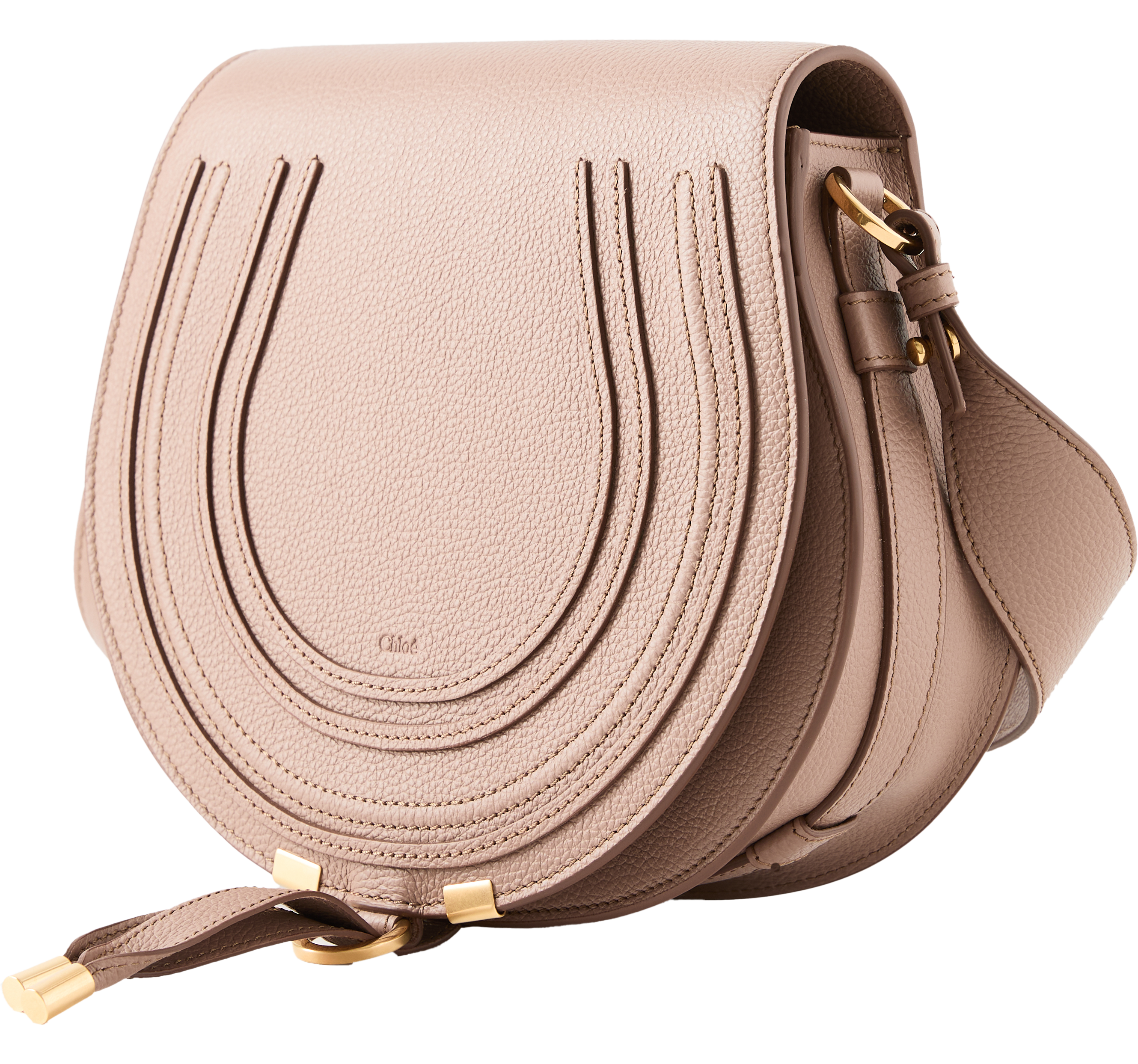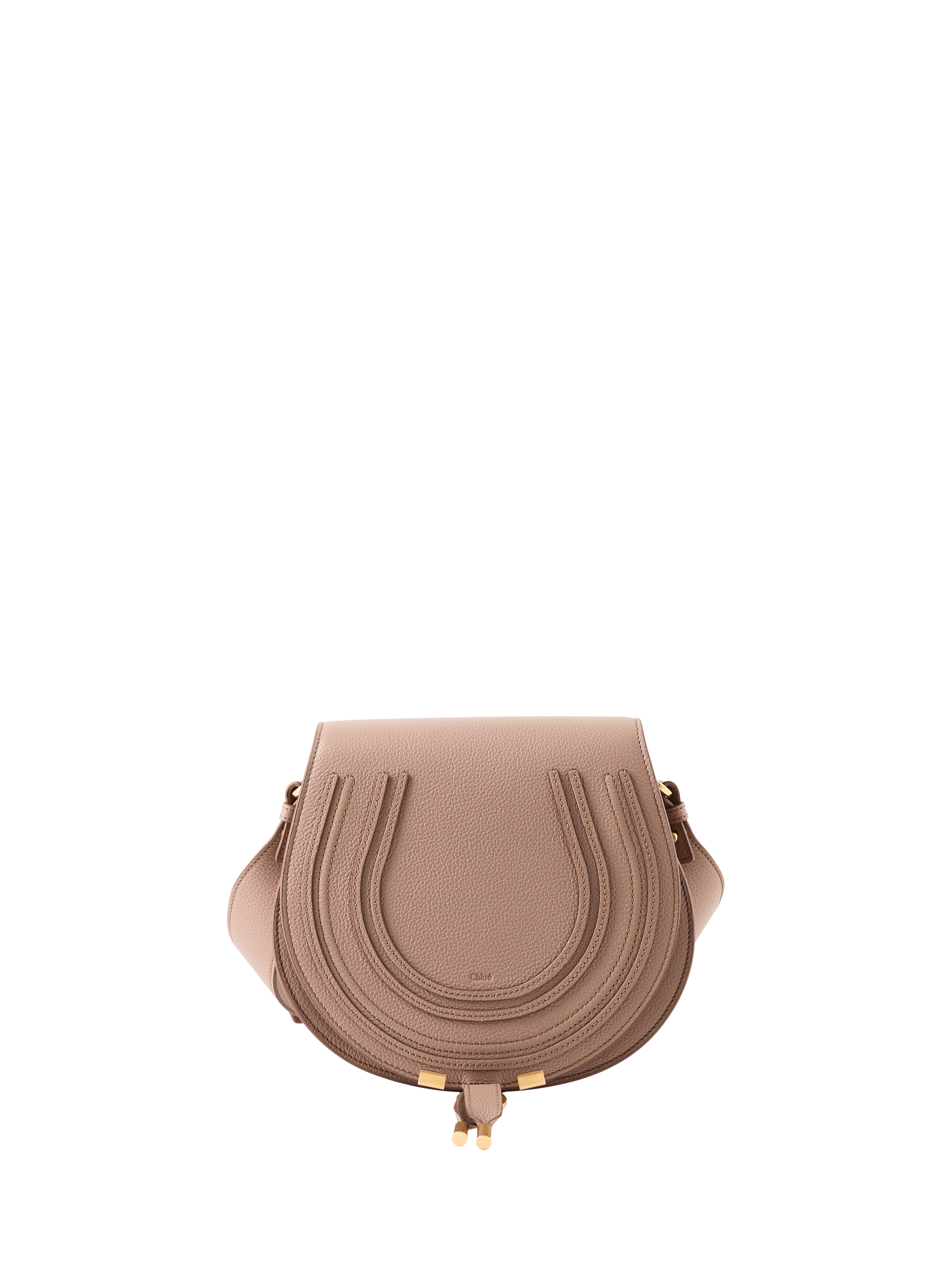 The 'Marcie Medium' saddle bag in Woodrose is made from grained calfskin and finished with gold-coloured hardware. The small version of Chloé's 'Marcie' bag impresses with its shape reminiscent of a saddle bag. Thanks to the adjustable shoulder strap, the leather bag can be worn comfortably crossbody.