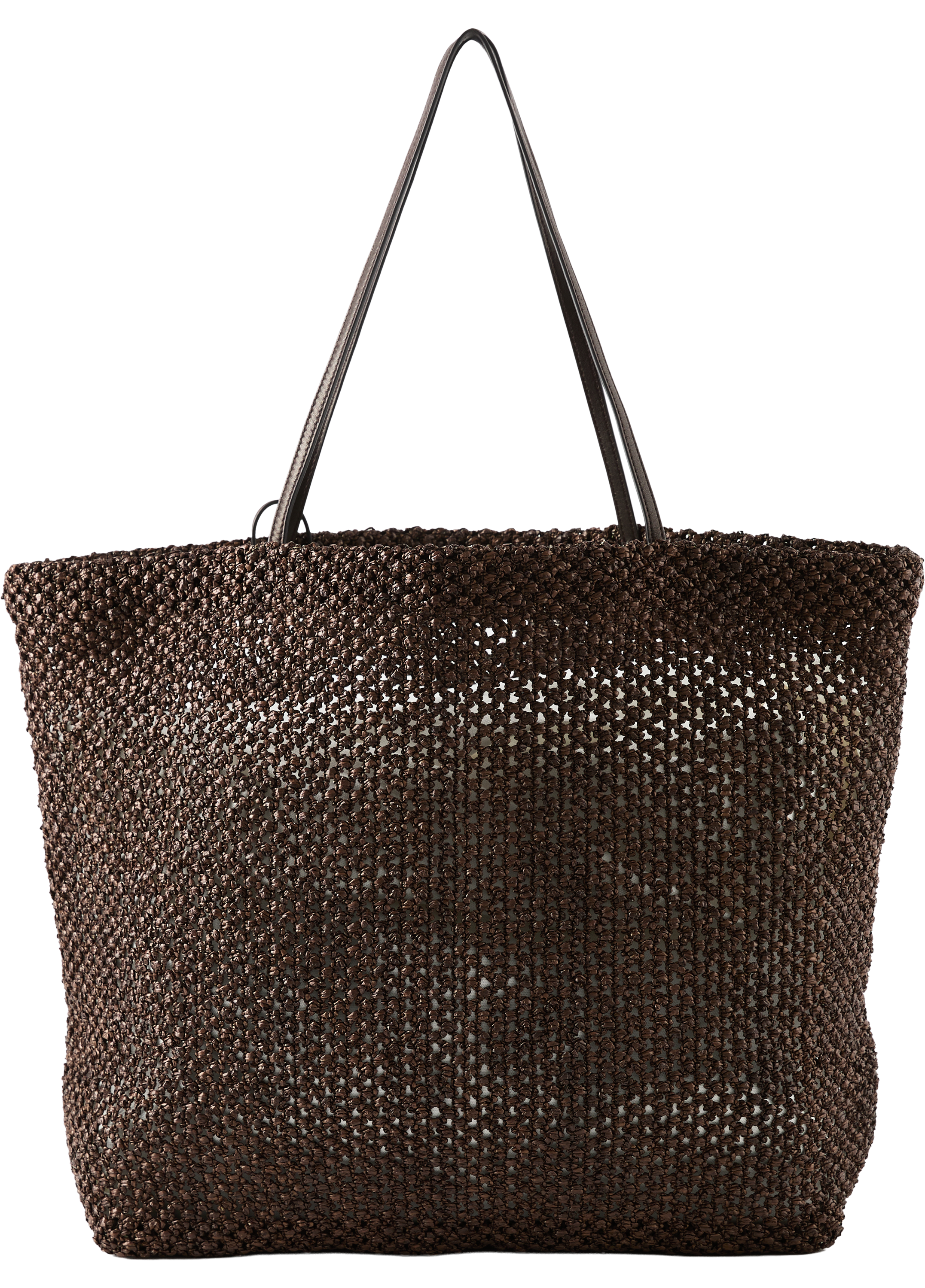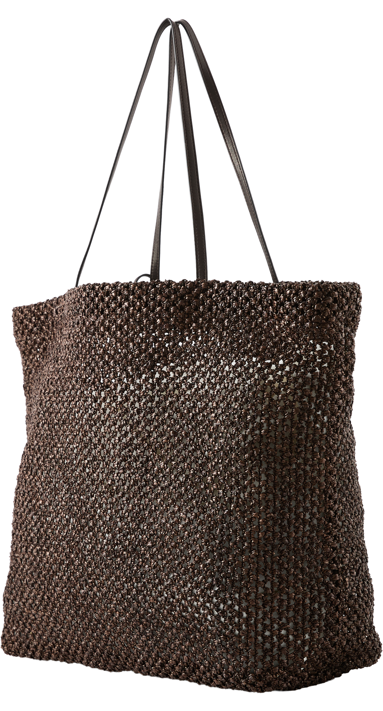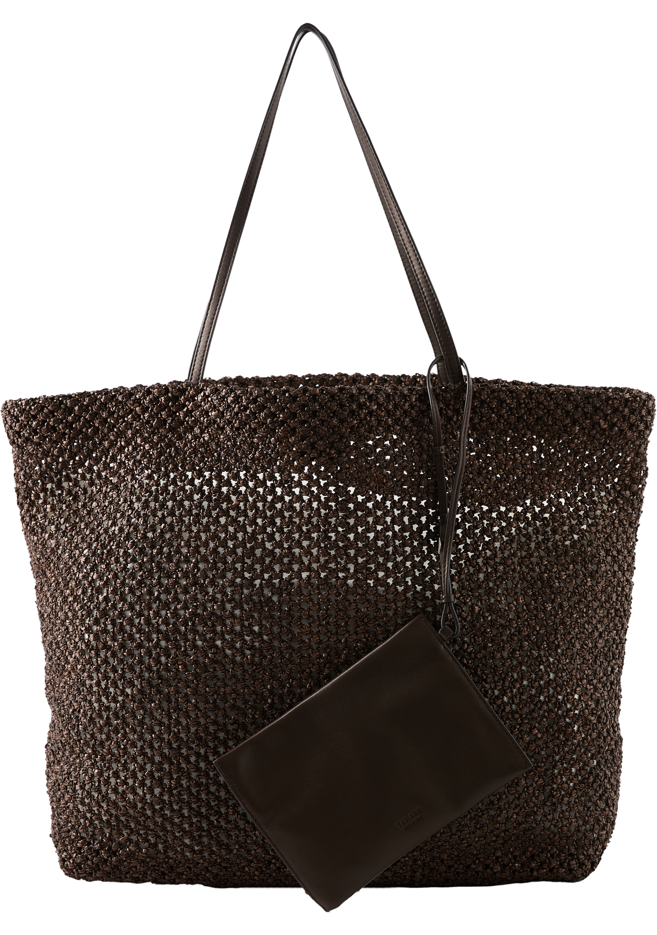 The 'Barn' shopper in dark brown from The Row is made from woven polyamide and impresses with its minimalist design. The spacious main compartment with an open top is complemented by an internal clutch bag. The minimalist silhouette is created using an open crochet technique, which lends the model a casual look and makes it robust and durable at the same time.
