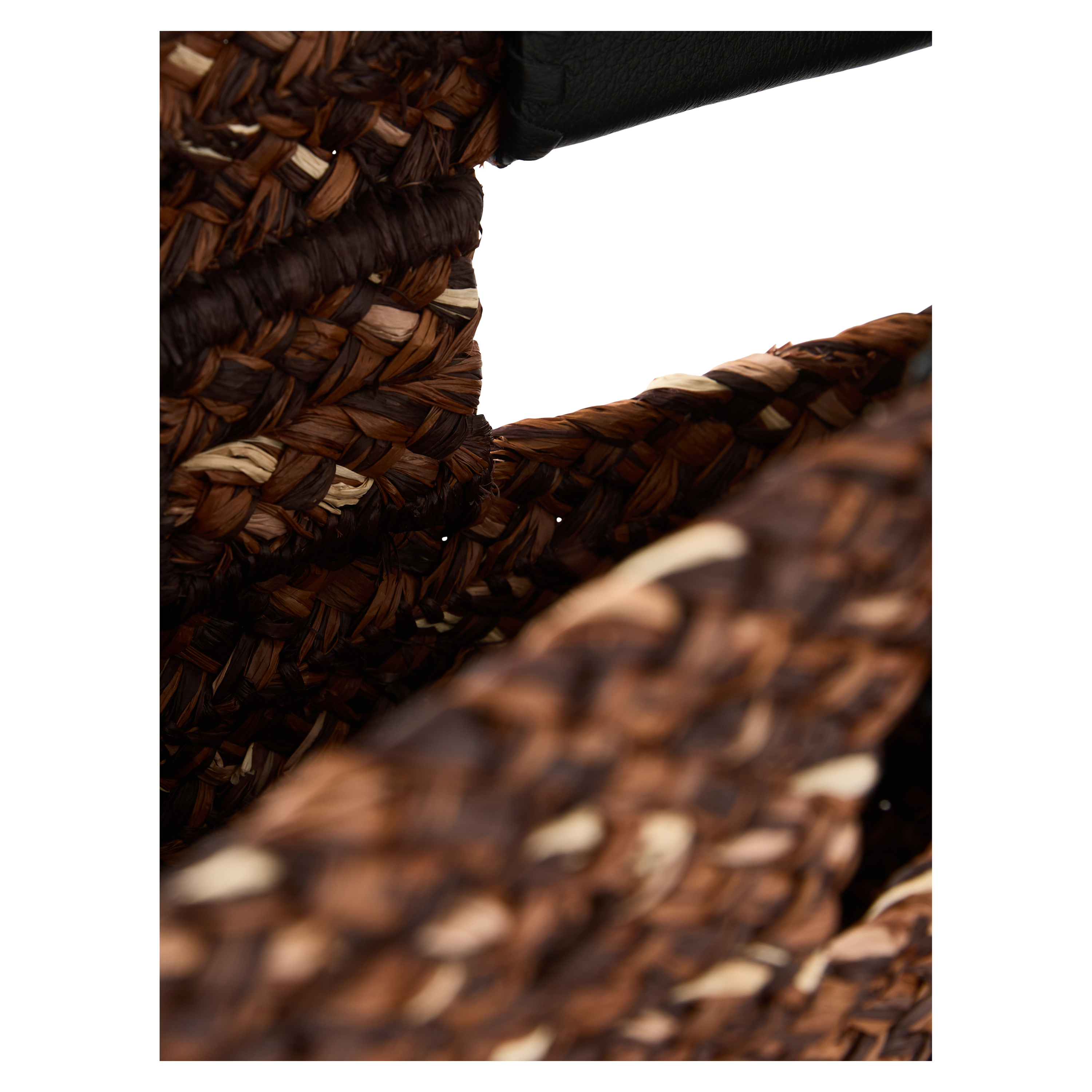 The 'Leonor' shopper in brown by HELEN KAMINSKI is crafted from wide raffia weave and stands out thanks to its unique weaving technique. The detachable handle, made from LWG-certified leather with decorative stitching and press studs, highlights the high-quality craftsmanship. The elongated shape, open top and gently rounded base define the stylish design.